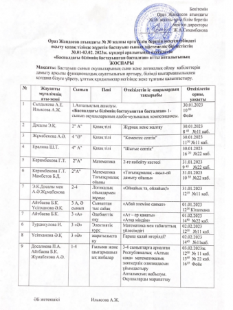 30.01.2023-03.02.2023 ж. аралығында бастауыш сынып әдістемелік апталығы өтті