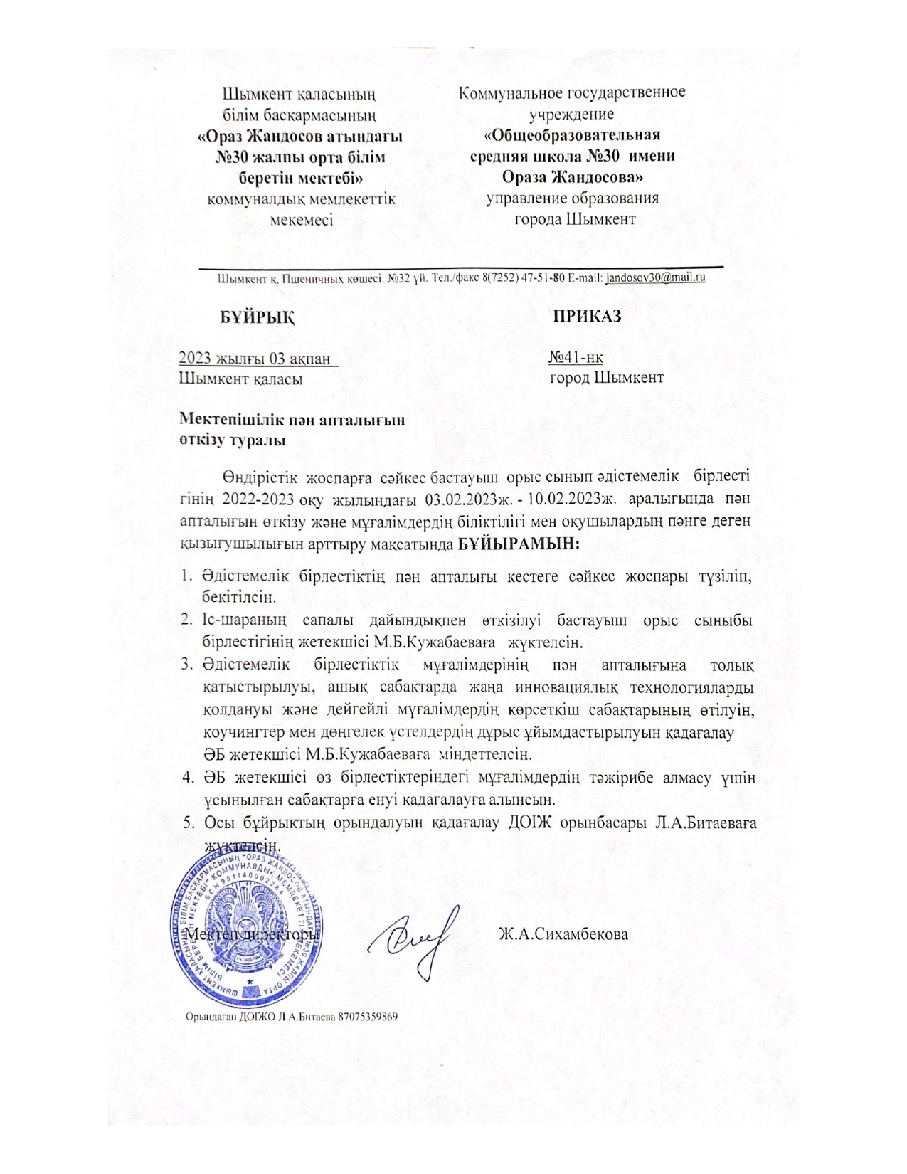 3 февраля в общеобразовательной средней школе # 30 имени Ораза Жандосова прошло открытие недели начальных классов. Открывали неделю самые маленькие ученики школы - первоклассники. Они показали свои таланты. Ученики 1 "Г" класса под руководством Прибытновой Ирины Петровны выступили со стихотворениями о школе на двух языках - казахском и русском. Учащиеся 1 "Д" класса Галич Ларисы Петровны показали весёлый танец "Малыши карандаши".