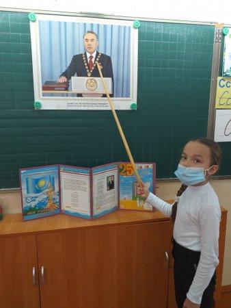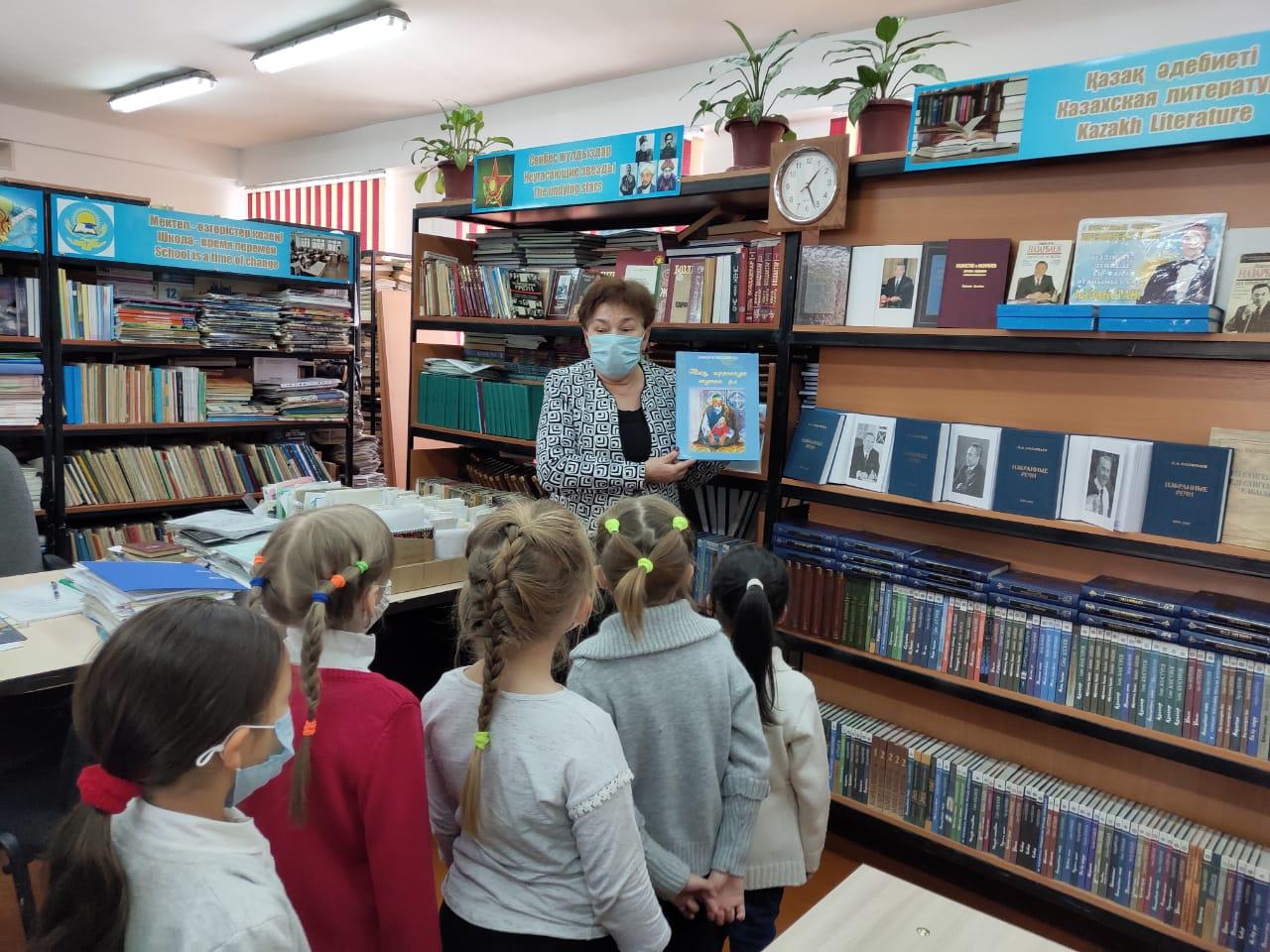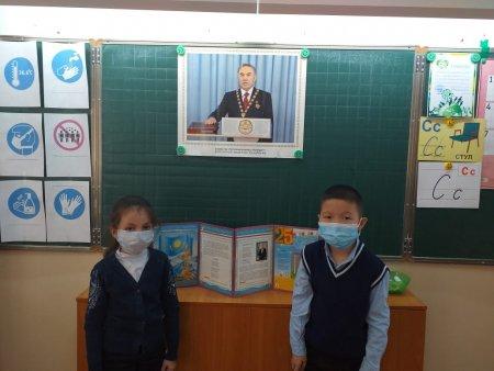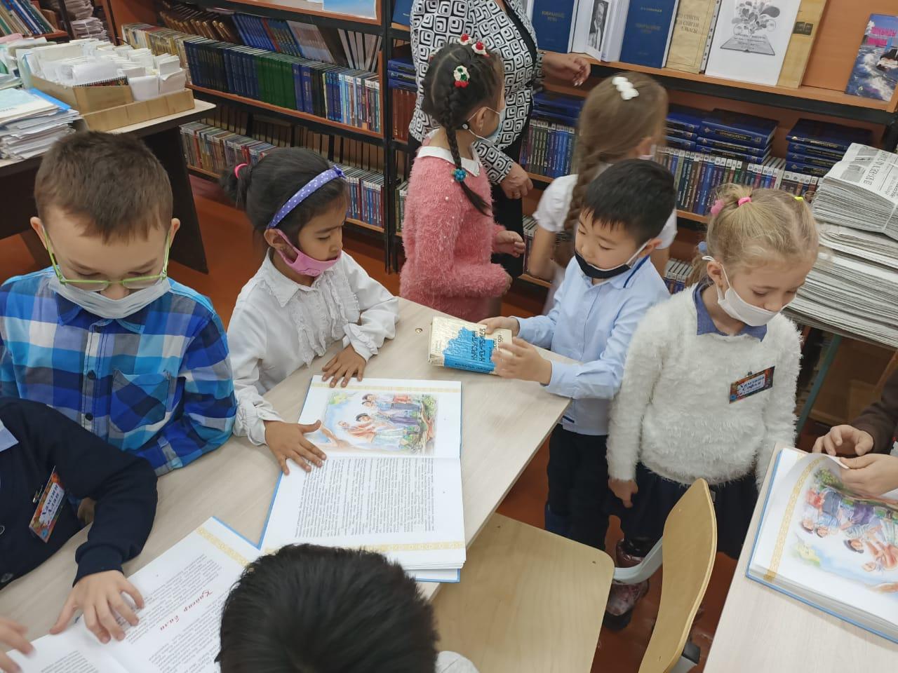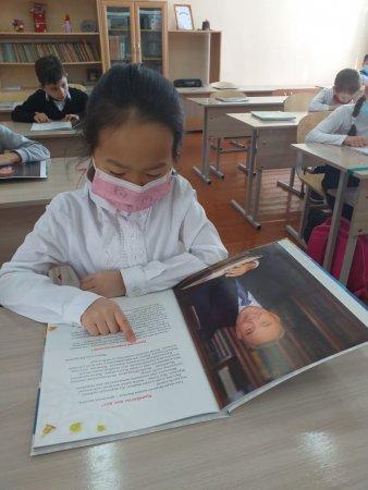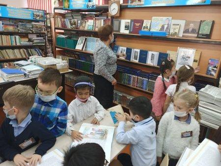№30 «Ораз Жандосов атындағы жалпы орта мектеп» КММ » Мектеп » Знакомство с личностью Лидера нации ученики 1б класса провели в школьной библиотеке.Ребята послушали лекцию ,прочитали отрывки из книг,рассмотрели фотографии Первого Президента.