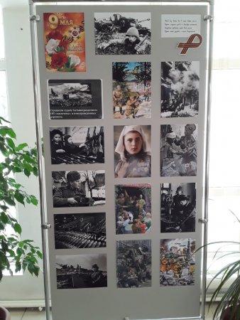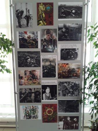 В вестибюле школы развёрнута выставка фотографий и рисунков о Великой Отечественной войне.