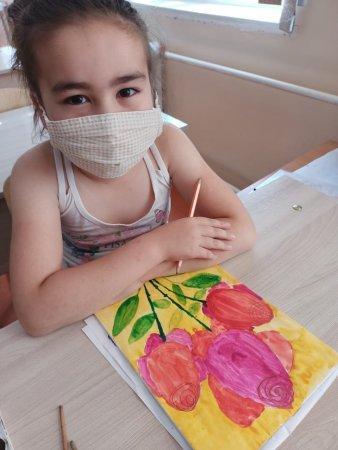 №30 «Ораз Жандосов атындағы жалпы орта мектеп» КММ » Мектеп » Очередное занятие кружка "Акварелька" было посвящено цветочной теме.Ребята с удовольствием знакомились с элементами флористики в живописи. И вот что у них получилось...