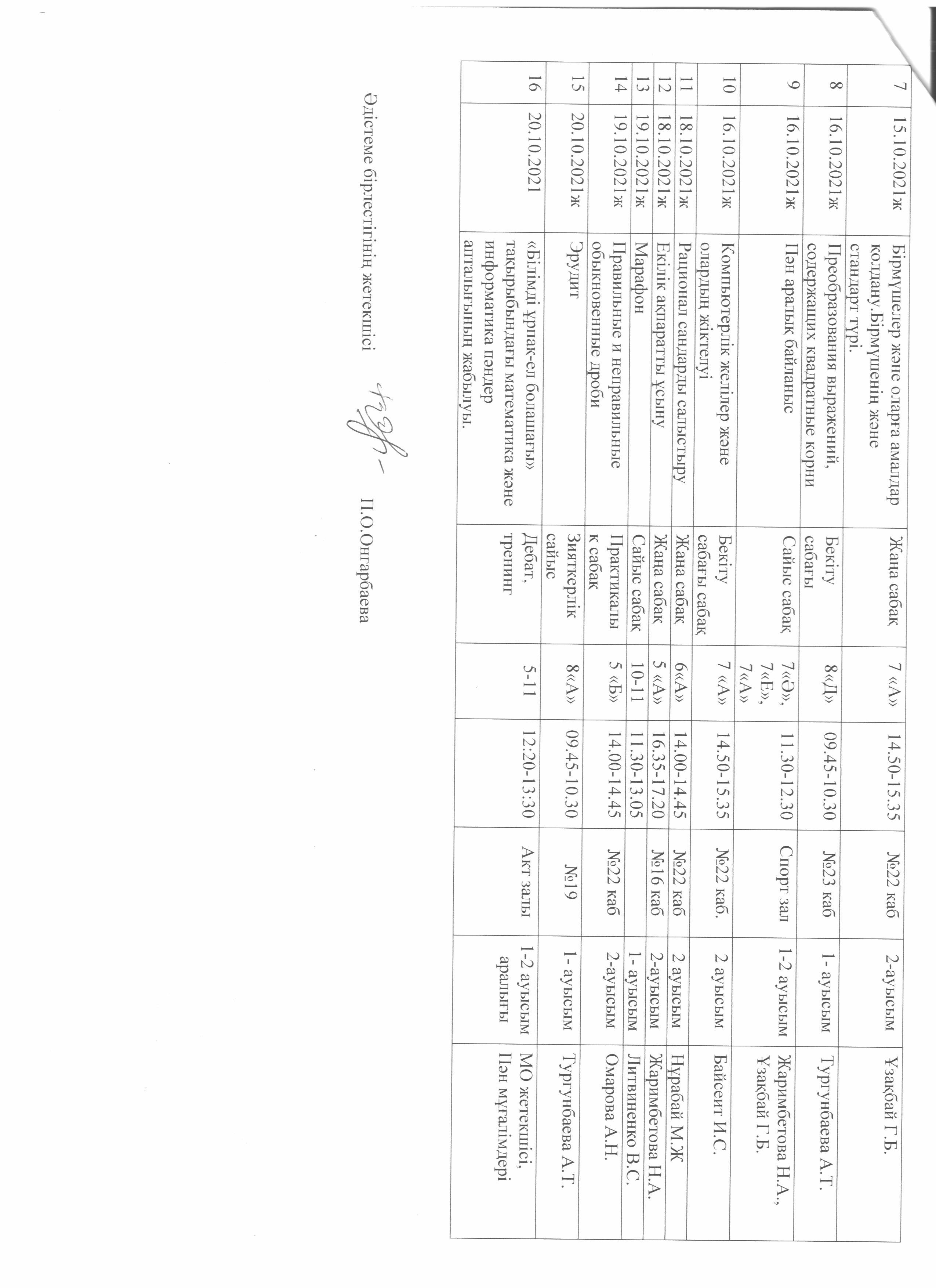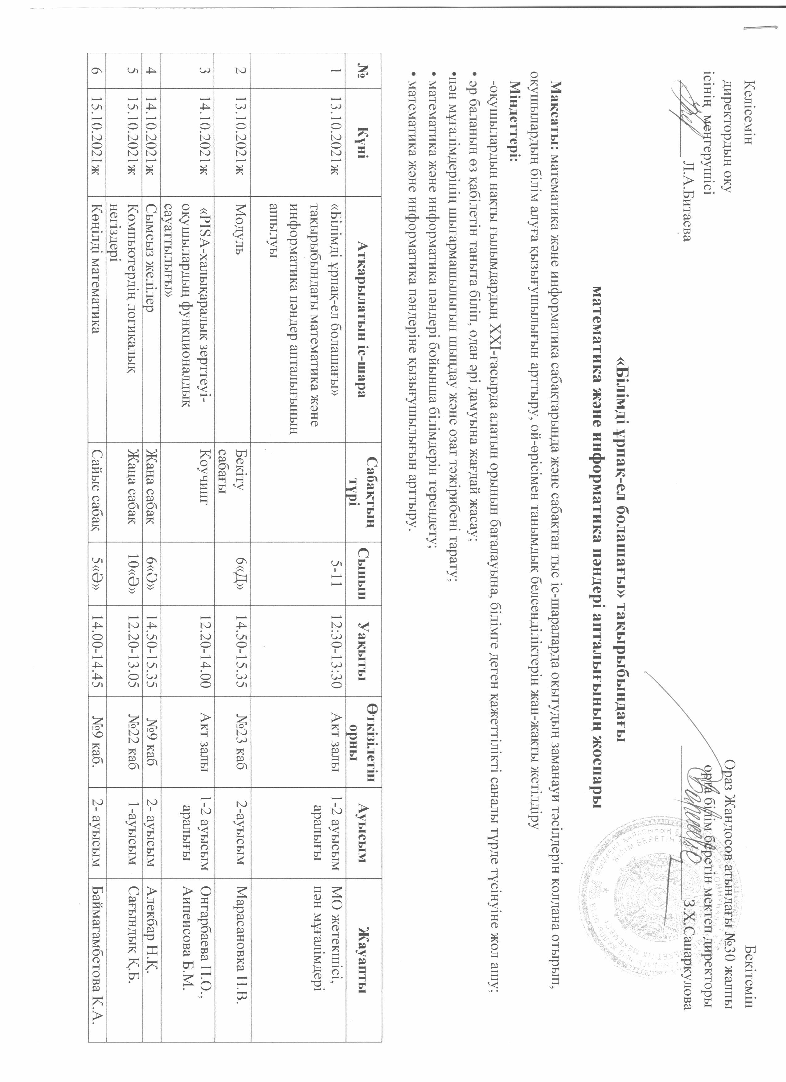 13 октябрь 2021 0 1 2 3 4 5 "Білімді ұрпақ-ел болашағы" тақырыбындағы математика және информатика пәндері апталығының жоспары