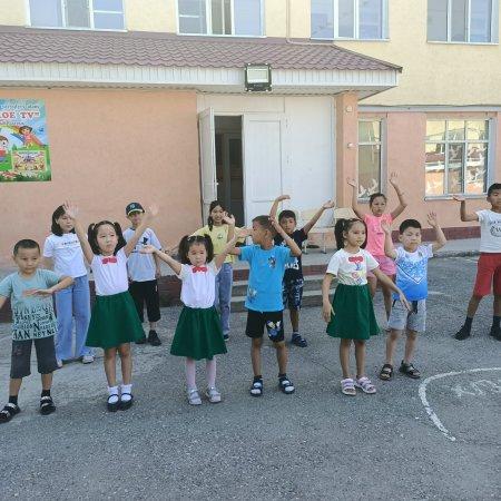 Очередной день работы пришкольного летнего лагеря "Детское ТВ" ребята отметили праздничным концертом на открытой площадке, посвященным Году детей в Казахстане.
