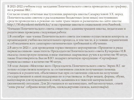 10 июнь 2022 0 1 2 3 4 5 ОТЧЕТ О ДЕЯТЕЛЬНОСТИ ПОПЕЧИТЕЛЬСКОГО СОВЕТА ОБЩЕОБРАЗОВАТЕЛЬНОЙ СРЕДНЕЙ ШКОЛЫ № 30 ИМЕНИ ОРАЗА ЖАНДОСОВА ЗА 2021-2022 УЧЕБНЫЙ ГОД