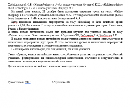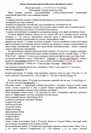 17.10.2022 ж.-21.10.2022 ж. аралығында Ағылшын тілі апталығы өтті