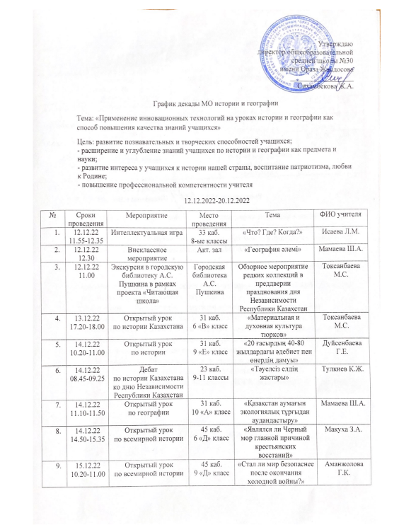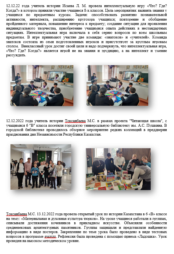 12.12.2022 ж.-20.12.2022 ж. аралығында тарих және география тілі апталығы өтті