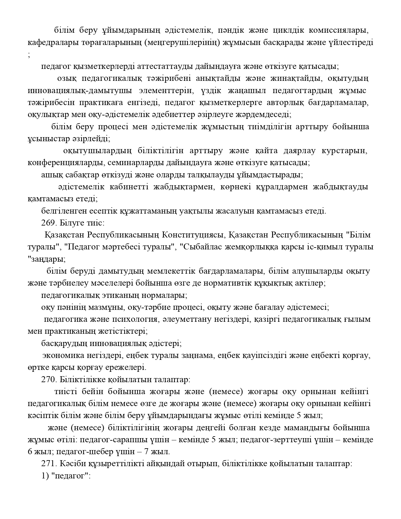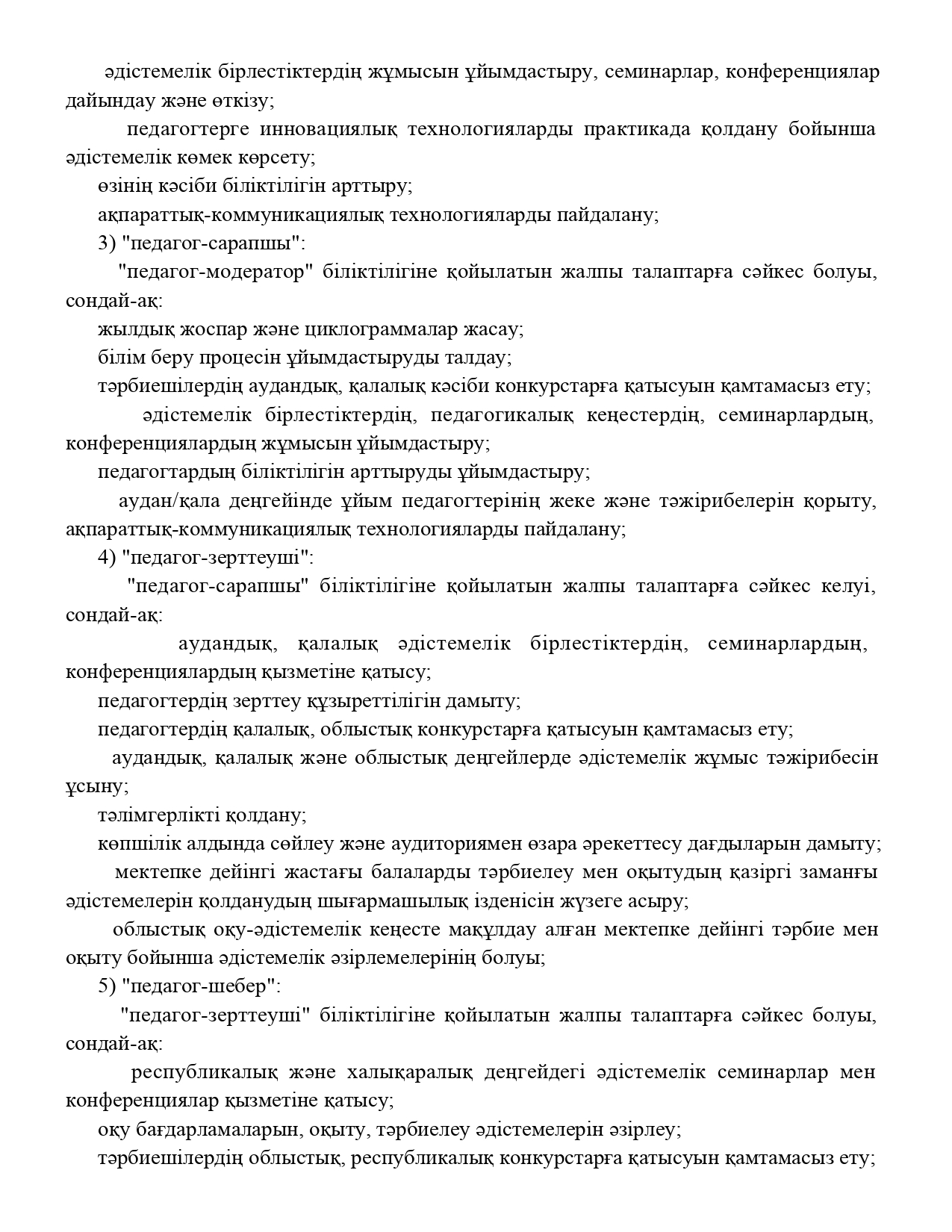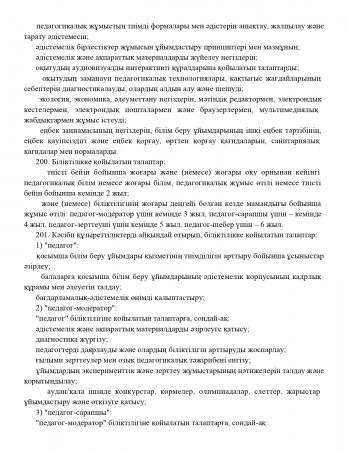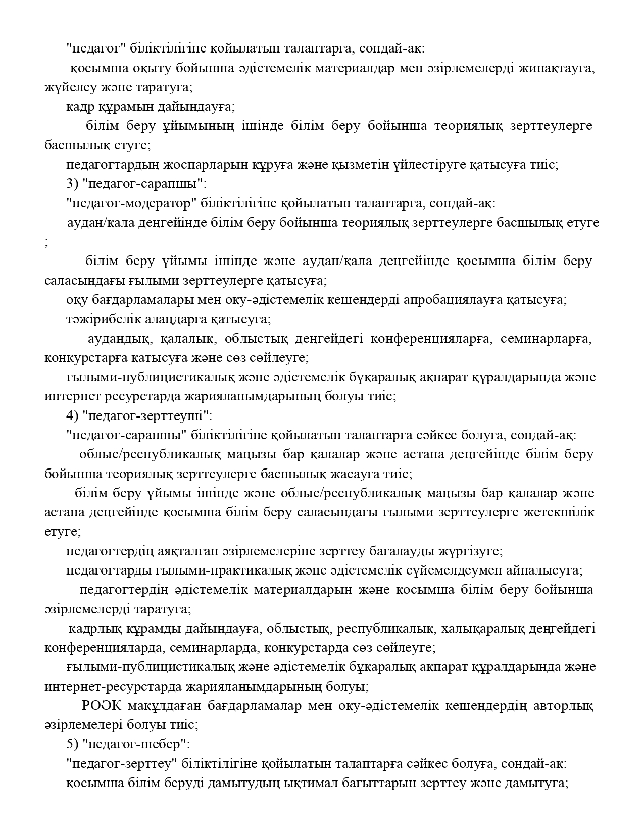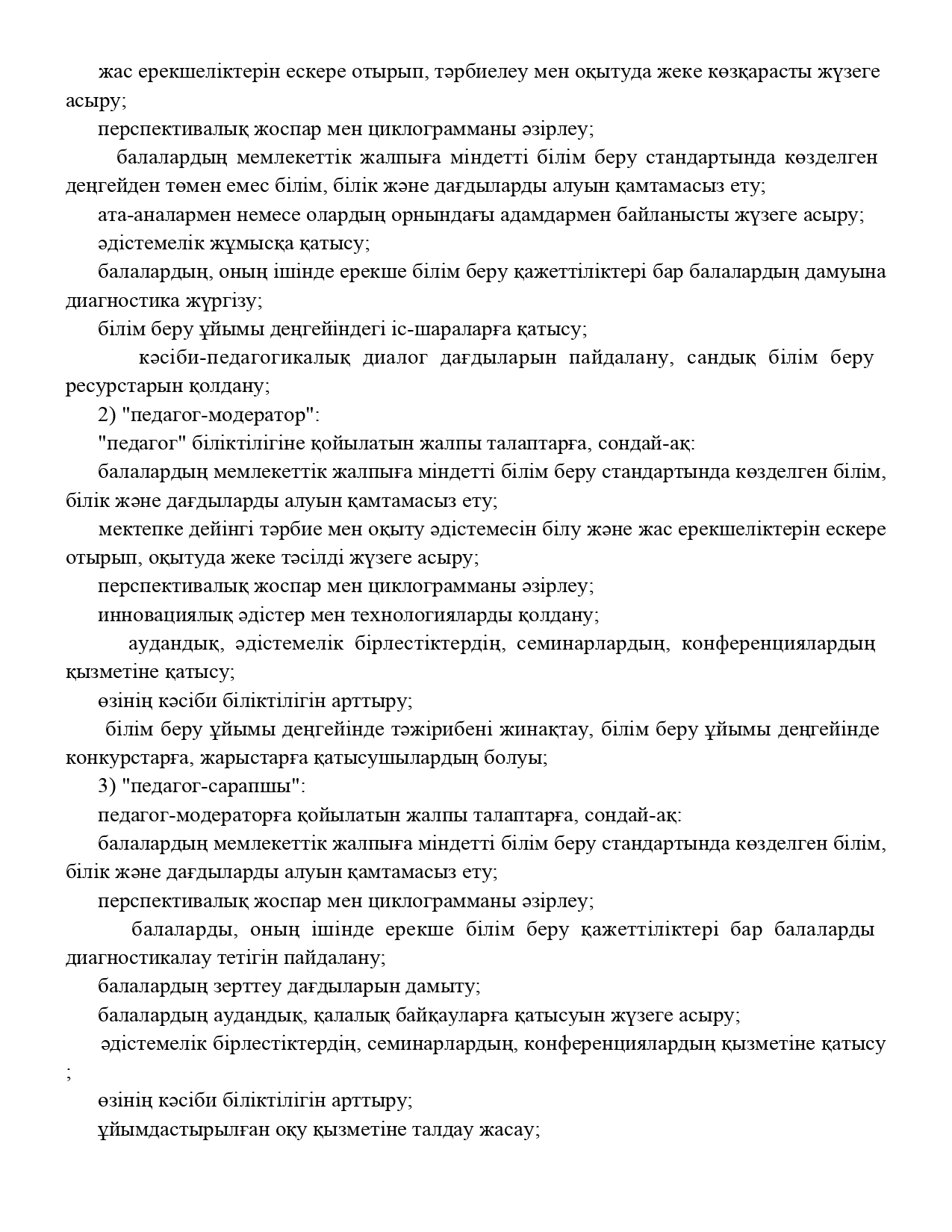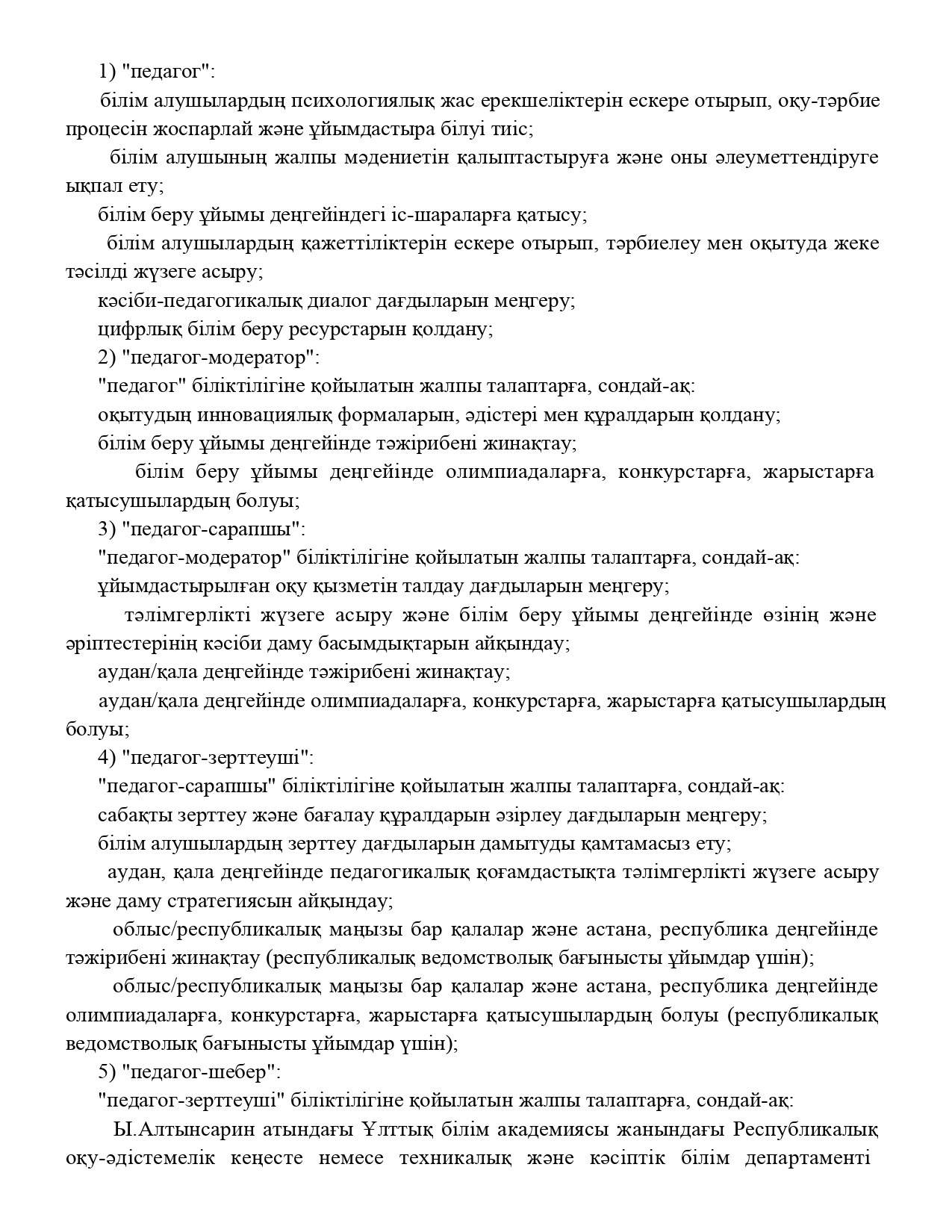 » Педагог лауазымдарының үлгілік біліктілік сипаттамаларын бекіту туралы
