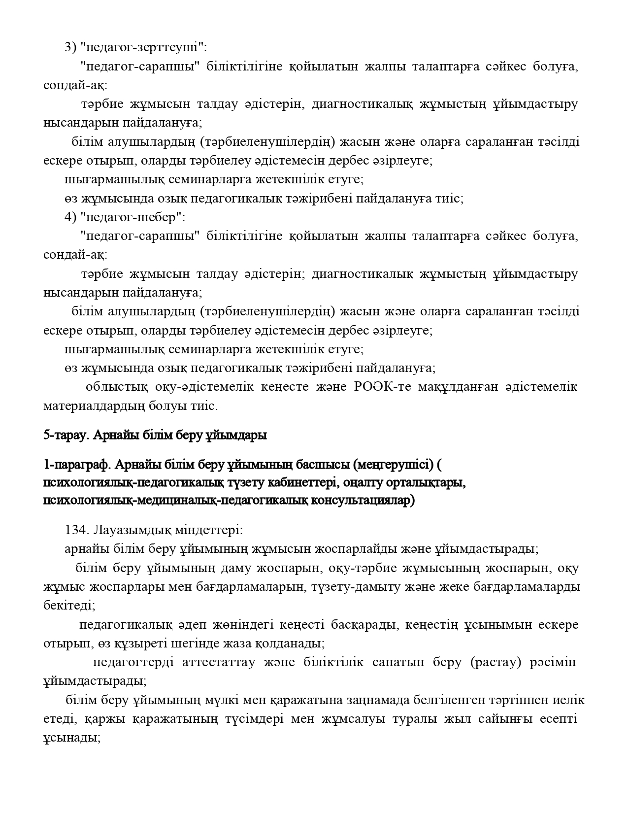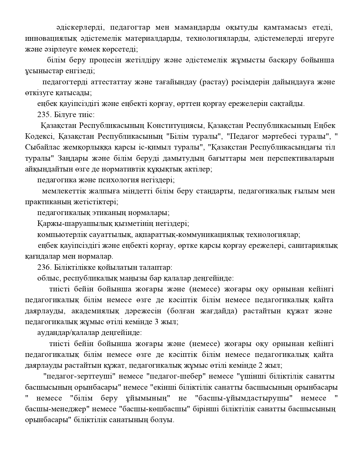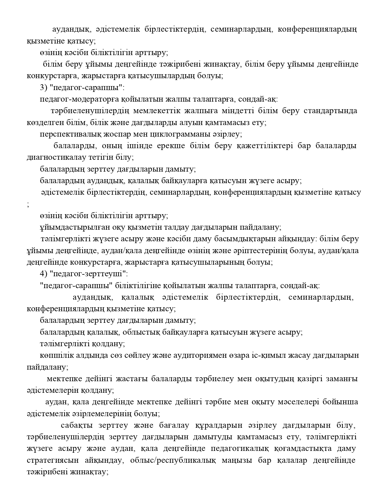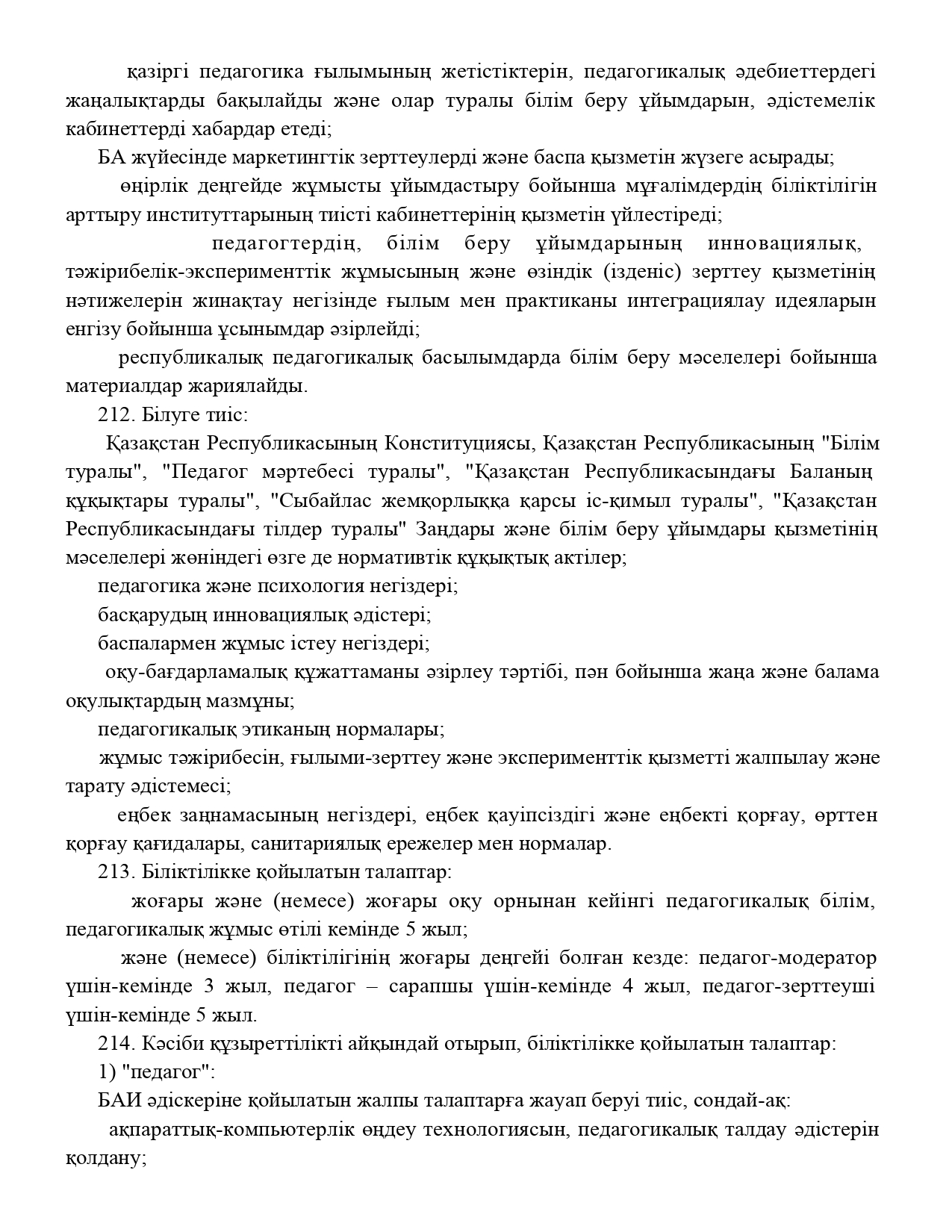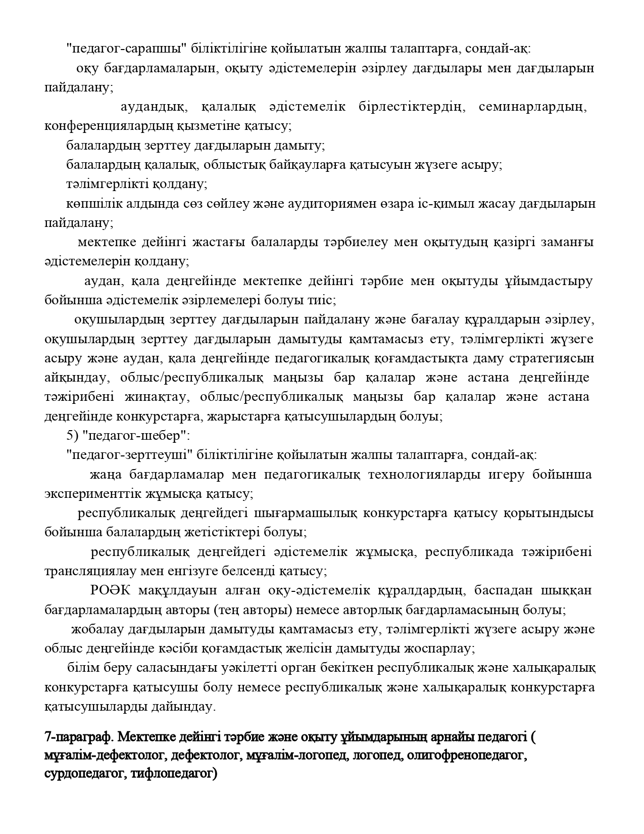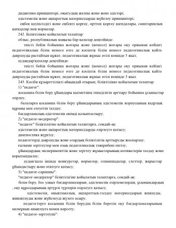 » Педагог лауазымдарының үлгілік біліктілік сипаттамаларын бекіту туралы