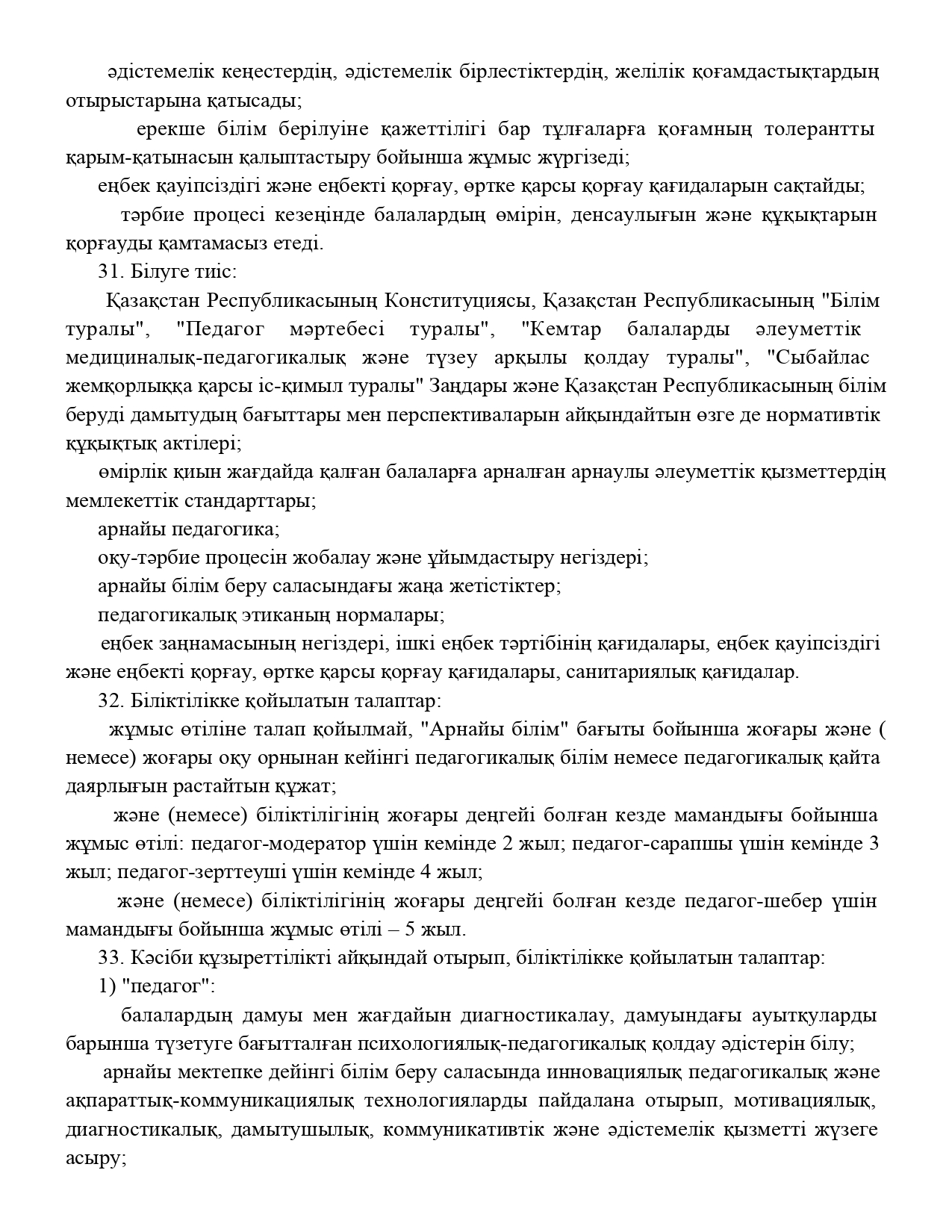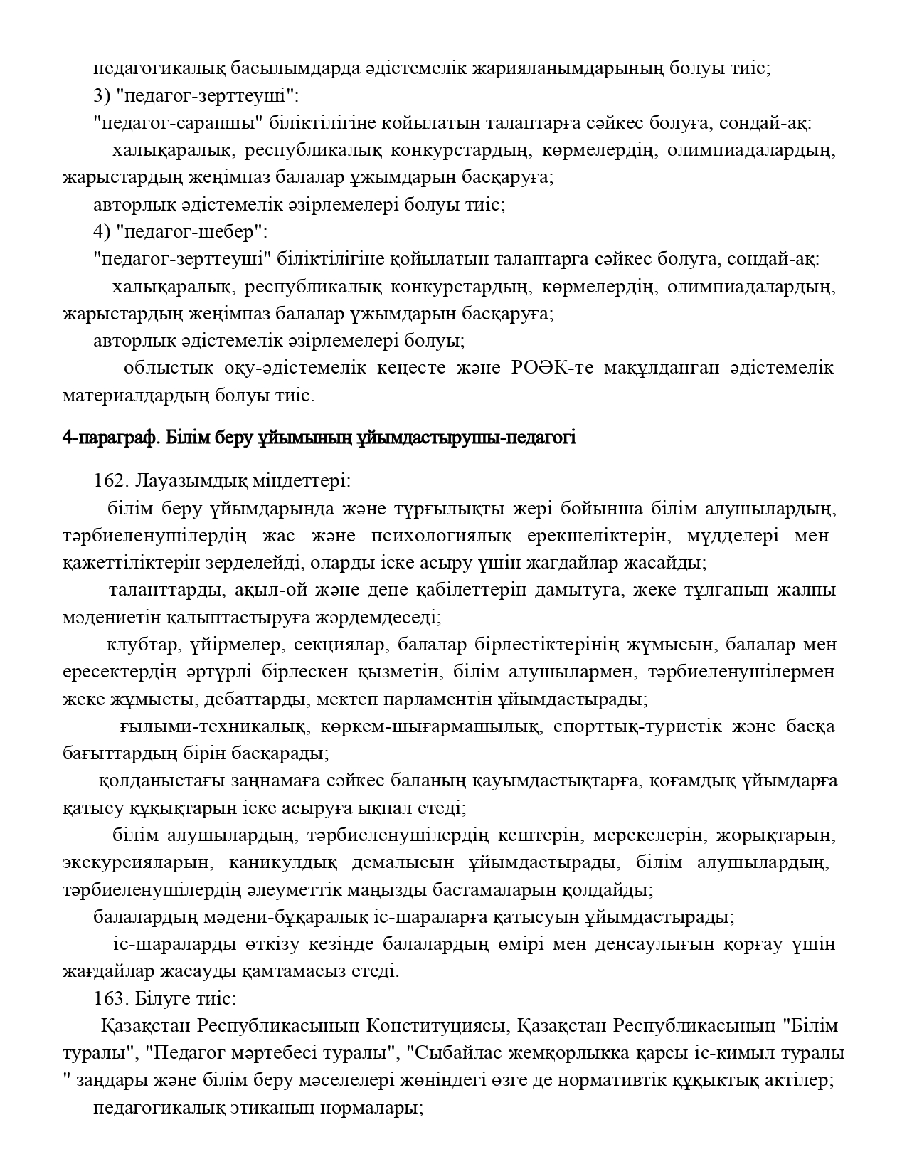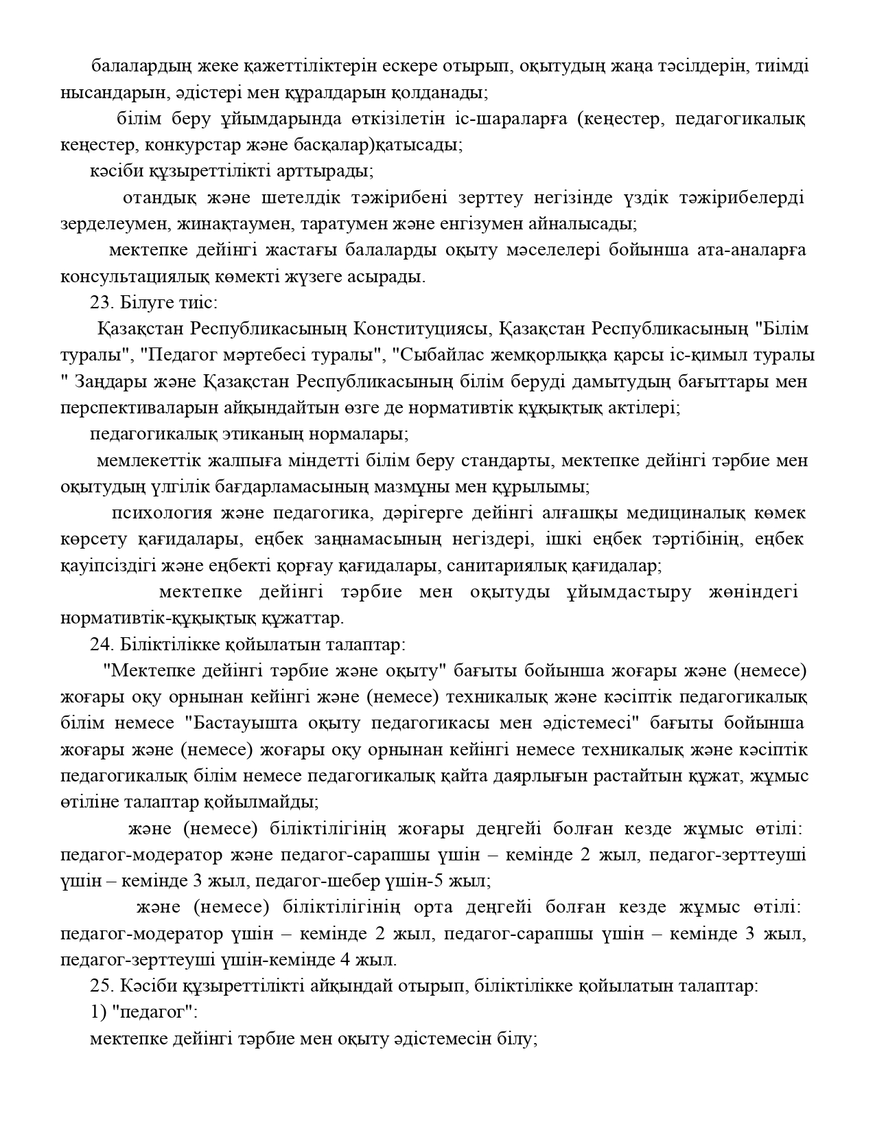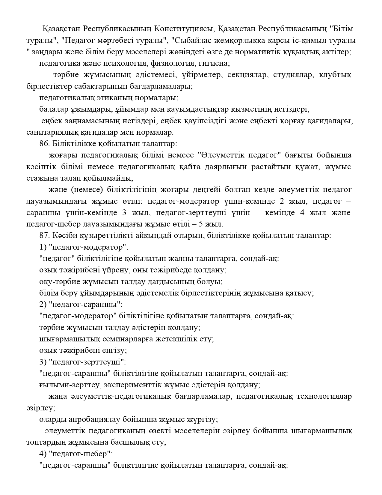 » Педагог лауазымдарының үлгілік біліктілік сипаттамаларын бекіту туралы