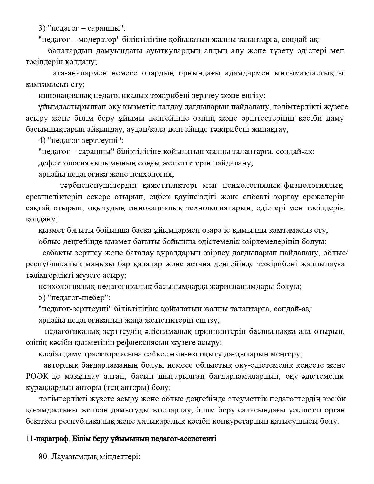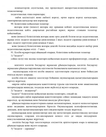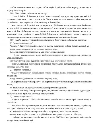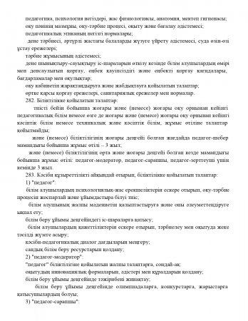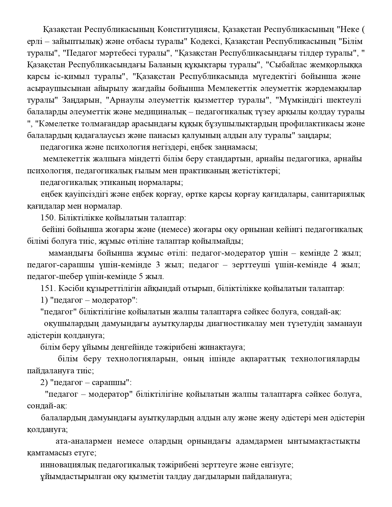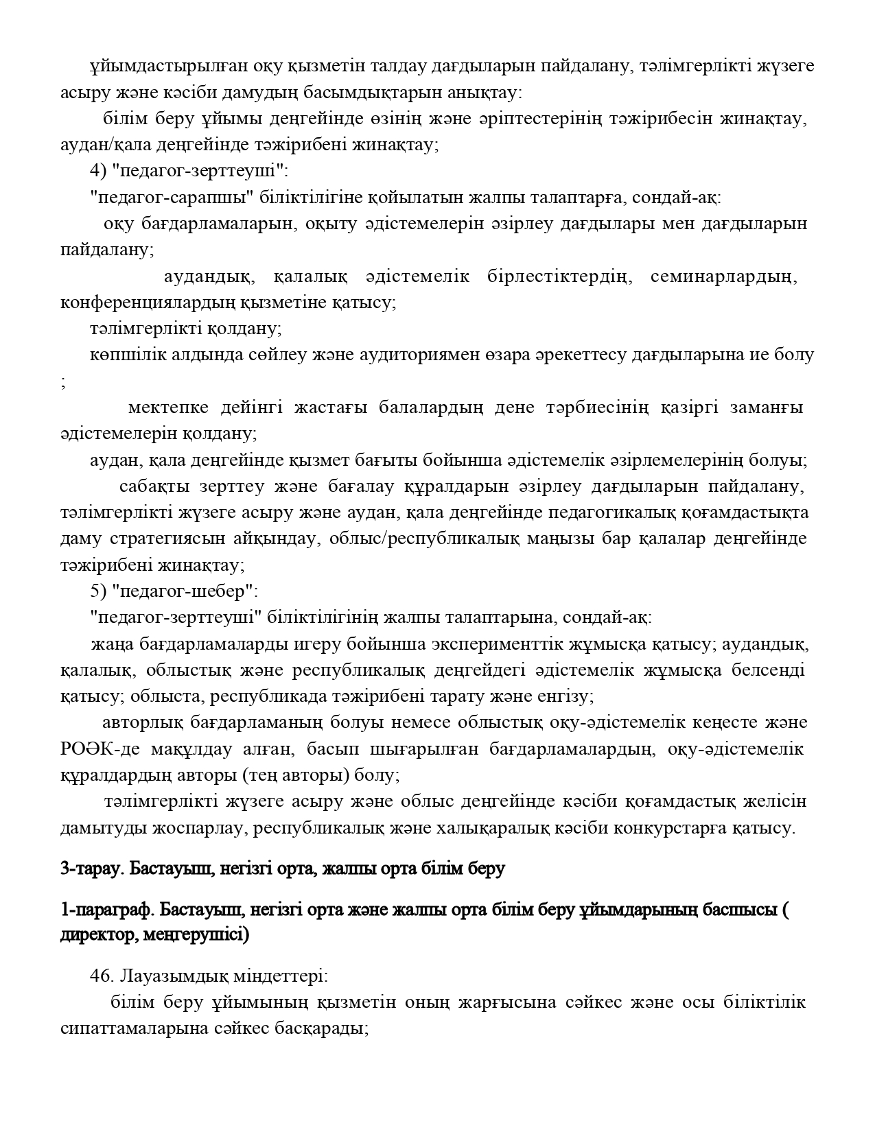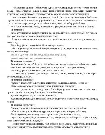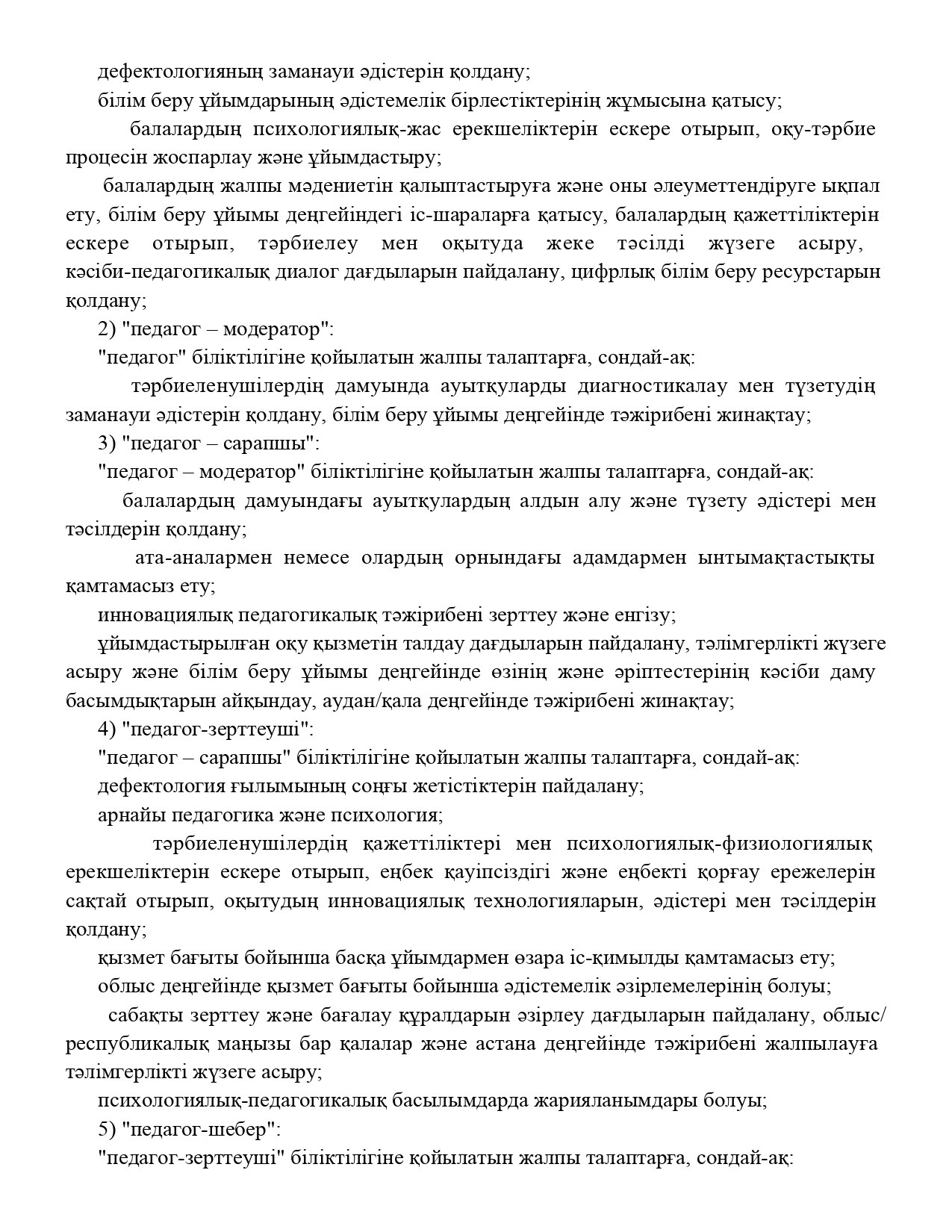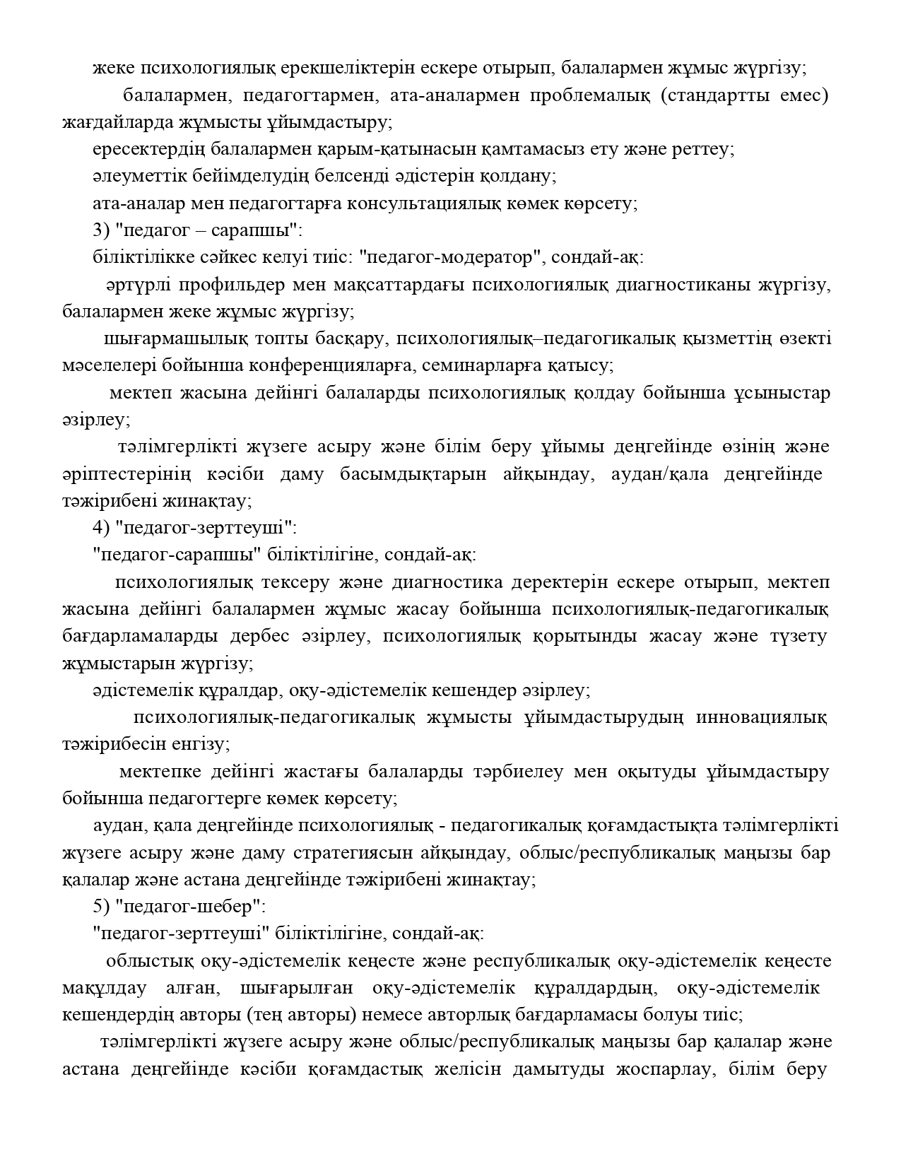 » Педагог лауазымдарының үлгілік біліктілік сипаттамаларын бекіту туралы