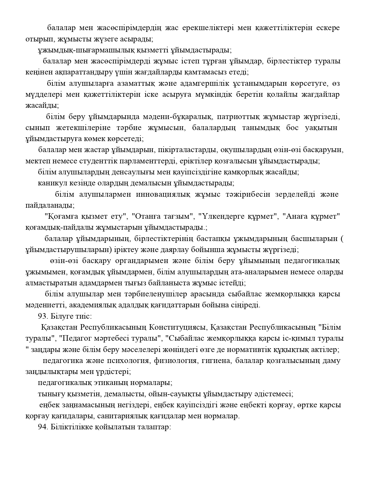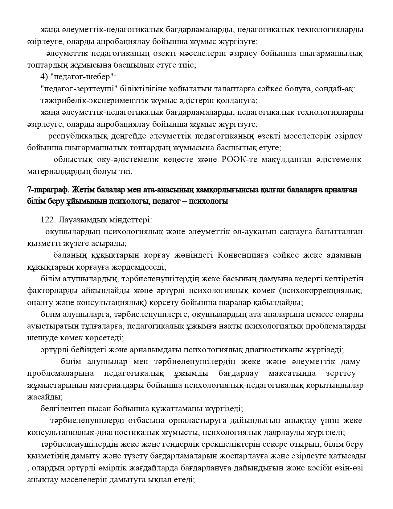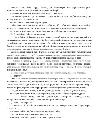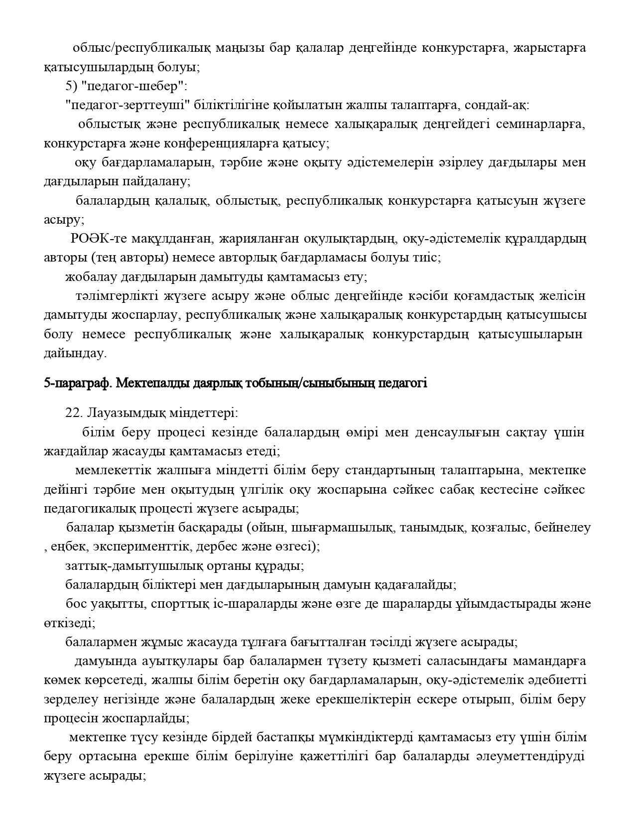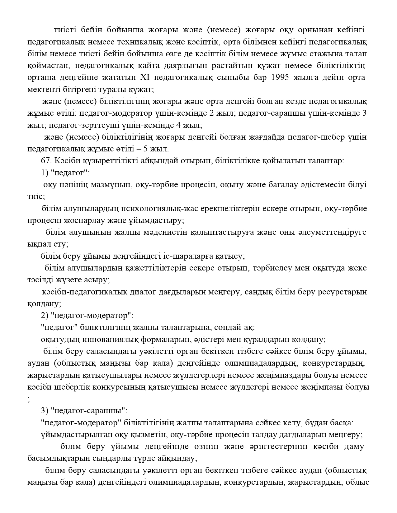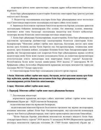 » Педагог лауазымдарының үлгілік біліктілік сипаттамаларын бекіту туралы