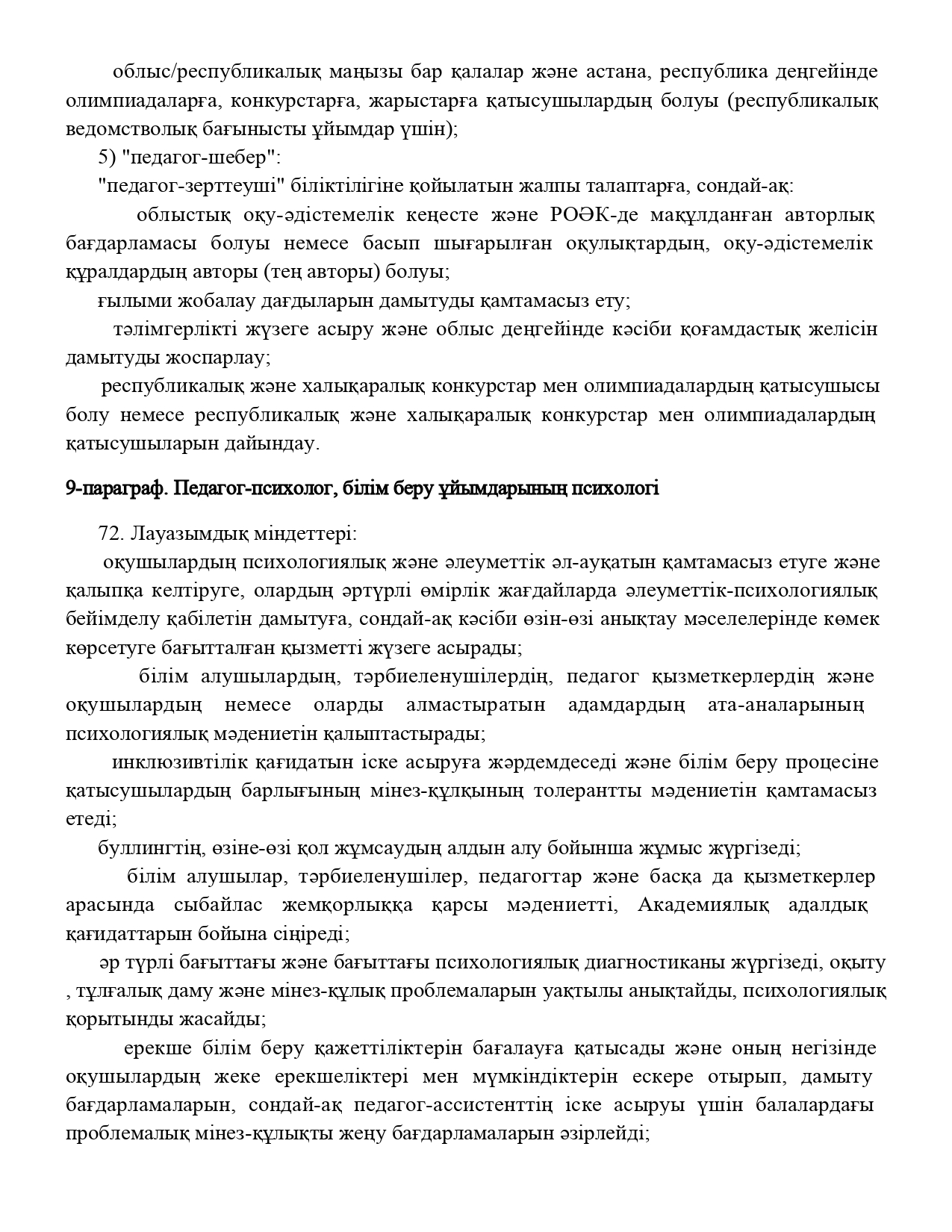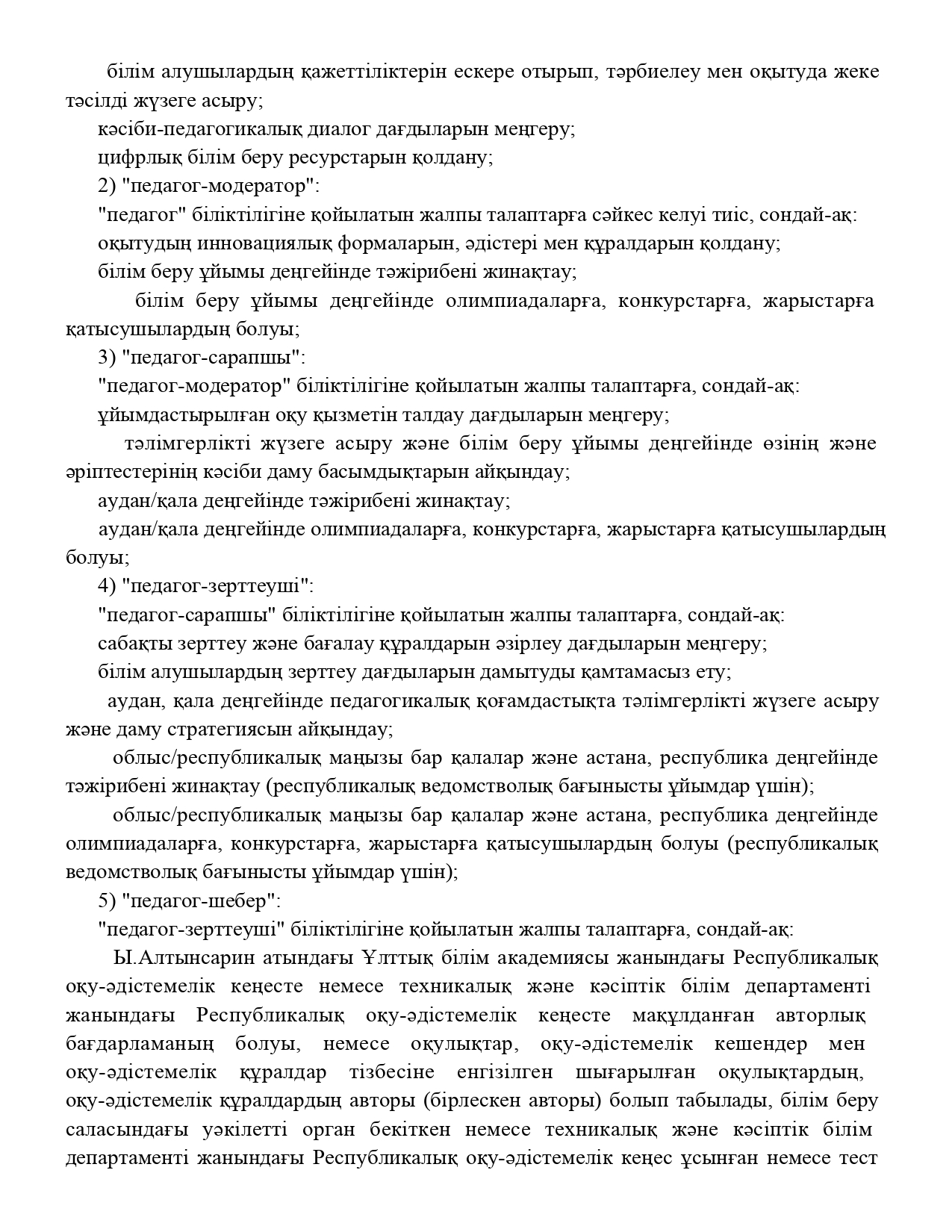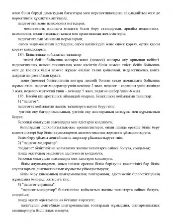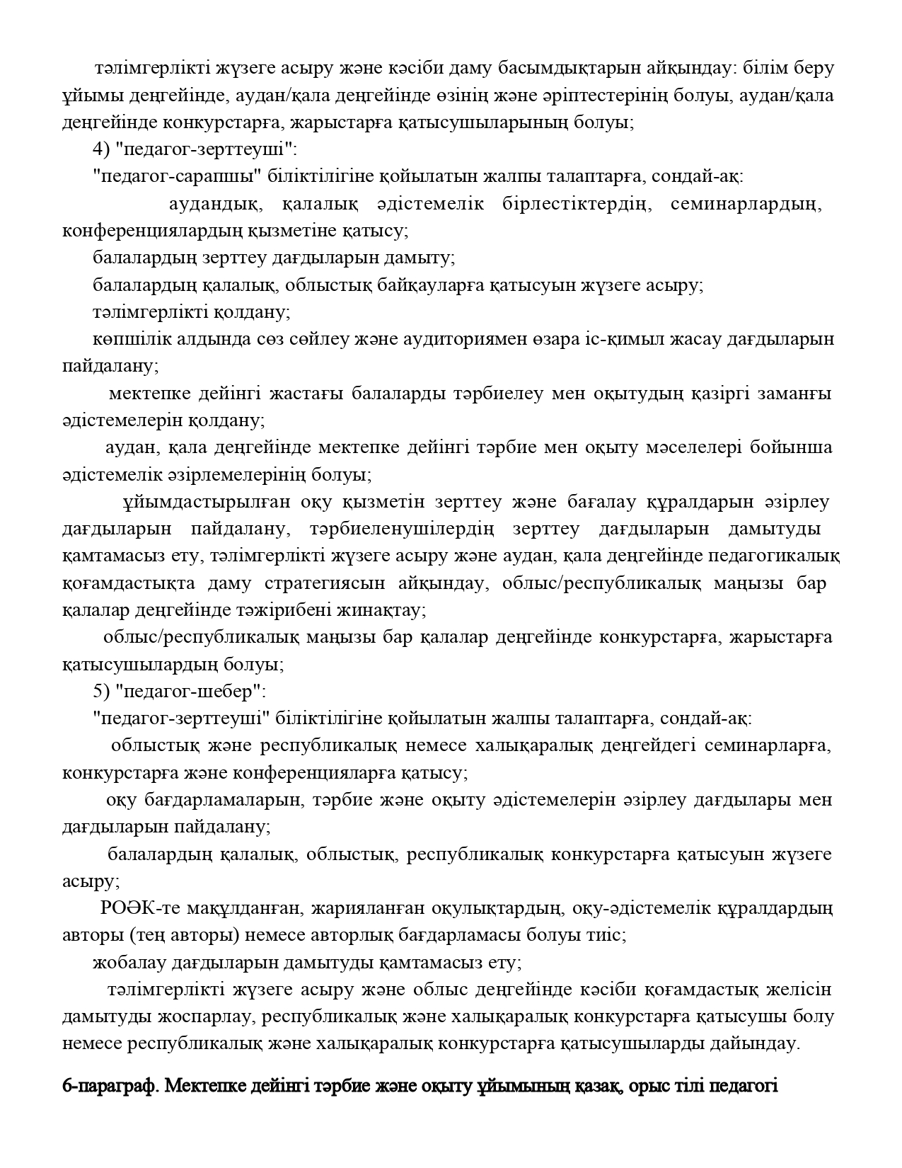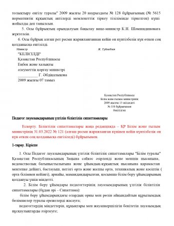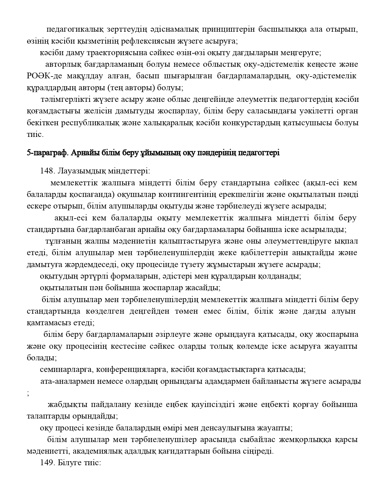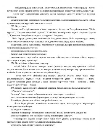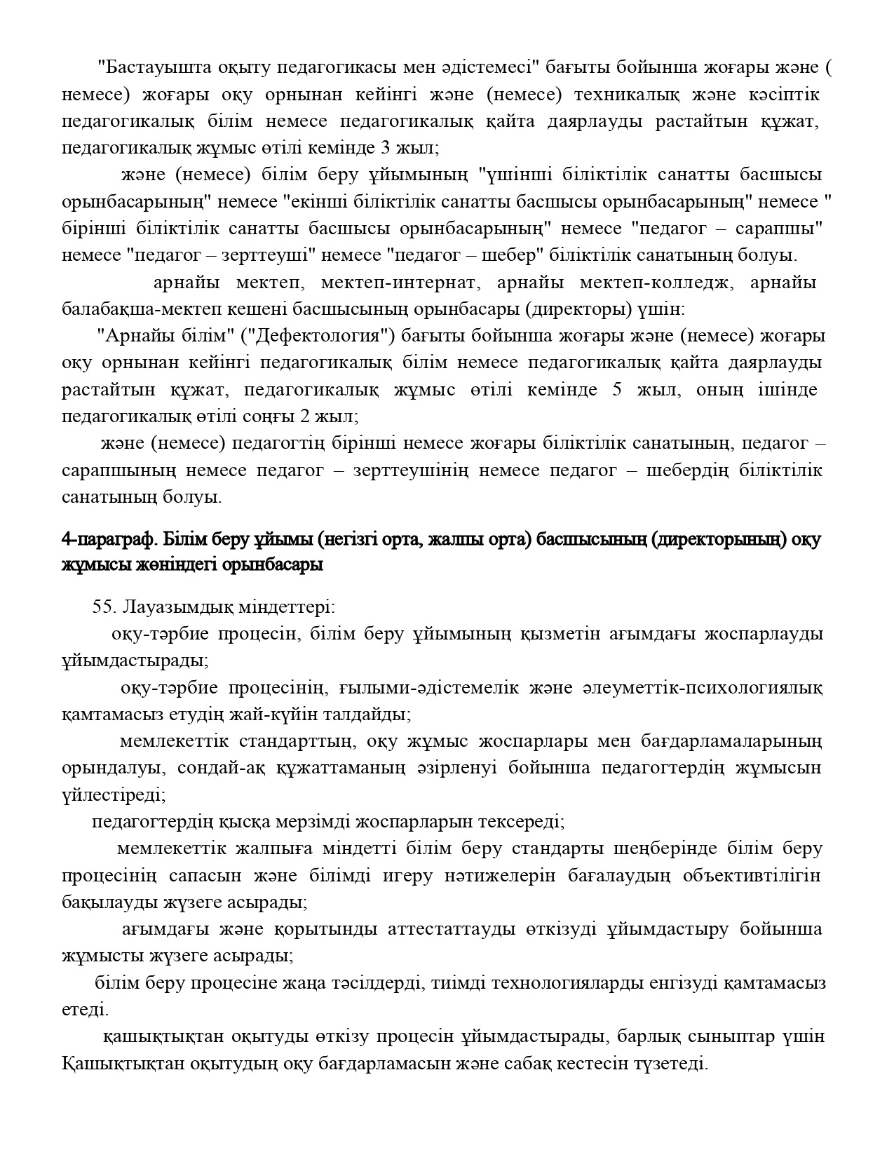 » Педагог лауазымдарының үлгілік біліктілік сипаттамаларын бекіту туралы