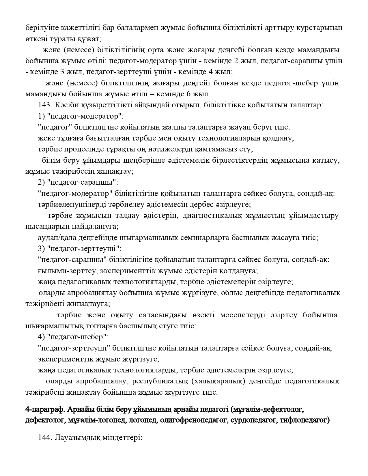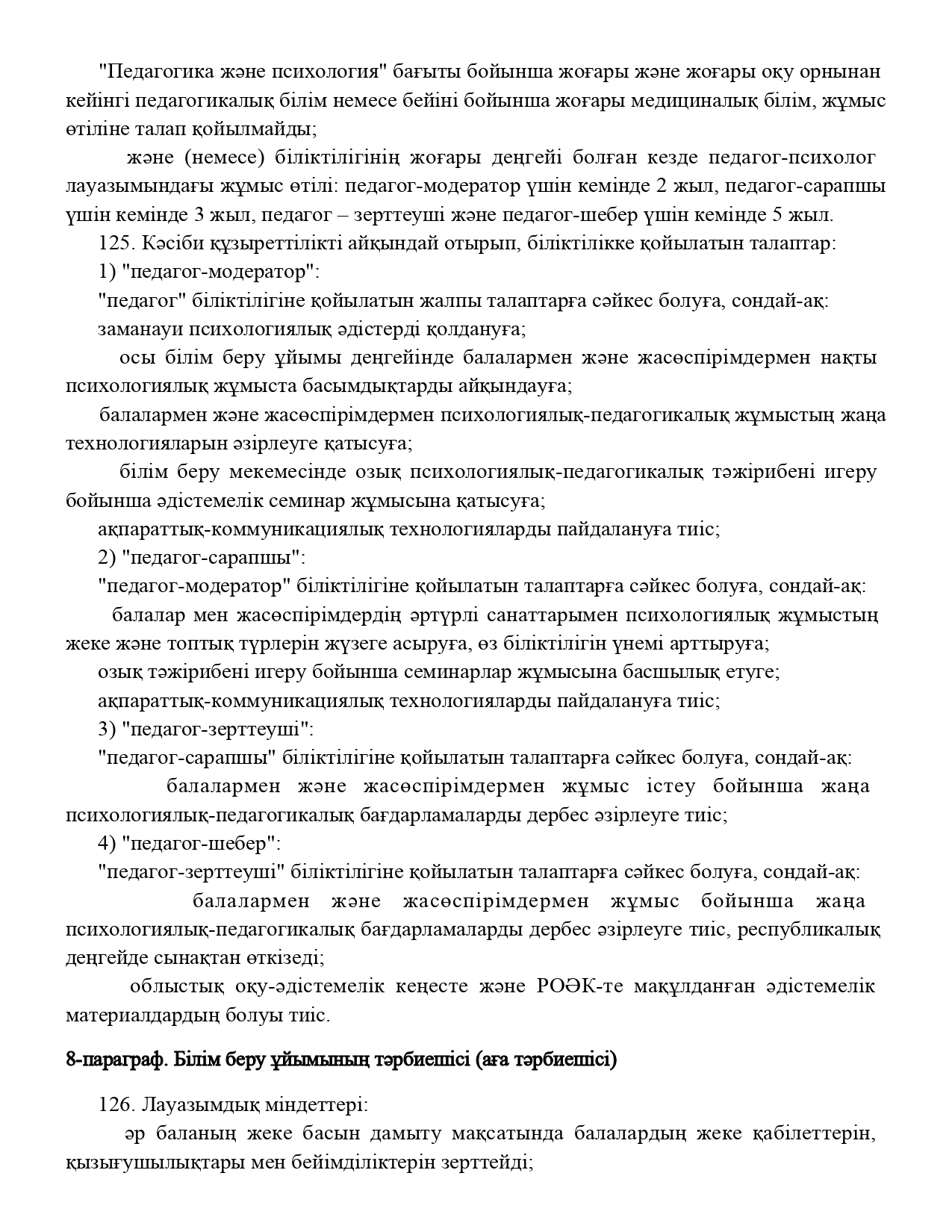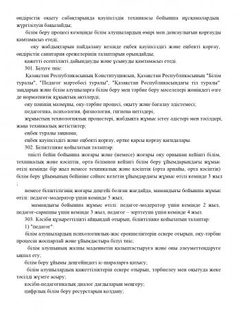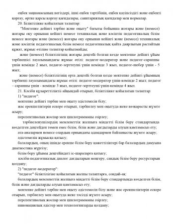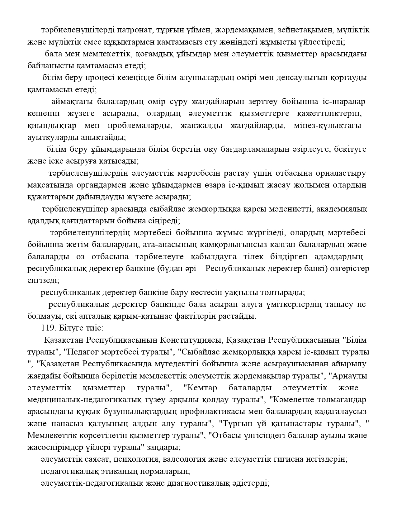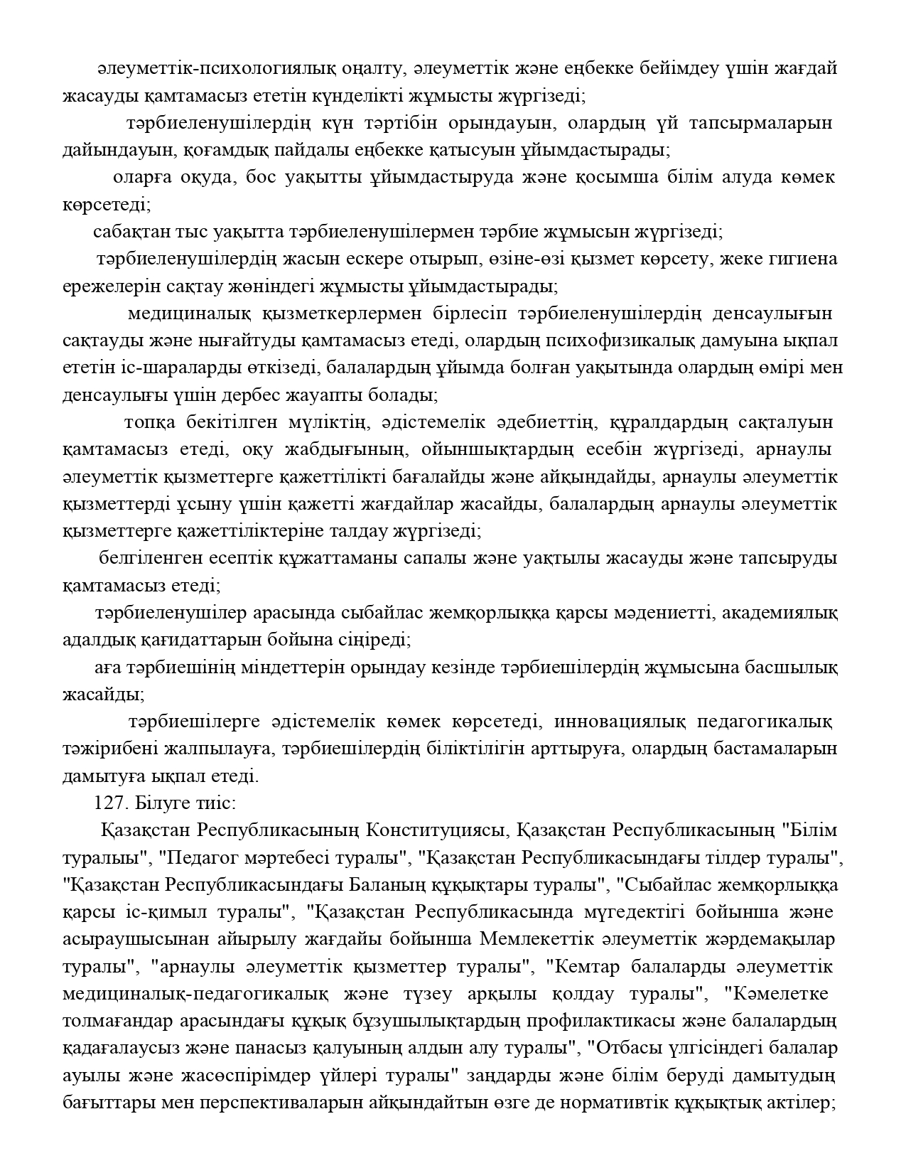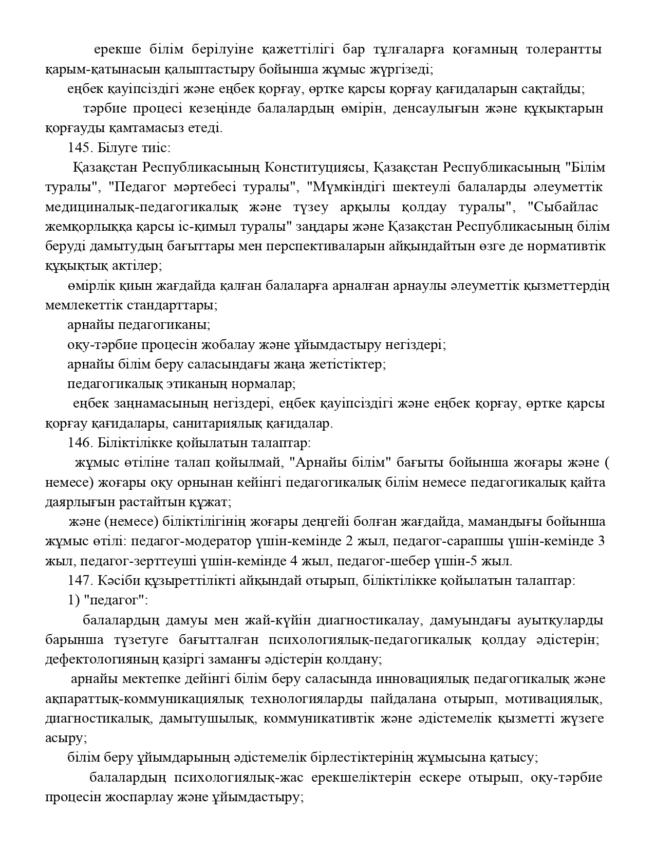 » Педагог лауазымдарының үлгілік біліктілік сипаттамаларын бекіту туралы