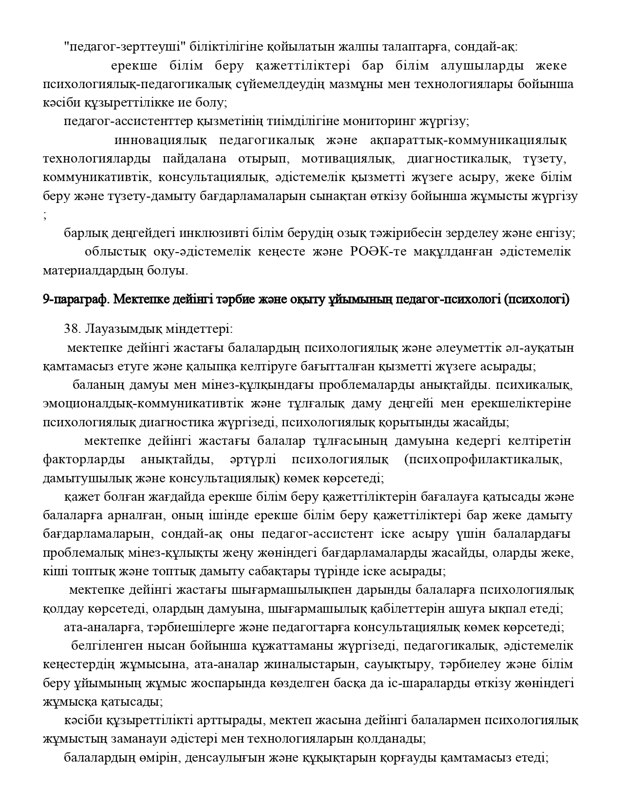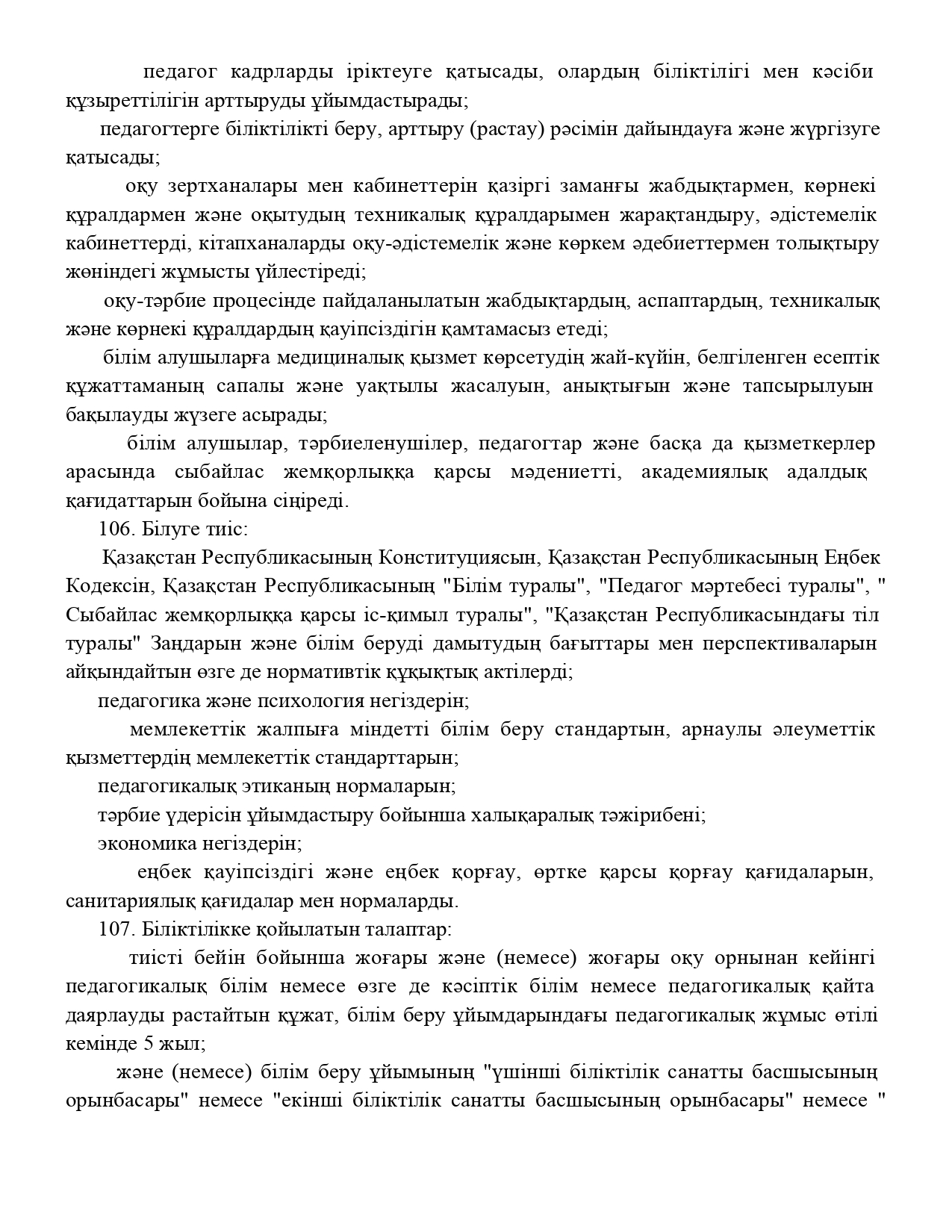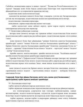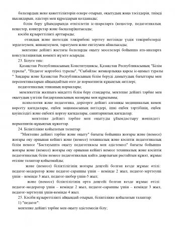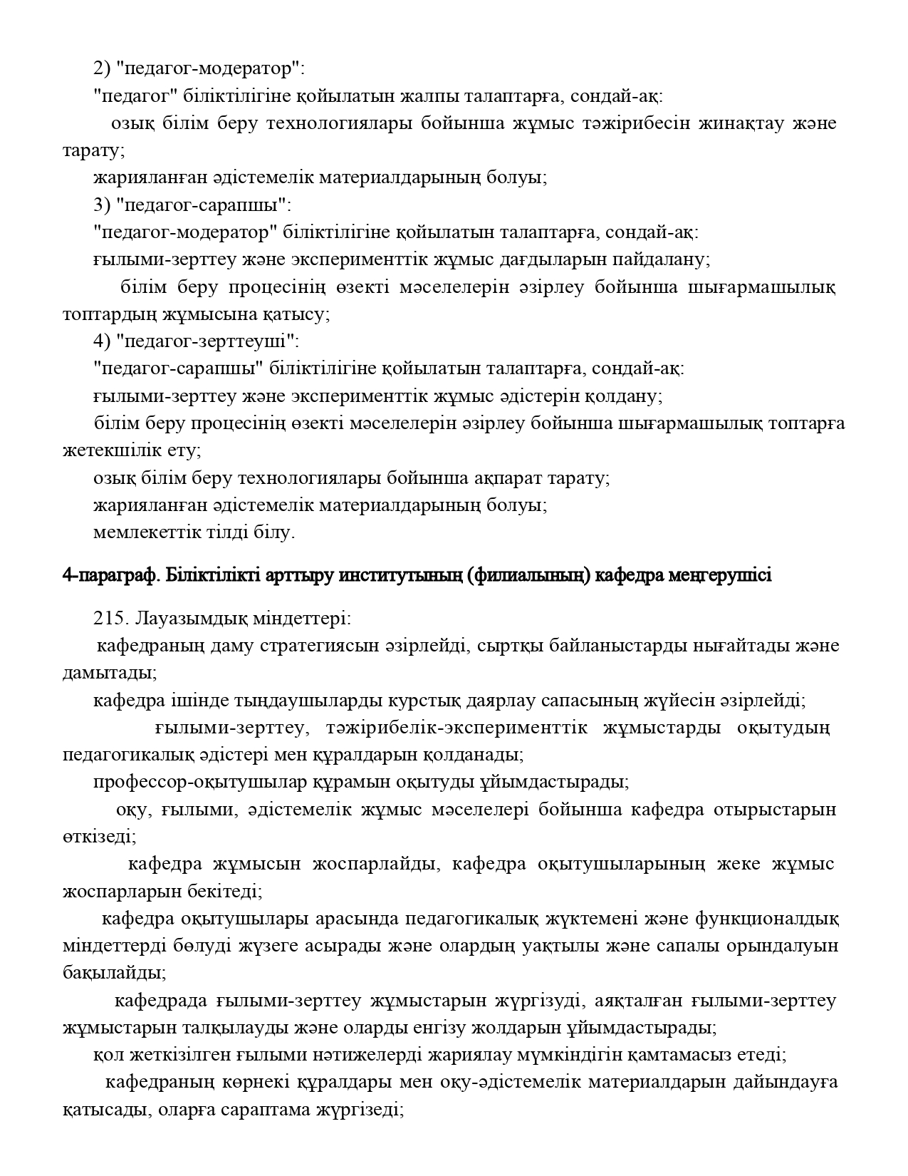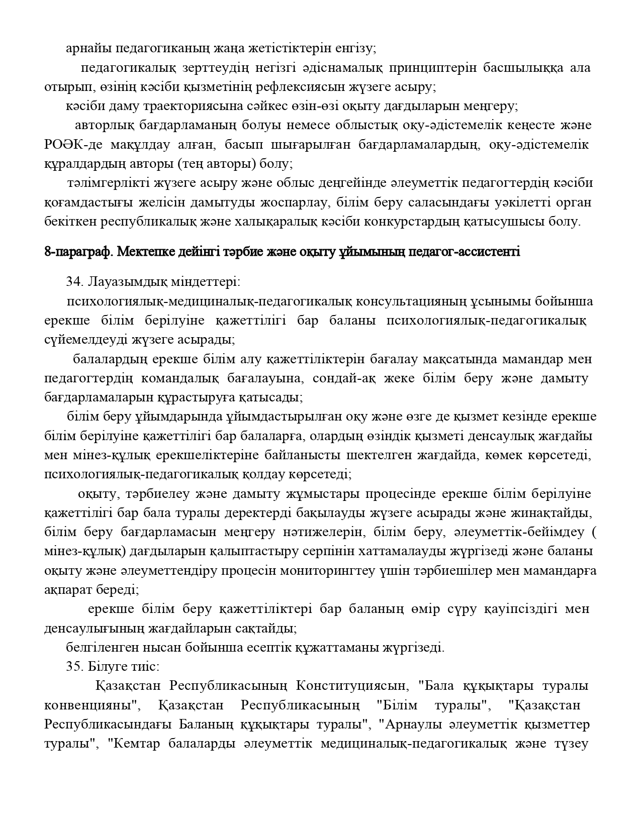» Педагог лауазымдарының үлгілік біліктілік сипаттамаларын бекіту туралы