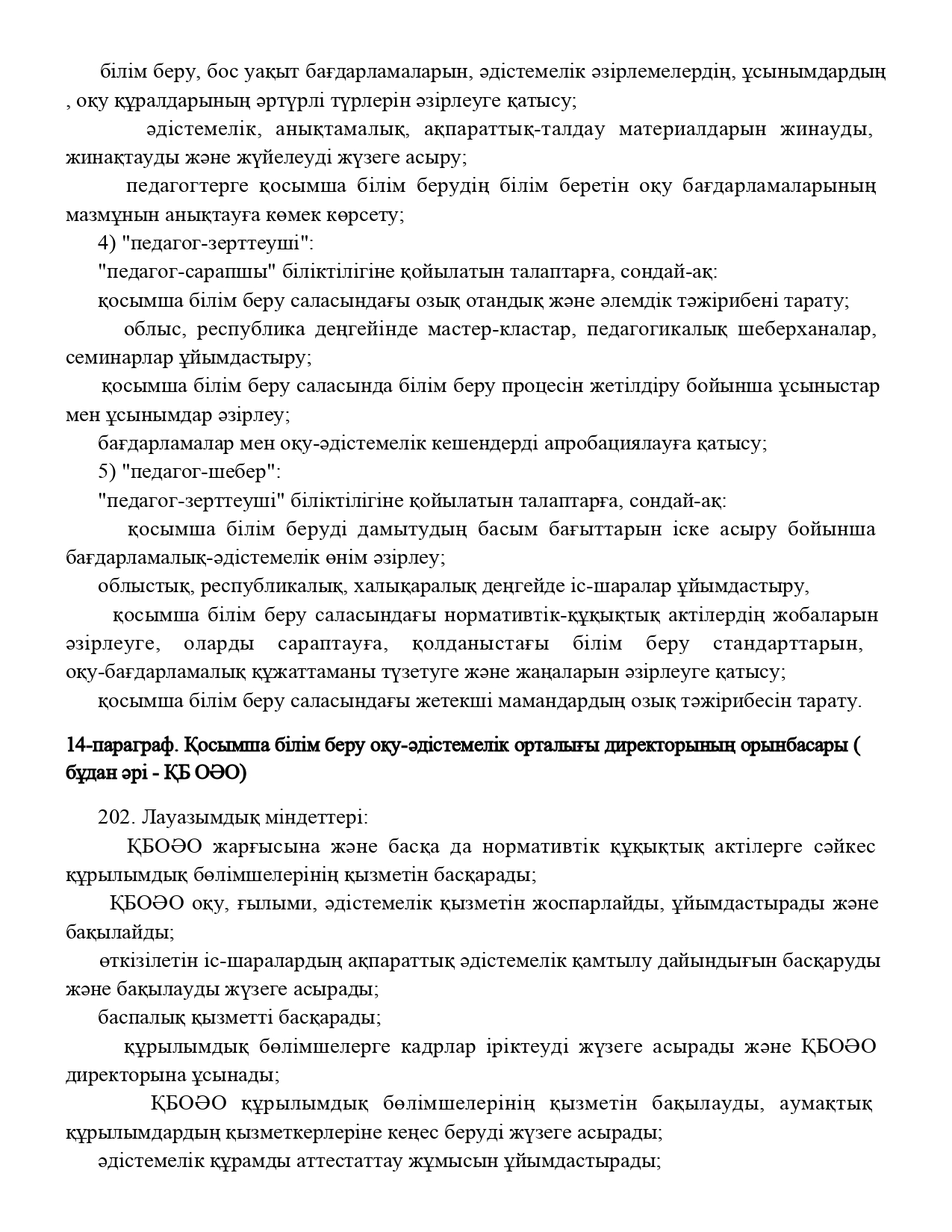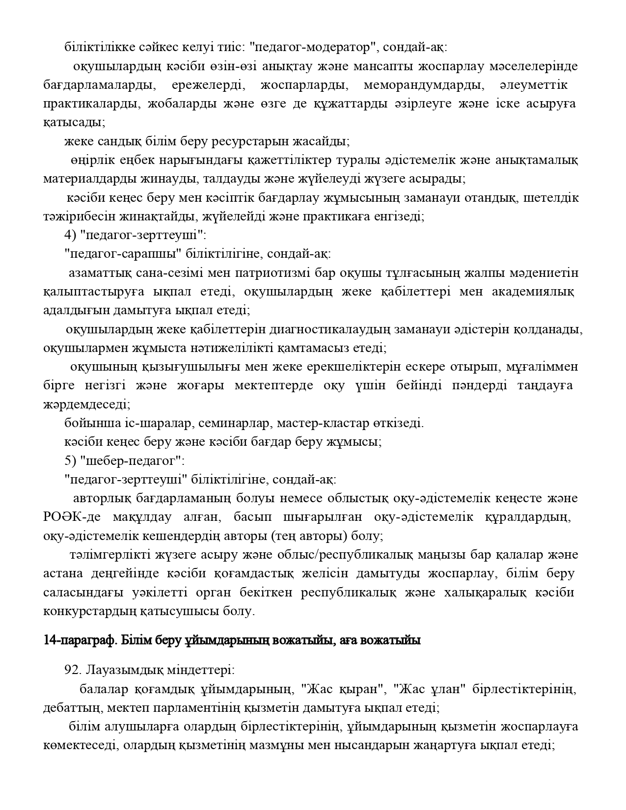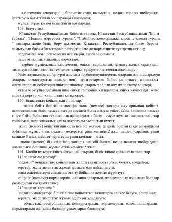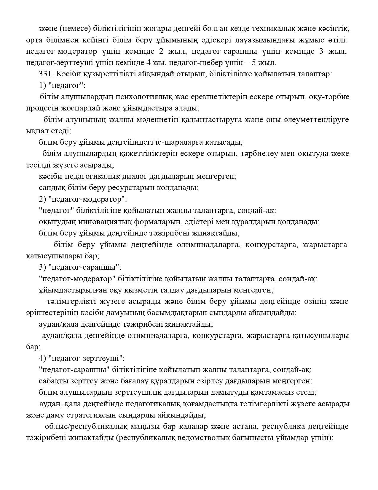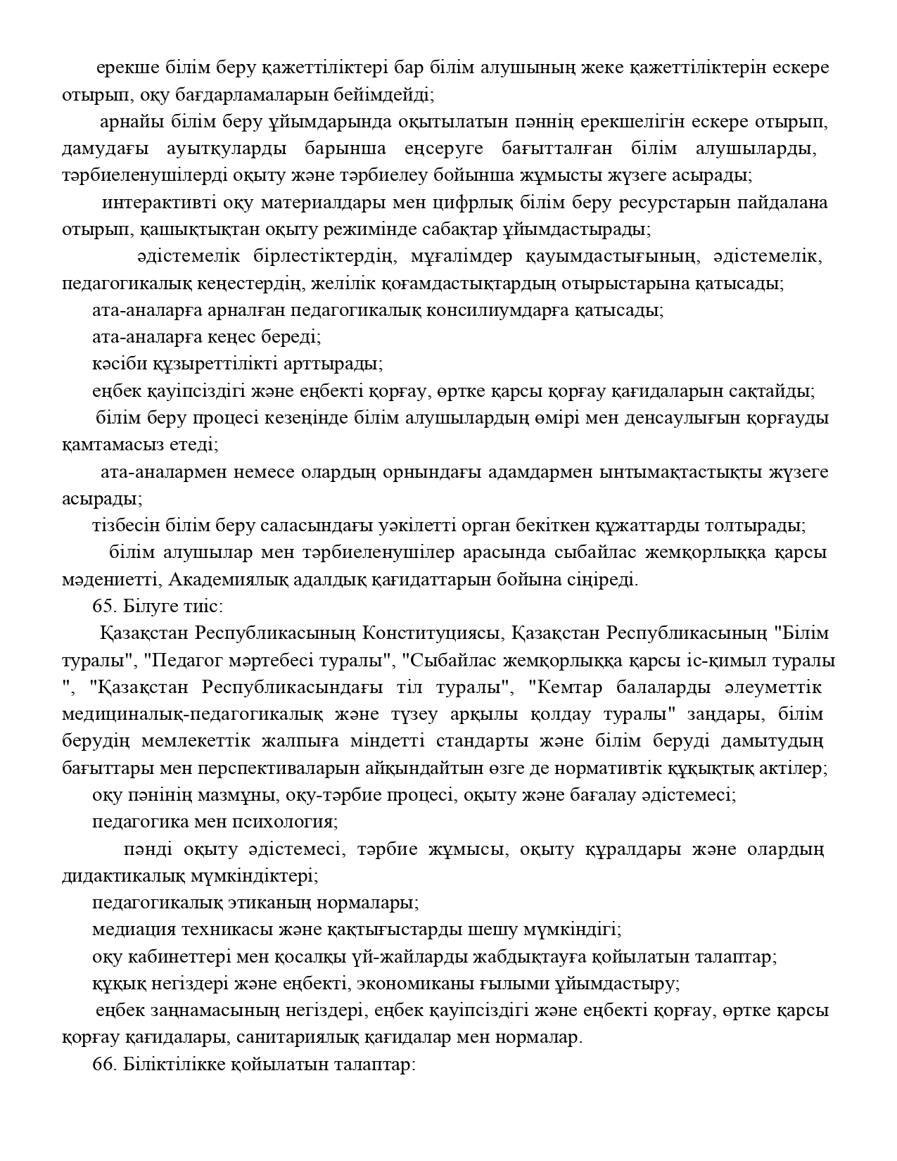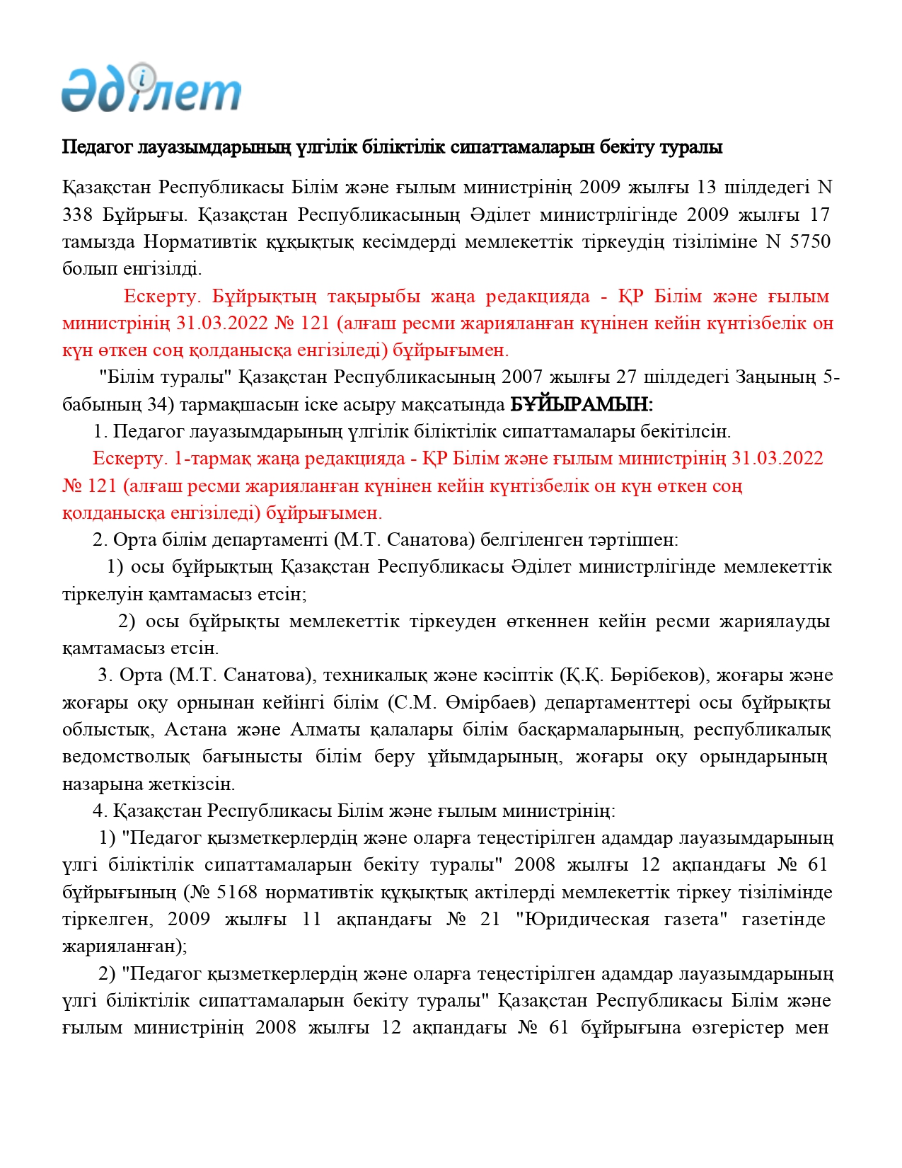 » Педагог лауазымдарының үлгілік біліктілік сипаттамаларын бекіту туралы