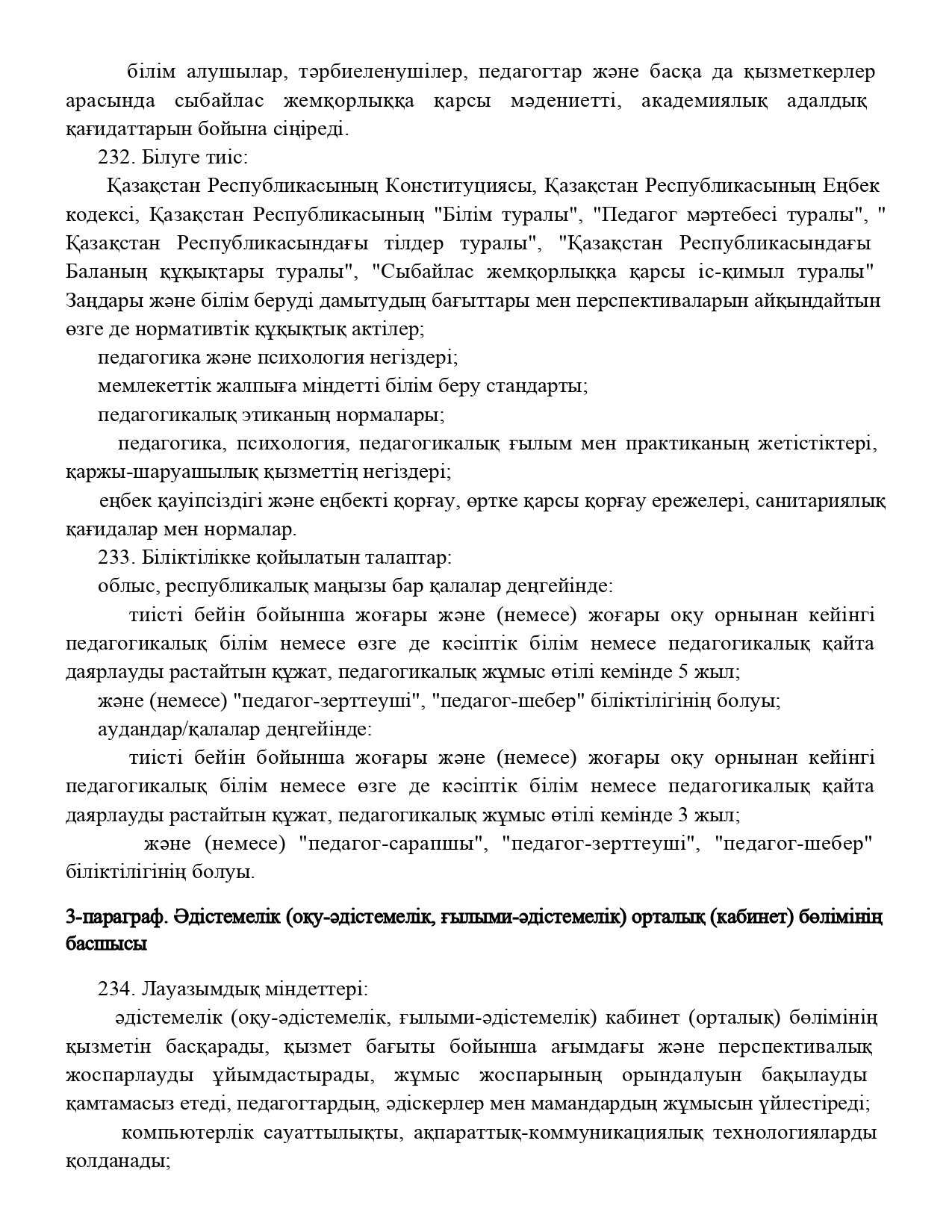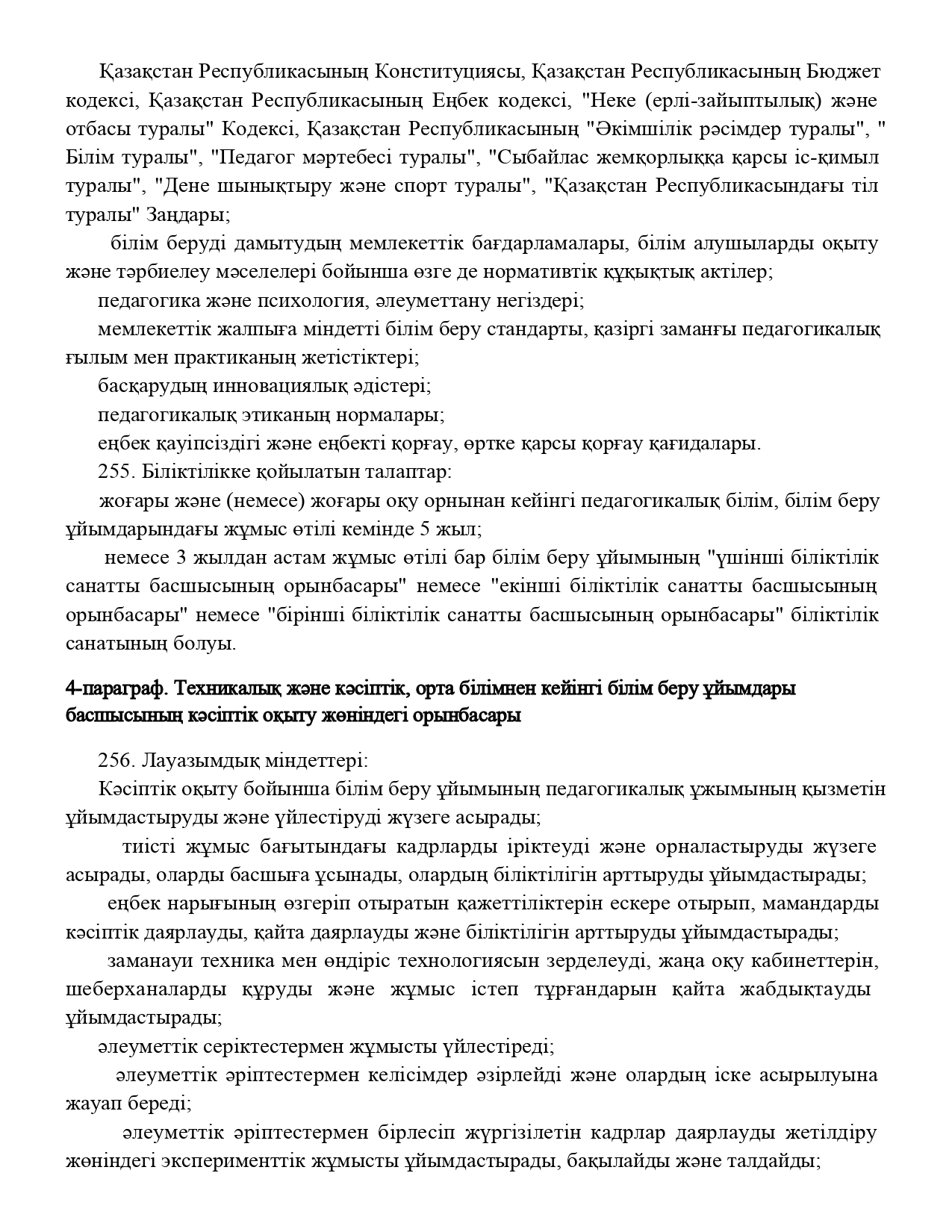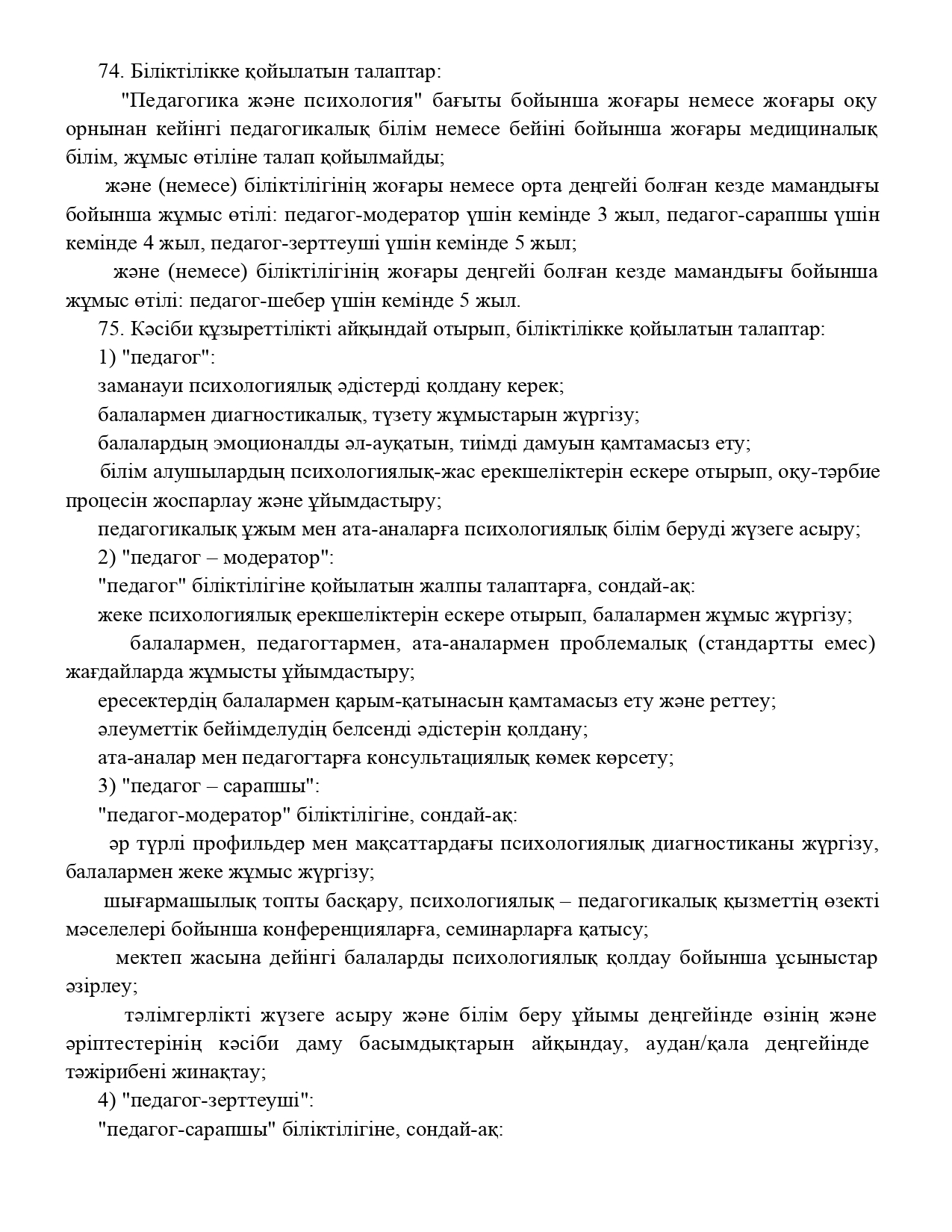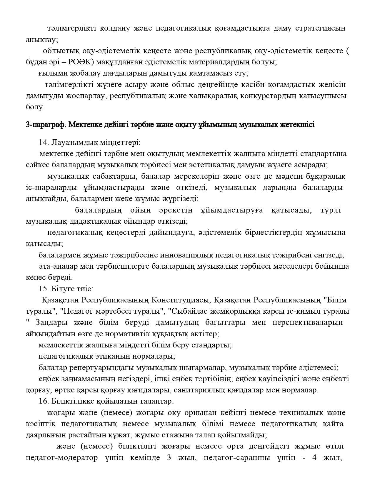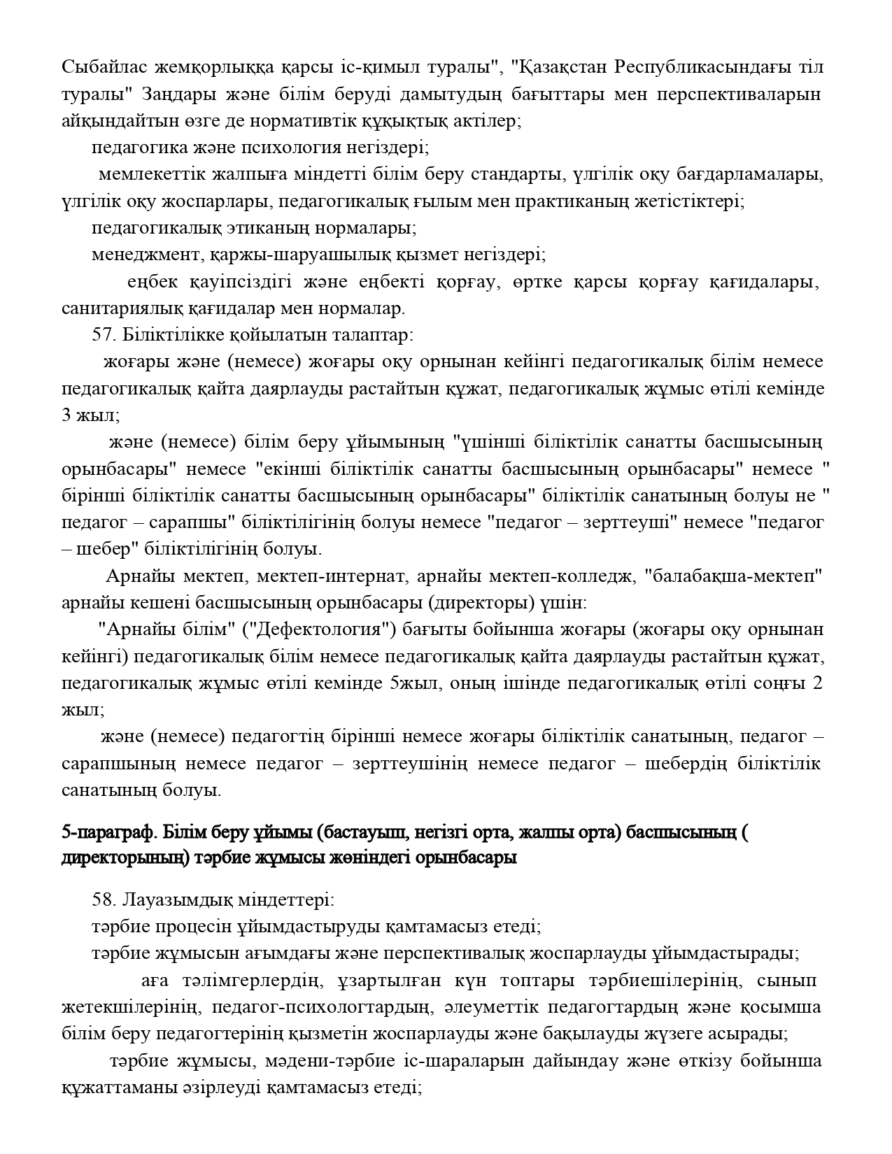 » Педагог лауазымдарының үлгілік біліктілік сипаттамаларын бекіту туралы