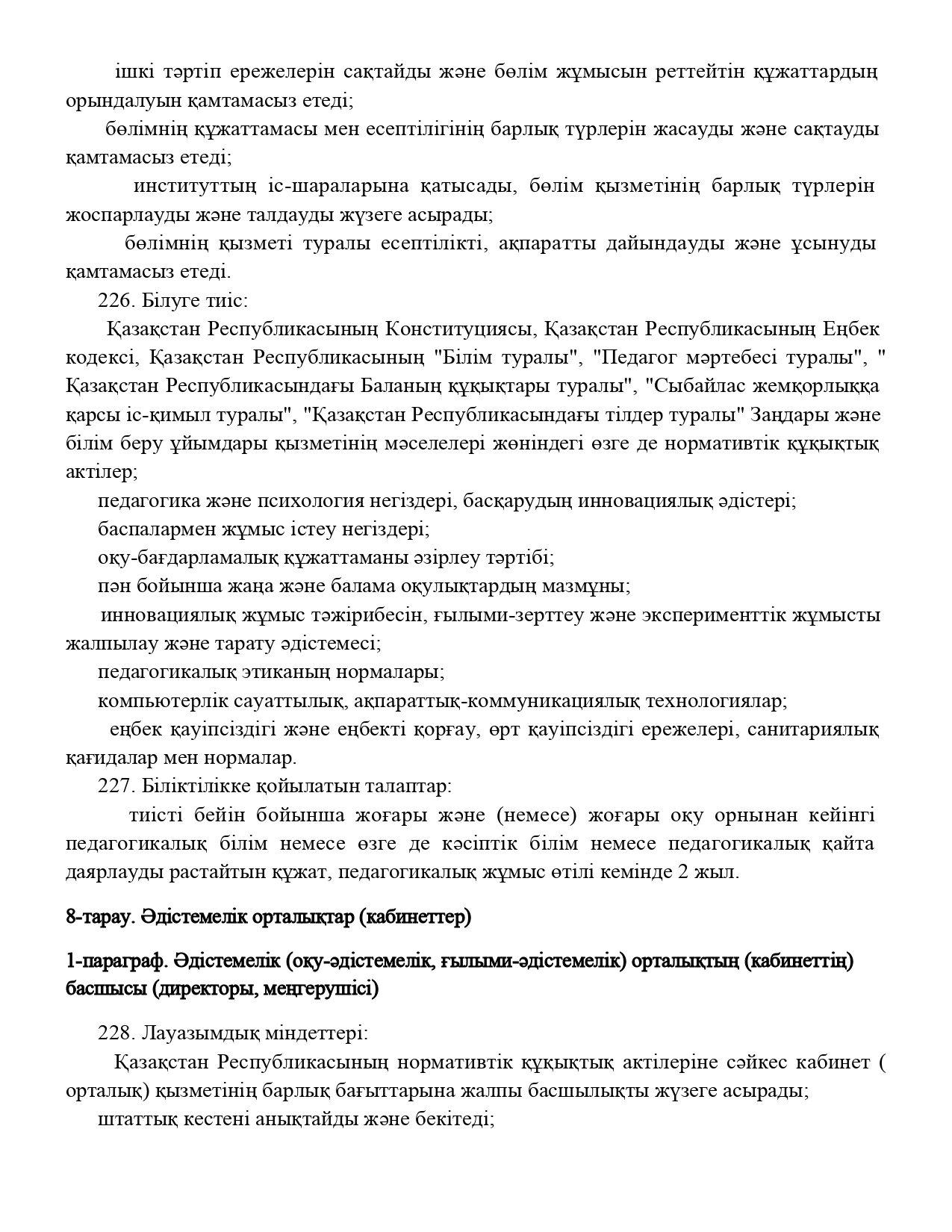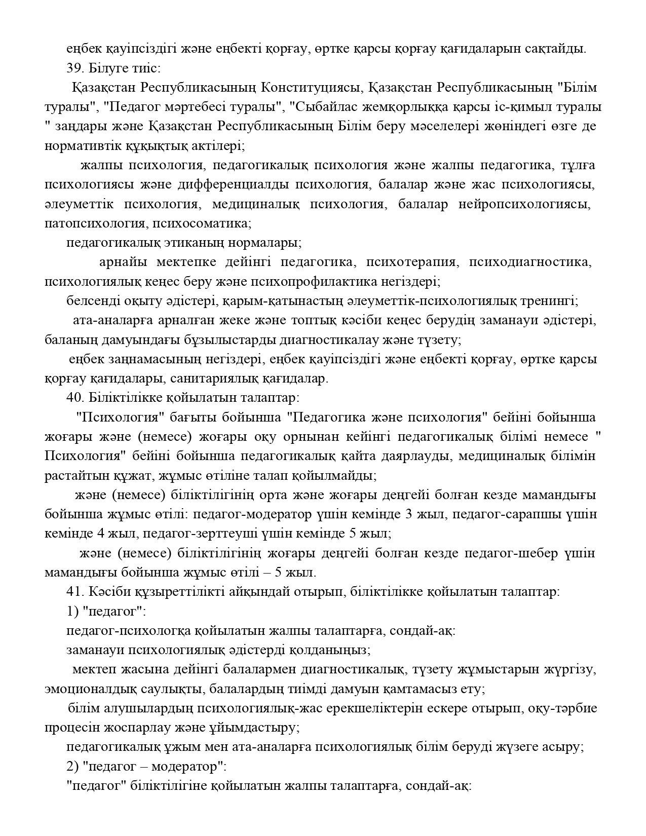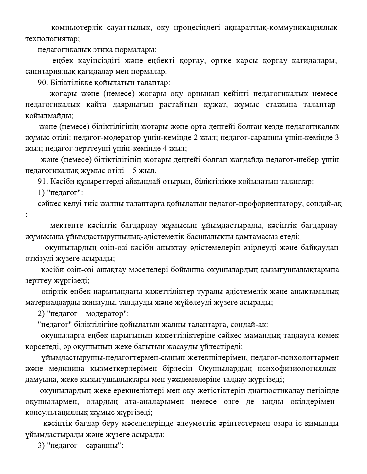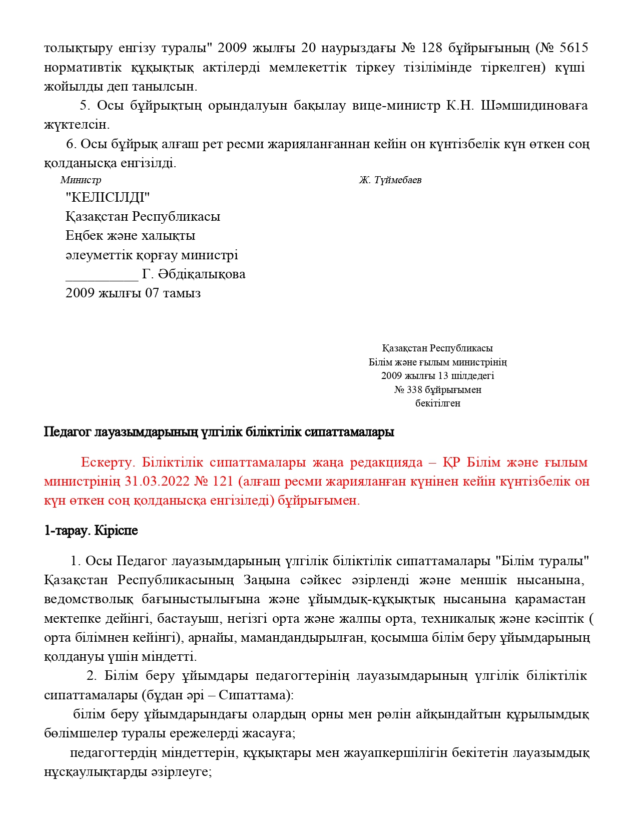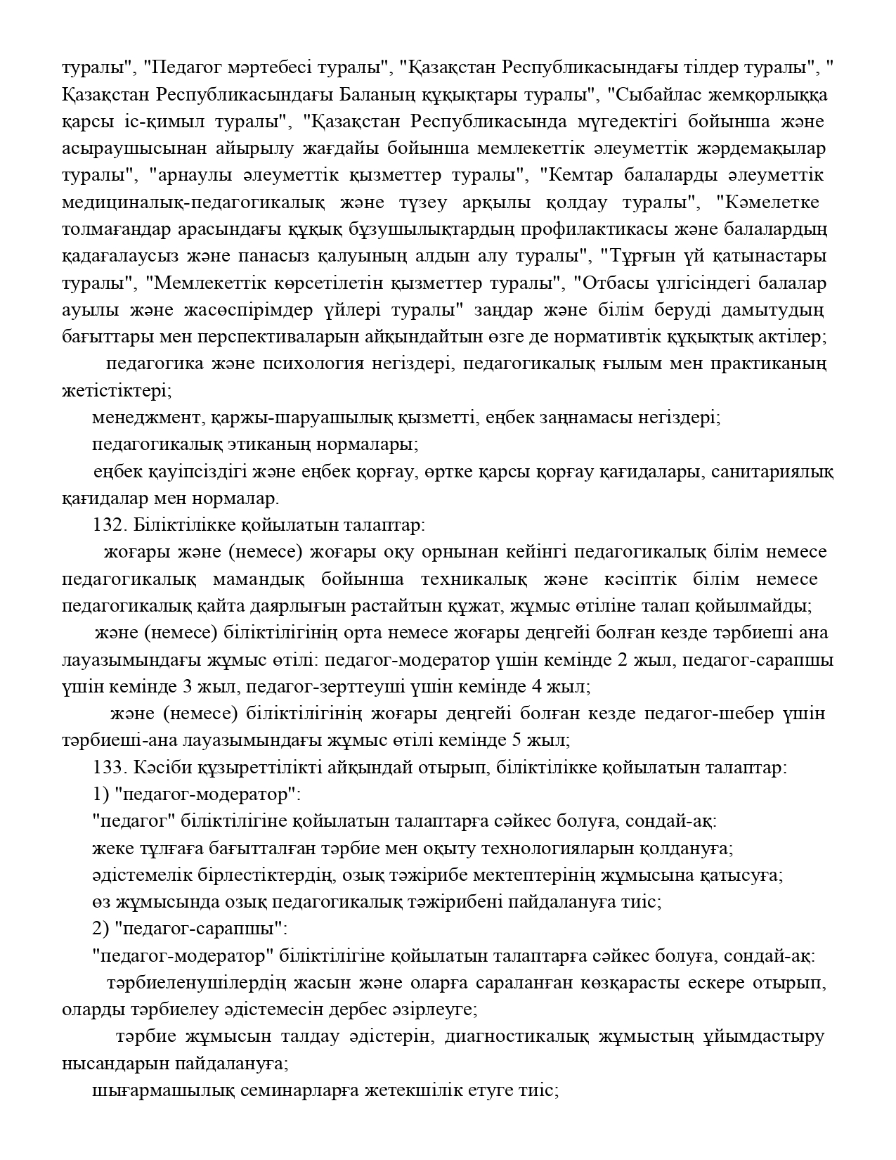 » Педагог лауазымдарының үлгілік біліктілік сипаттамаларын бекіту туралы