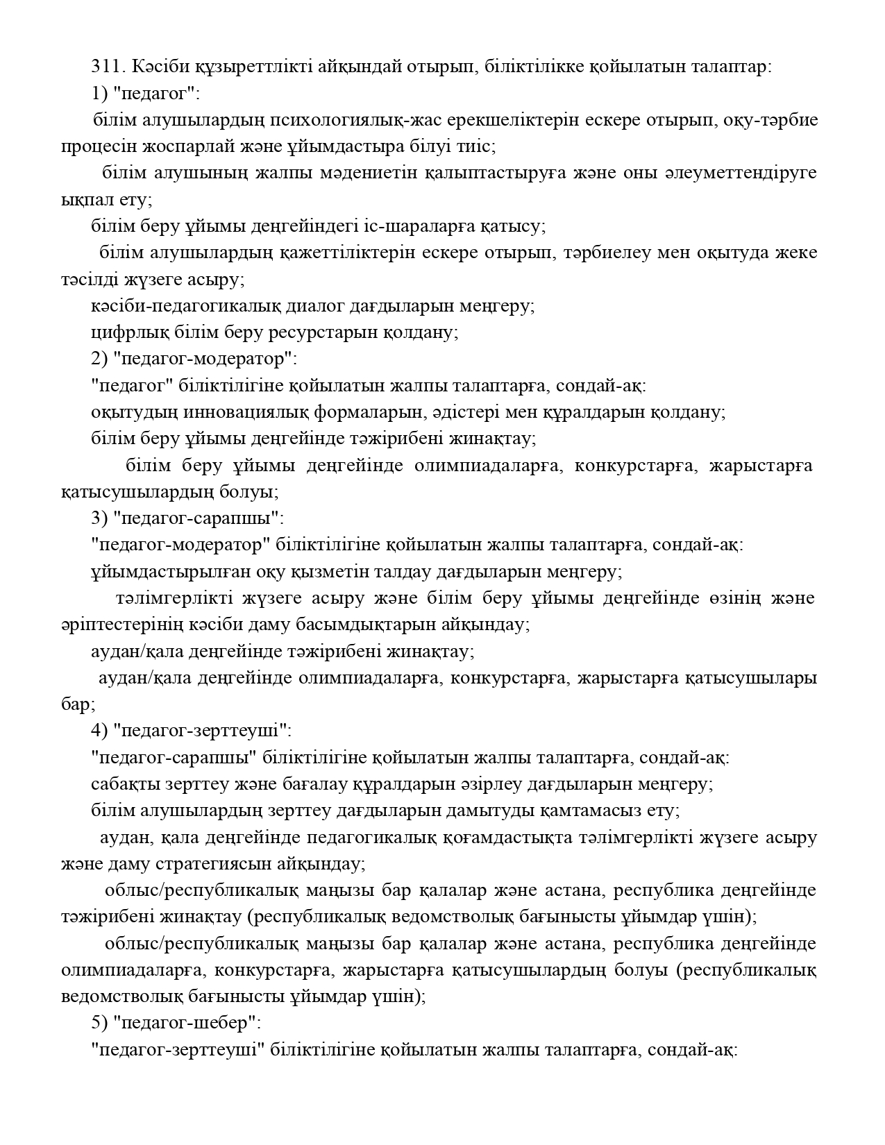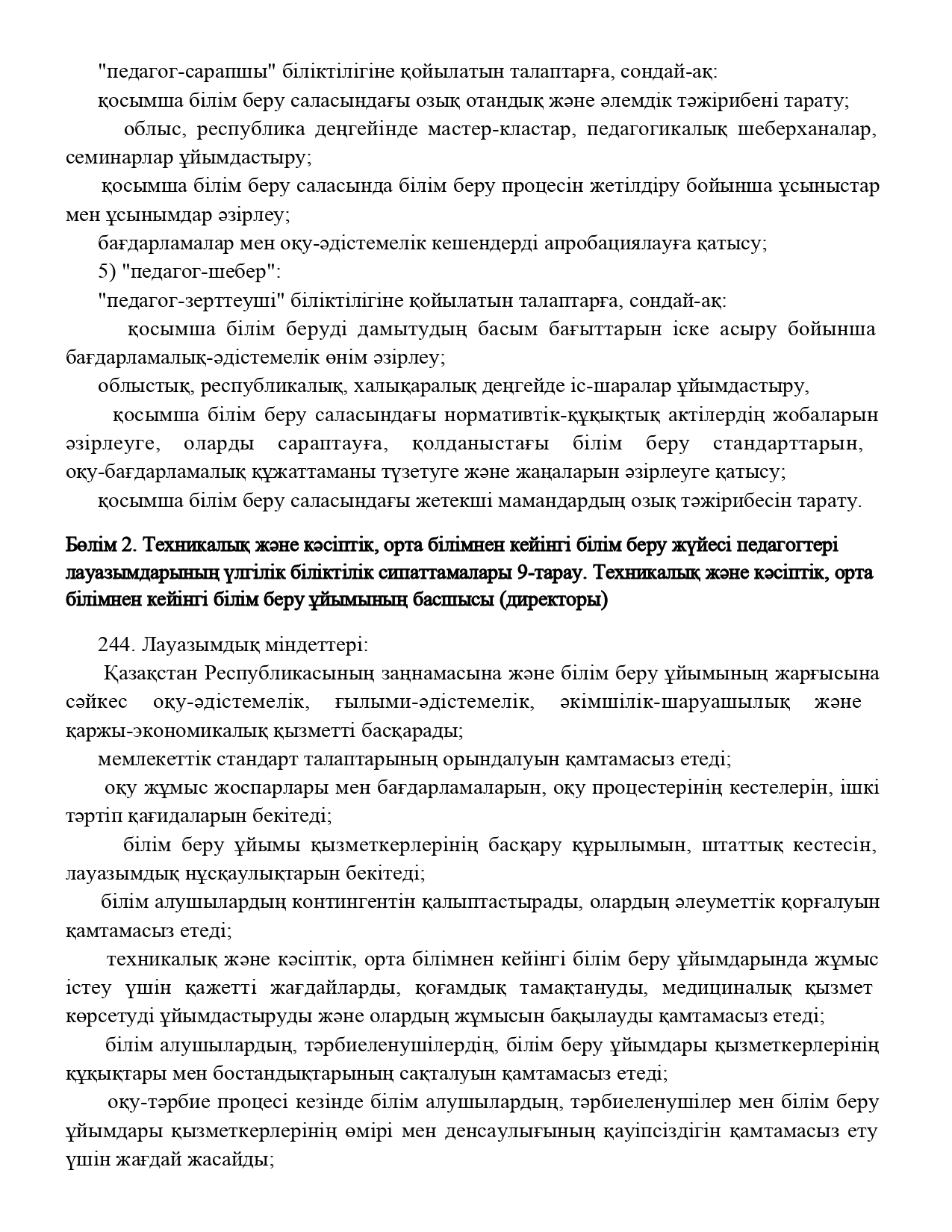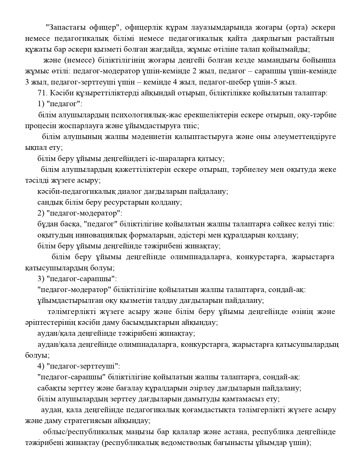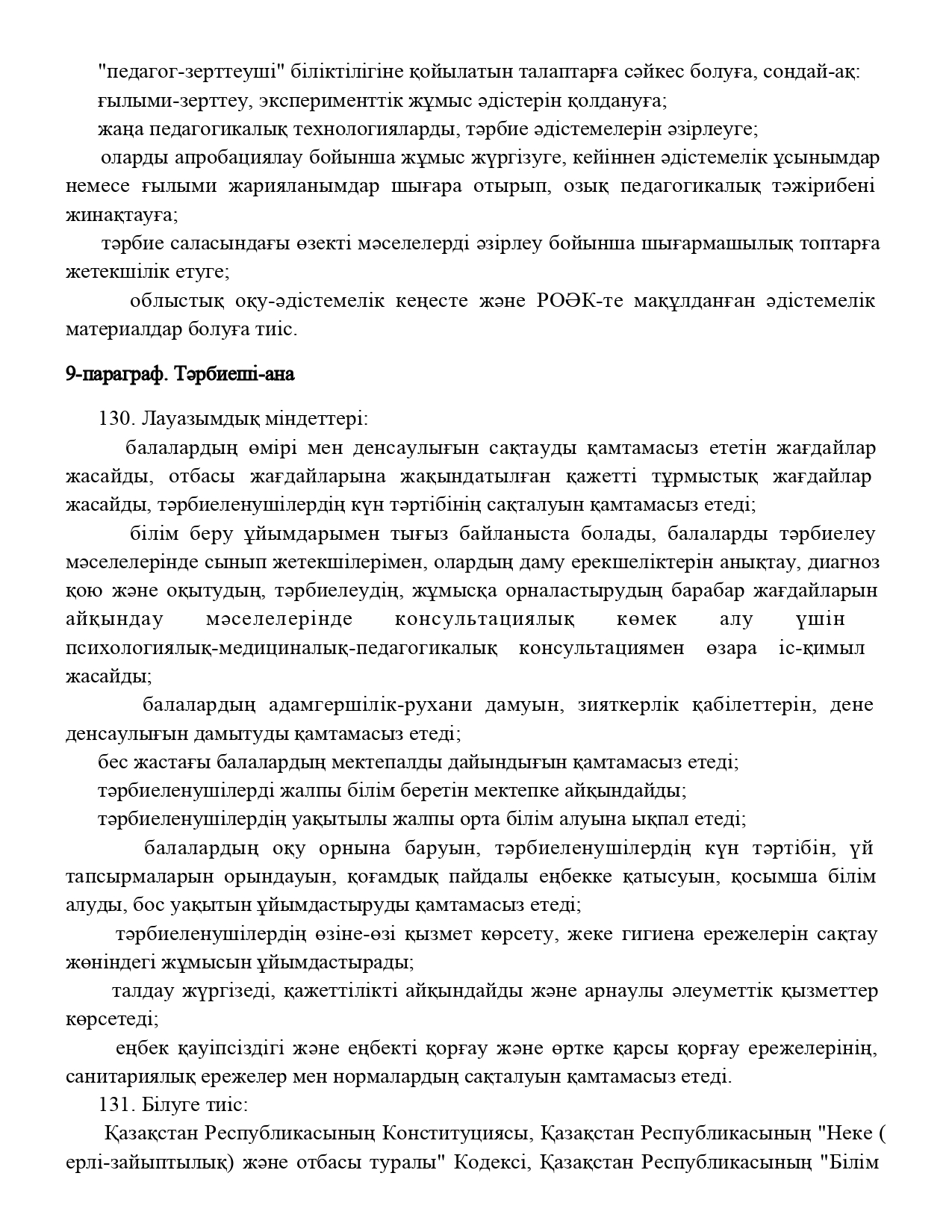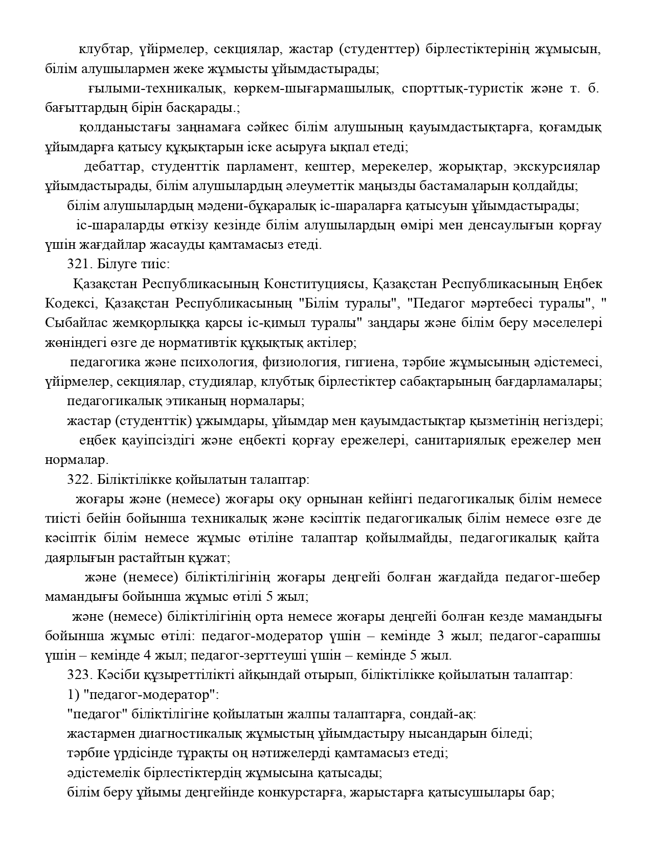 » Педагог лауазымдарының үлгілік біліктілік сипаттамаларын бекіту туралы
