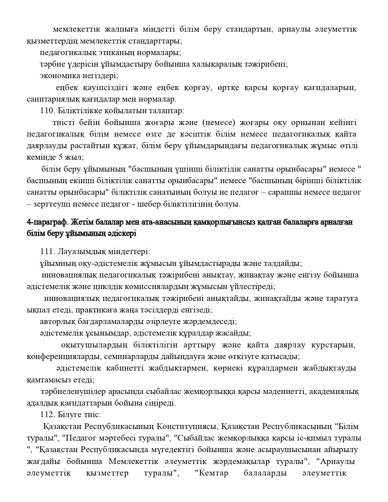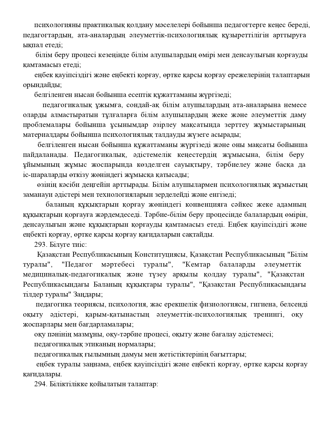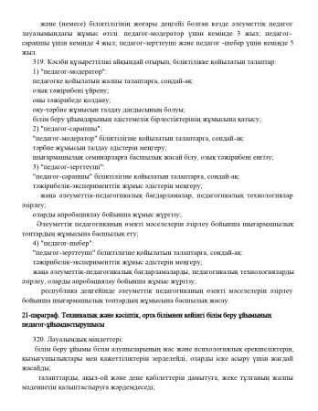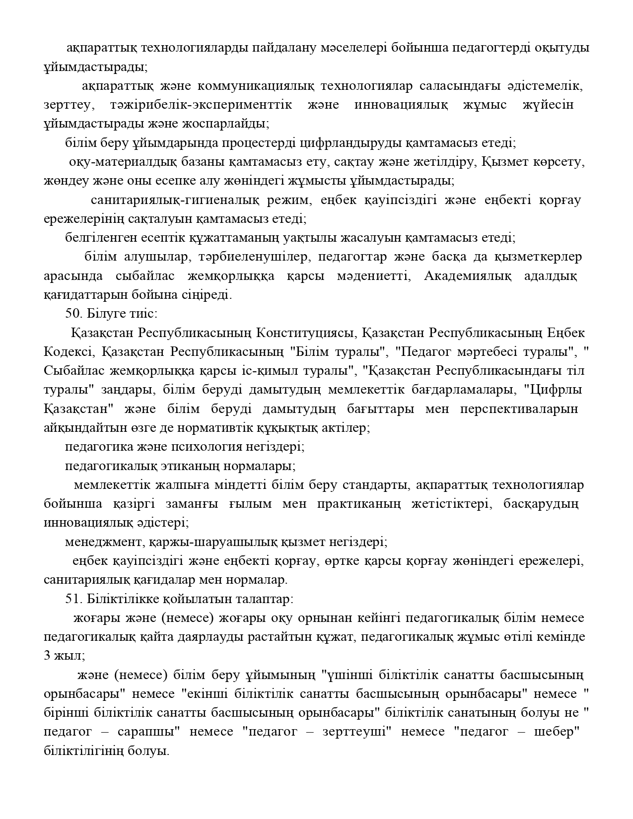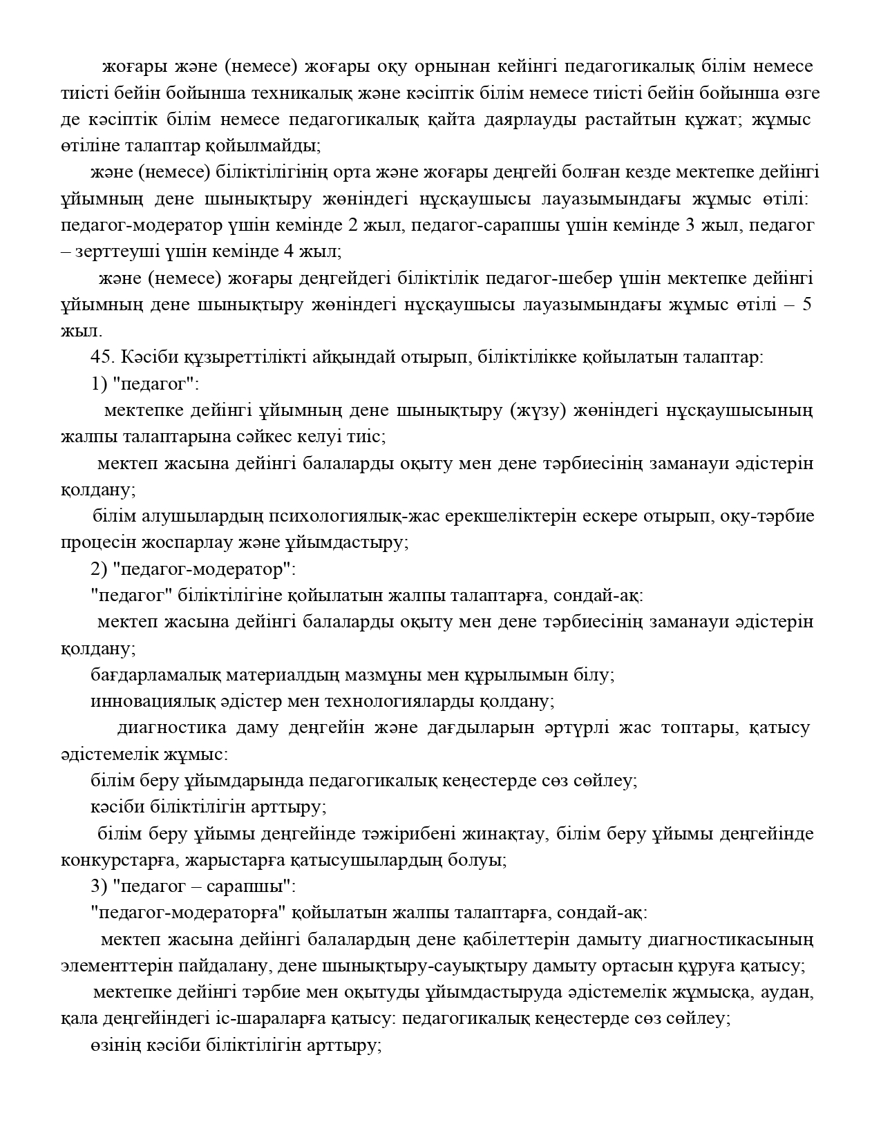 » Педагог лауазымдарының үлгілік біліктілік сипаттамаларын бекіту туралы