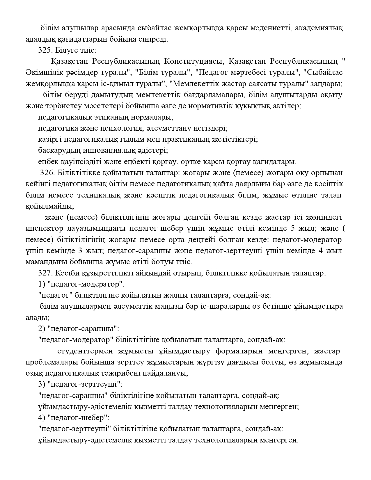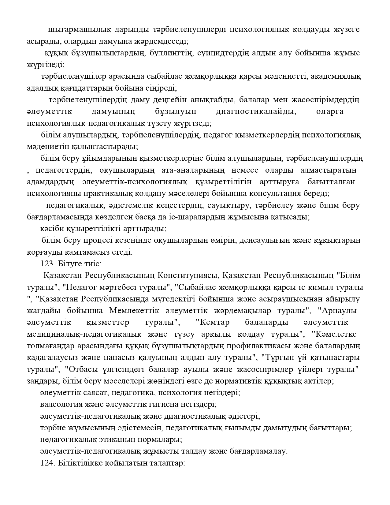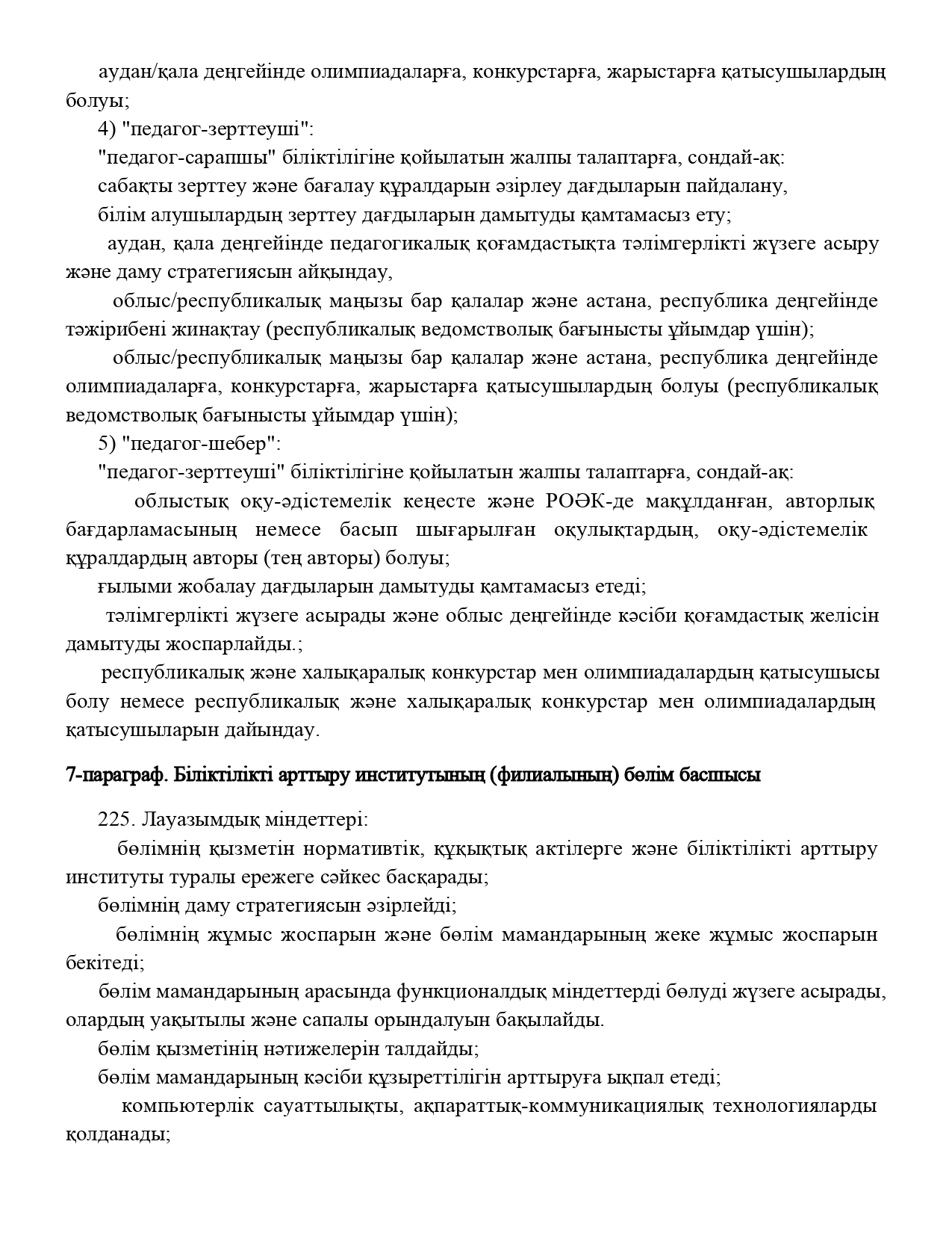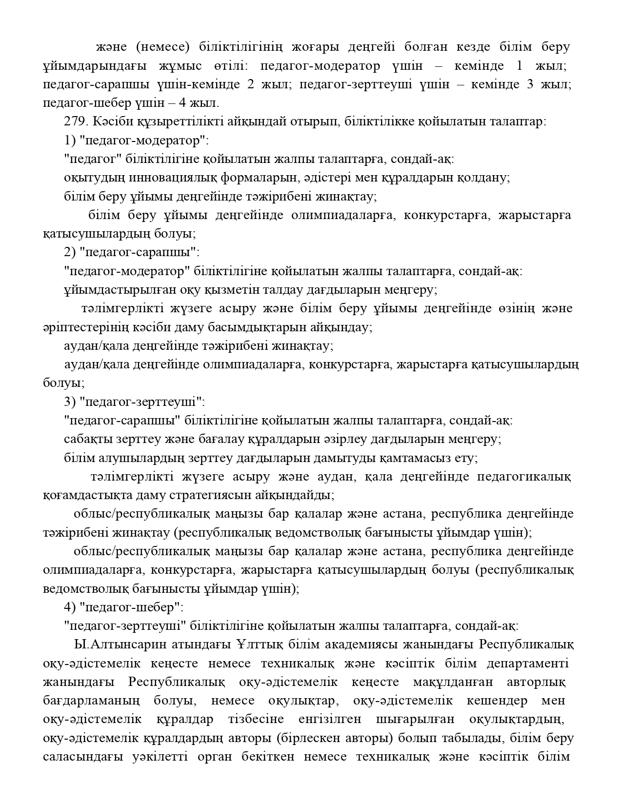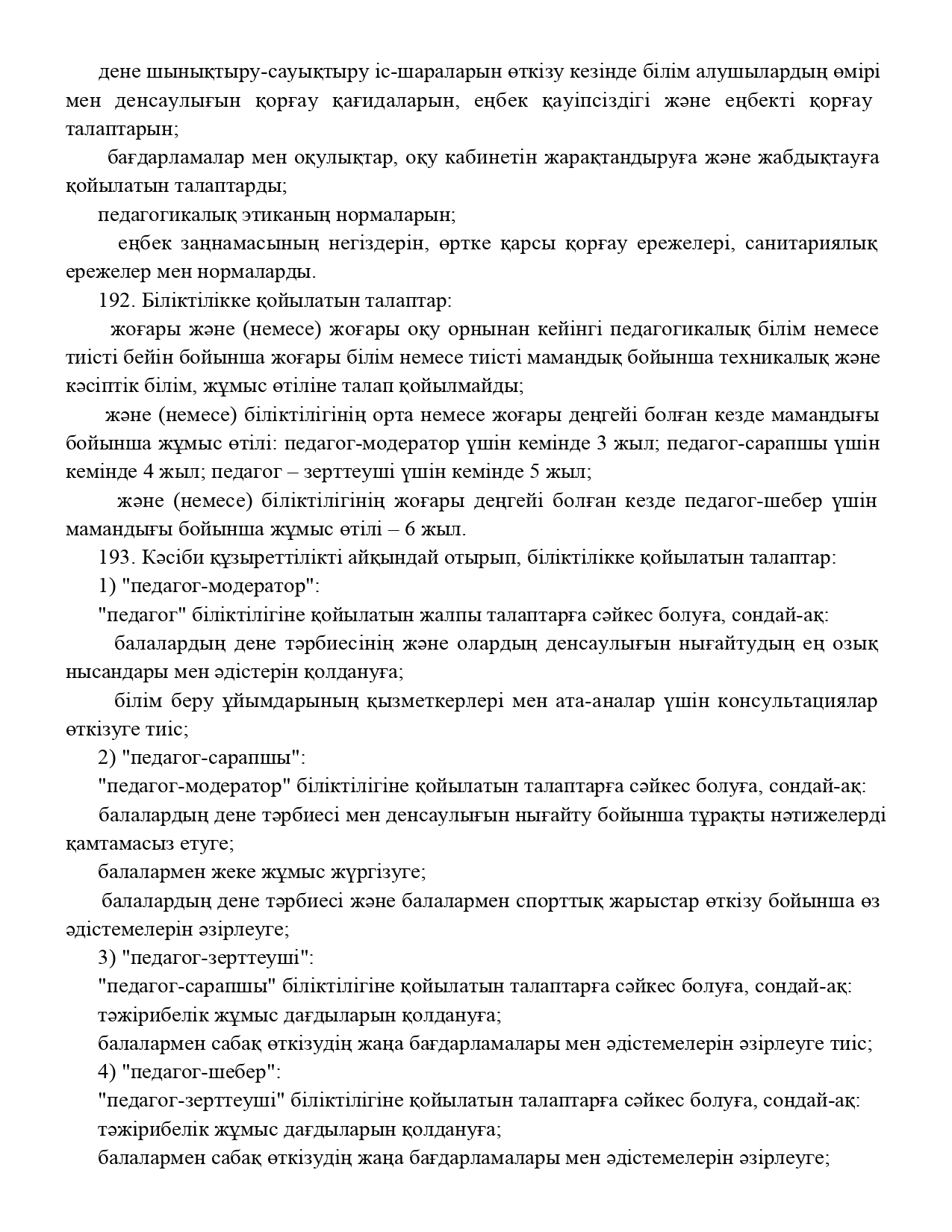 » Педагог лауазымдарының үлгілік біліктілік сипаттамаларын бекіту туралы
