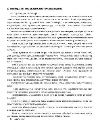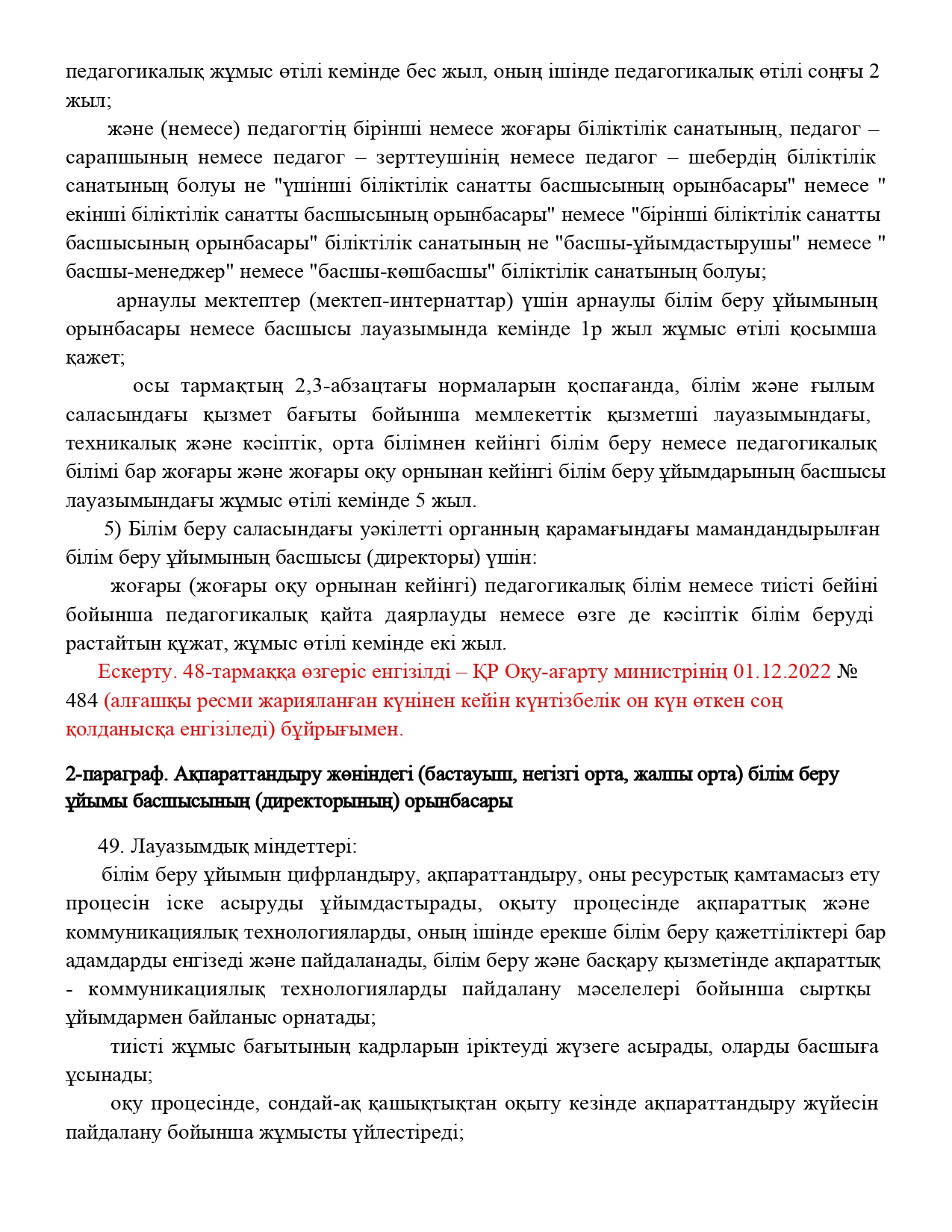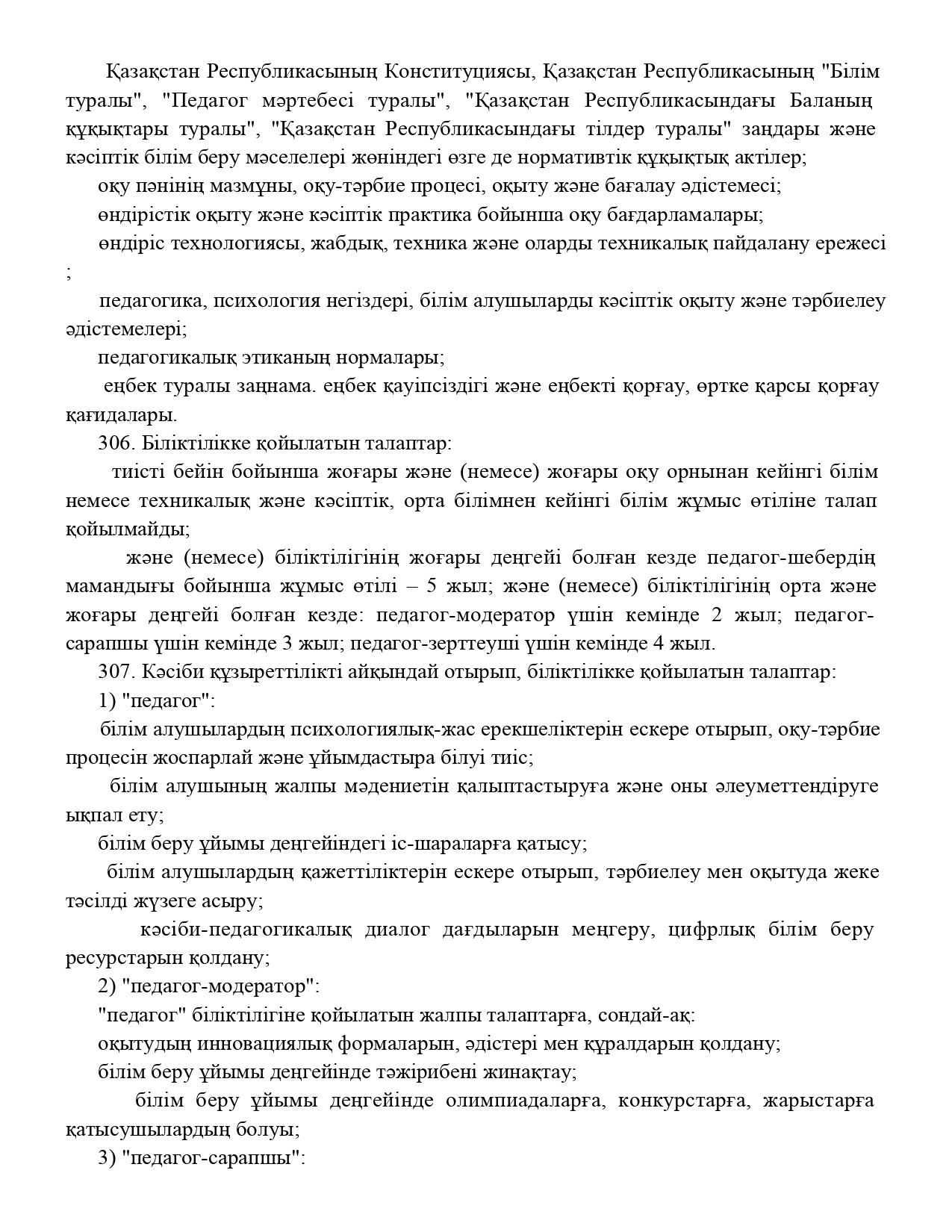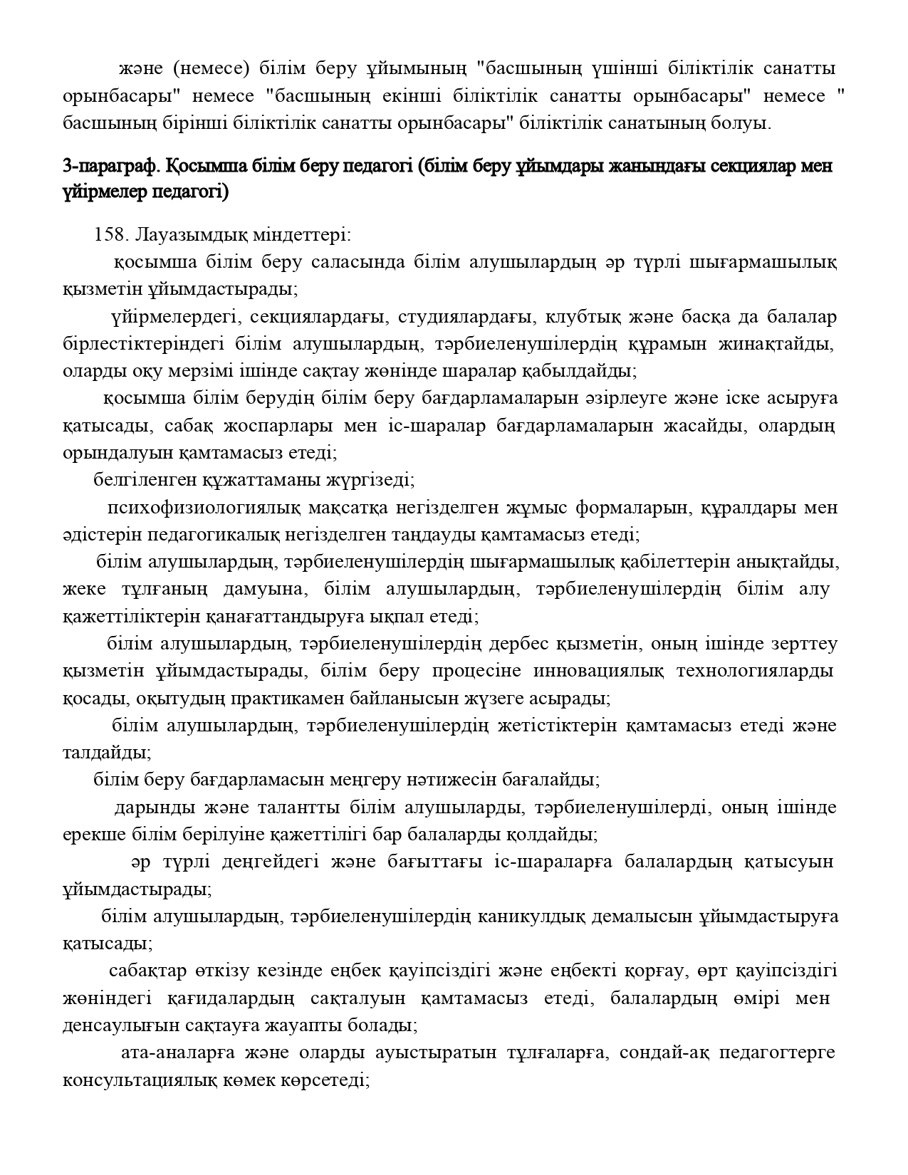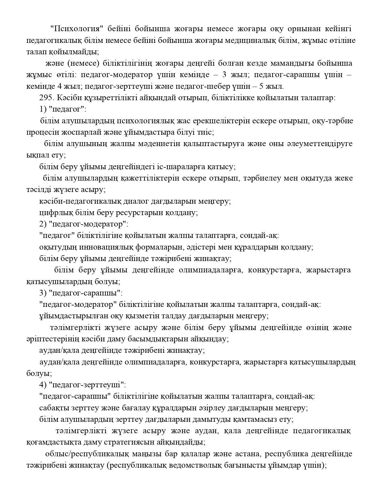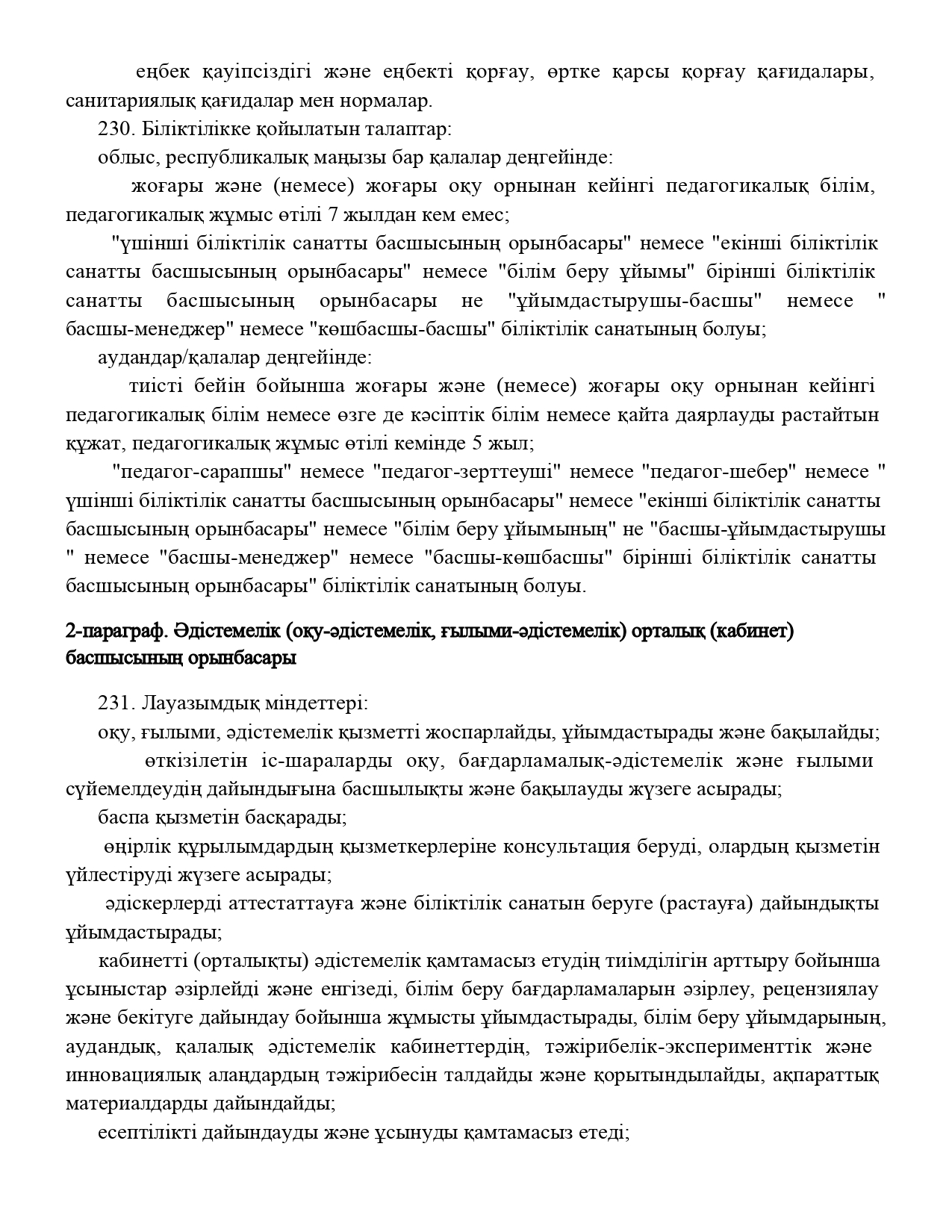 » Педагог лауазымдарының үлгілік біліктілік сипаттамаларын бекіту туралы