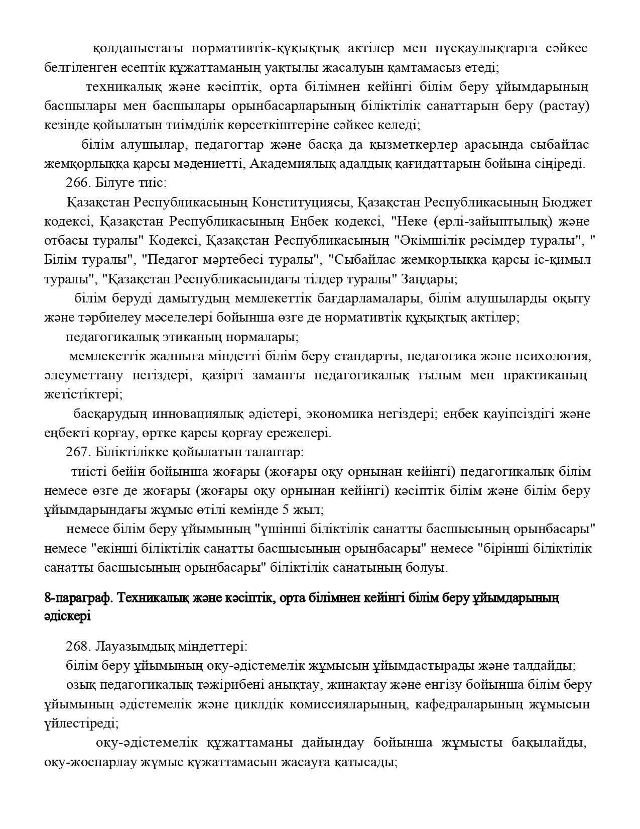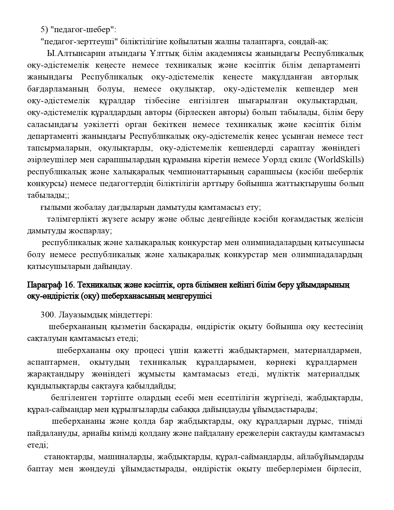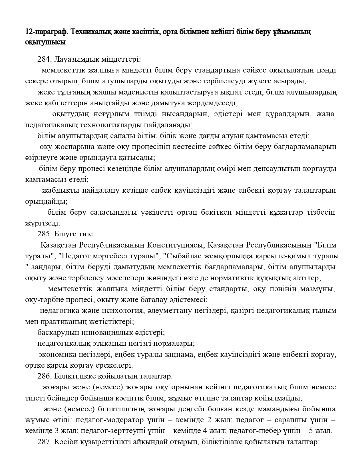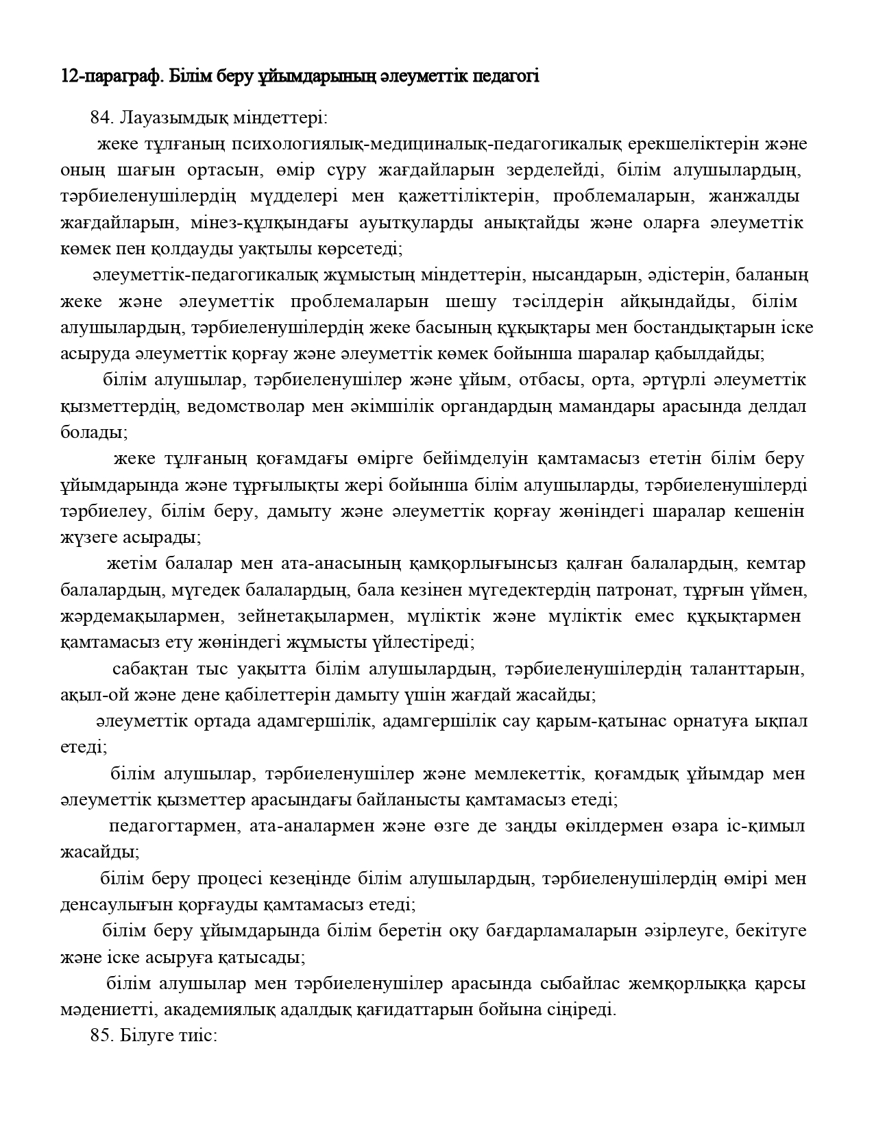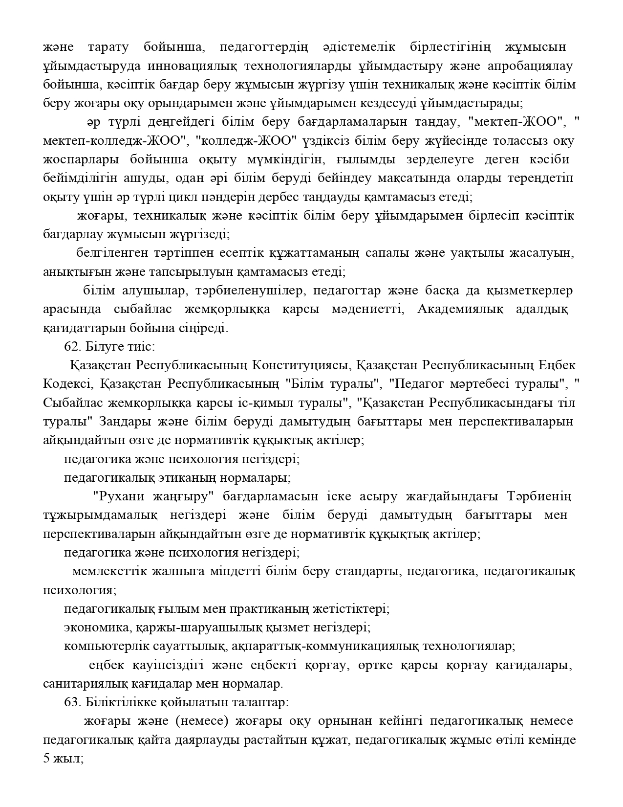 » Педагог лауазымдарының үлгілік біліктілік сипаттамаларын бекіту туралы