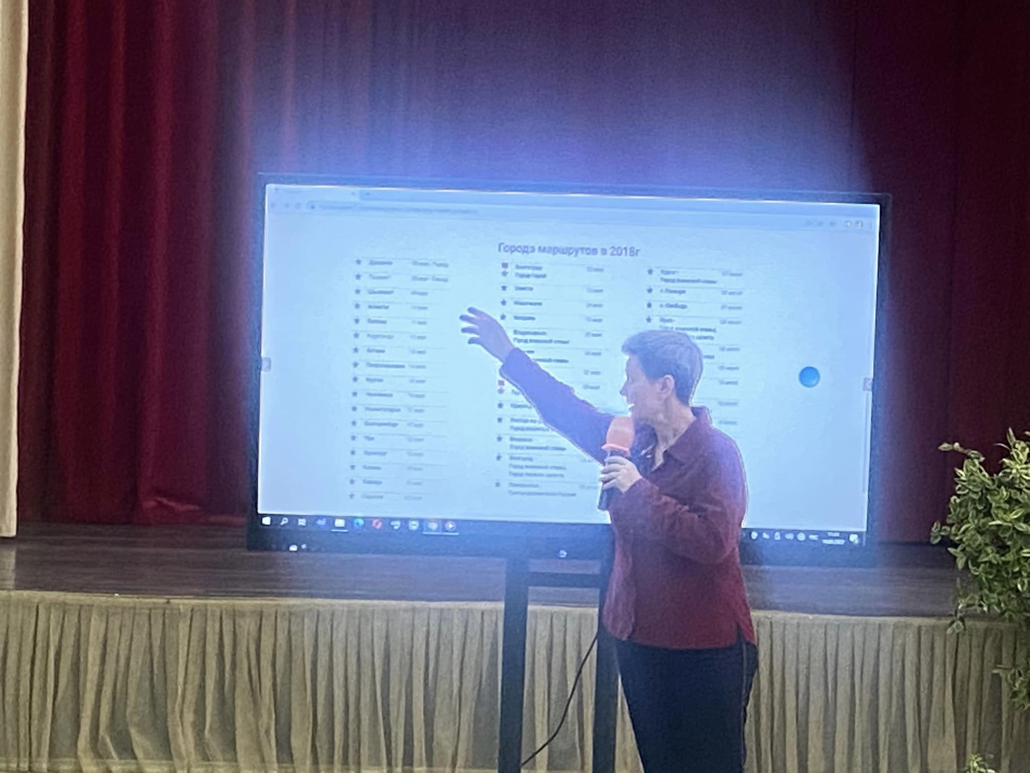 Прокудина Елена Сергеевна. «Мы понимаем, что с течением времени эта война становится всё более далёким событием, её участники и свидетели уходят из жизни, живая память ослабевает. В 2017 г. байкеры г. Шымкента вышли с предложением о мото- автопробеге по местам боевой славы Панфиловской дивизии, которая в 1941 году была сформирована в Алматы. В процессе обсуждения решили, что надо идти до города Бреста (Беларусь). Так родился проект «Победа без границ», и пришло решение пригласить байкеров из всех стран СНГ». В конце мероприятия Елена Сергеевна предложила детям написать эссе об участнике или труженике тыла Великой Отечественной войны «От истории моей семьи - к истории страны»