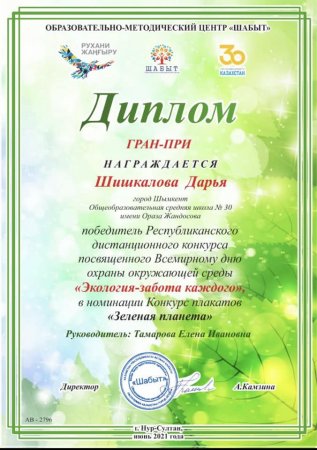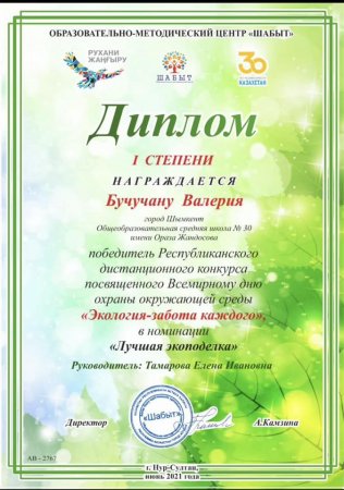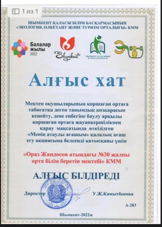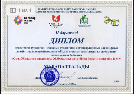 Мектеп оқушыларының қоршаған ортаға, табиғатқа деген танымдық көзқарасын кеңейту, дене еңбегіне баулу арқылы қоршаған ортаға жауапкершілікпен қарау мақсатында өткізілген “МЕНІҢ АТАУЛЫ АҒАШЫМ”, “Алтын қазына” көркем және сәндік-қолданбалы өнер бойынша балалар шығармашылығының қалалық көрме- байқауы, “Мектептің гүлденгені- Қаланың гүлденгені” мектеп ауласының ландшафтық дизайны байқауы, “Табиғатты аяла” жас өлкетанушылар, экологтар мен табиғат зерттеушілерінің қалалық форумы, I Республикалық “Жануарлар әлемінде” атты суреттер, фотосуреттер, компьютерлік графика және қолөнер байқауыларына қатысып оқушыларымыз жүлделі орындарға ие болды.