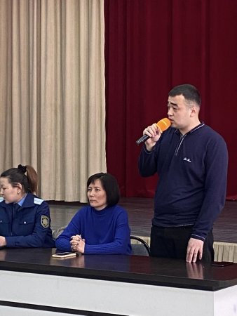 Өз сөзін Еңбекші прокуратурасының прокуроры Бейсенбаева Жібек Арунрашидқызы.Көптеген мәселелерді көтеріп,оқушылрдың сұрақтарына жауап берді.