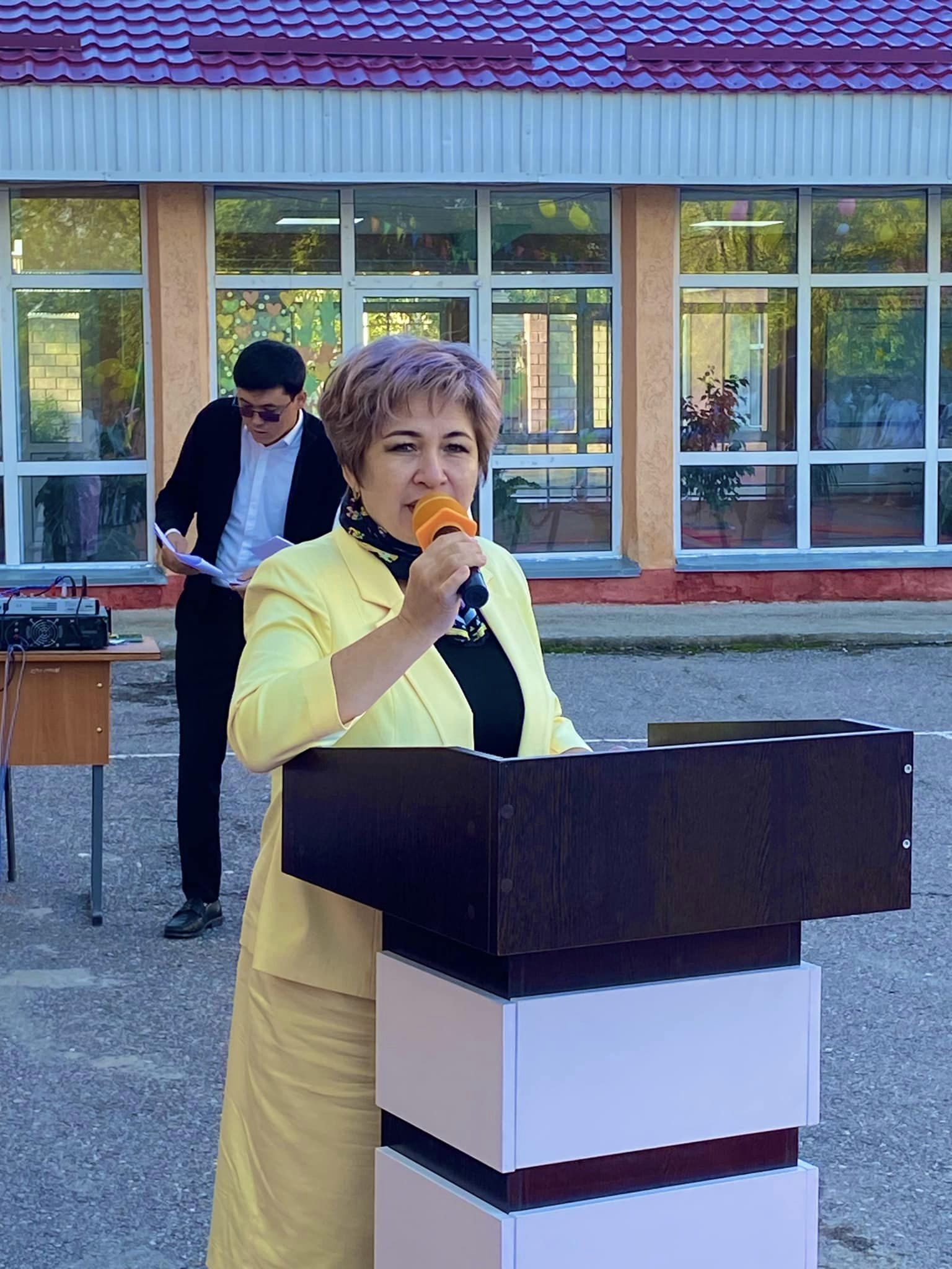 Салтанатты іс-шарада мектеп директоры Сихамбекова Жансұлу Абдразаққызы мектеп шәкірттері мен ұстаздарға мерейі үстем жыл болуына, мектеп табалдырығын алғаш аттағалы отырған бүлдіршіндер мен 11 сынып оқушыларына биылғы оқу жылында білімнің асқақ шыңына көтеріліп, мол табыстар мен ізденістерге жете берулеріне тілектестігін білдіріп, жаңа оқу жылына сәттілік тіледі. Балғын балалықпен қош айтысып, мектеп табалдырығын имене аттаған жас бүлдіршіндер салтанатты жиын барысында ән айтып, өлең шумақтарын тарту етті. Мерекелік жиын мектеп оқушыларының концерттік бағдарламасымен жалғасын тауып, жаңа 2023-2024 оқу жылының алғашқы қоңырауы да соғылды. Салтанатты жиынның соңы 1-11 сынып оқушыларына білімге ұмтылу, отаншылдық, еңбексүйгіштік құндылықтарының адам өміріндегі рөлін талқылау мақсатында «Мектебім — мейірімділік мекені» тақырыбында республикалық сынып сағаттарымен жалғасын тапты.