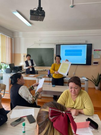 1 қараша күні қазақ тілі және әдебиет пәні мұғалімдері А. А. Усипбекова мен М. Д. Дауылбаева «Сын тұрғысынан ойлау тәсілдерін қолдану арқылы оқу сауаттылығын қалыптастыру» атты тақырыпта КОУЧИНГ өткізді.