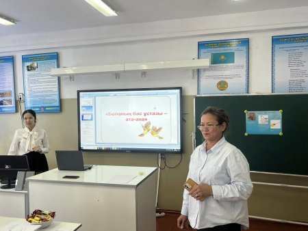 Мектеп директорының тәрбие ісі жөніндегі орынбасары Райхан Қуанышбековна ата-аналарға «Ұлттық құндылықтар» туралы жалпы тоқталып, Үштік одақта бірлесе жұмыс жасауға шақырды.