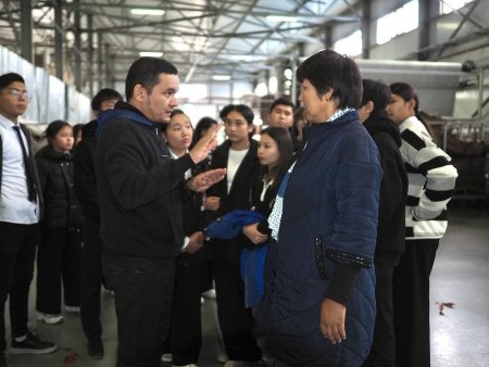 Еңбекті қорғау және техникалық қауіпсіздік бойынша менеджері –Габит Бимендиевич және өндіріс бастығы – Нурдаулет Абдибековичпен танысып, цехқа кірмес бұрын оқушылармен техника қауіпсіздігі жөнінде нұсқаулық жүргізіп, өндіріс бойынша экскурсияны жалғастырды.