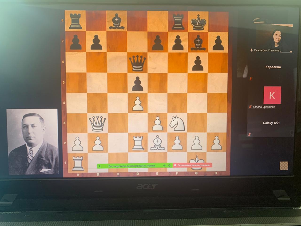 Ученики 8а класса ОСШ #30 провели он-лайн занятие "Основы щахматной стратегии"