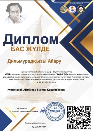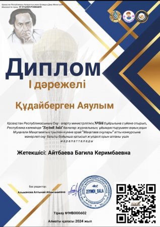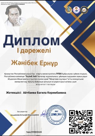 Жетекшісі: Айтбаева Багила Керимбаевна.