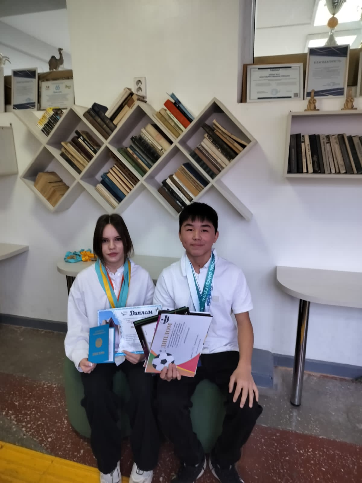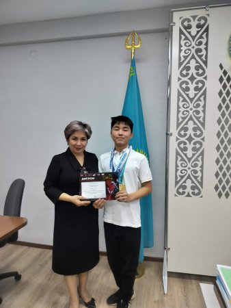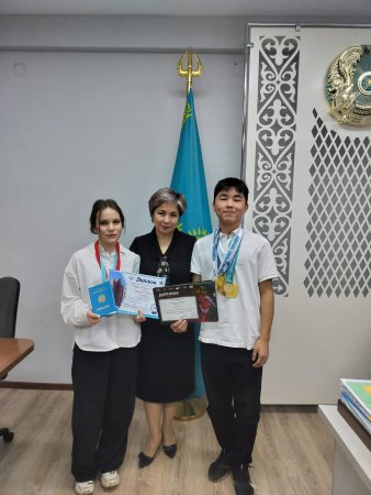 Біртұтас тәрбие бағдарламасы «Өр талапты, озық ойлы ұлан» жобасы аясында мектеп директоры Ж.А.Сихамбекова халықаралық, республикалық байқаулардан жүлде алған Рақымғожин Жаснұр мен Иванова Мишельді қабылдап, өз құттықтауын білдірді.