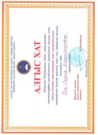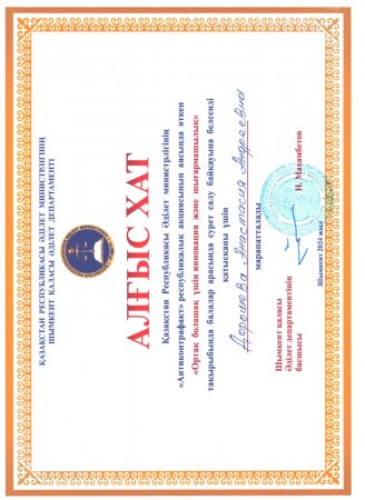 Қазақстан Республикасы Әділет министрлігінің "Антиконтрафакт" республикалық акциясы аясында 2024 жылдың 1-26 сәуір аралығында 5-10-сынып оқушыларының арасында "Ортақ болашақ үшін инновация және шығармашылық" тақырыбында сурет салу байқауы өткізілді. Байқауға Ораз Жандосов атындағы №30 жалпы орта білім беретін мектептің оқушылары ДОРОШЕВА АНАСТАСИЯ, РЕЦ СОФИЯ және КАТКОВА УЛЬЯНА өз шығармаларын ұсынып, үздік жұмыстардың қатарынан орын алып, Шымкент қаласы Әділет департаментінің арнайы алғыс хатымен марапатталып қайтты. Шәкірттерін қашанда шығармашылық баулуда еңбек етіп жүрген жетекшісі ТАМАРОВА ЕЛЕНА ИВАНОВНА да Алғыс хатпен марапатталды.