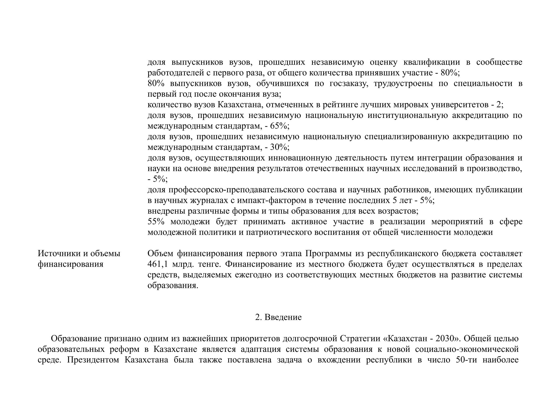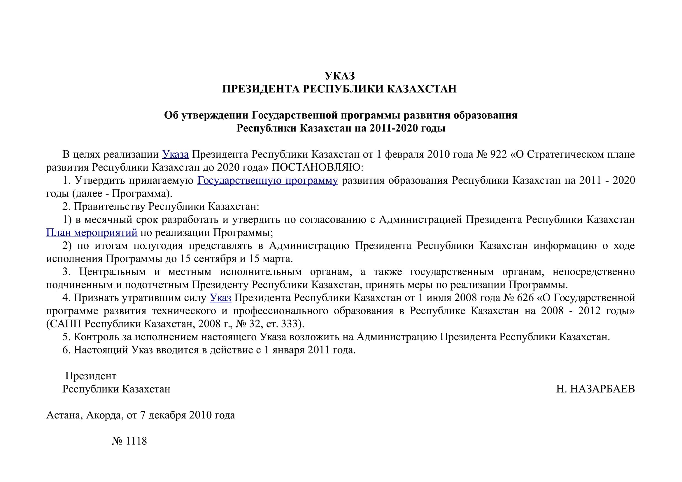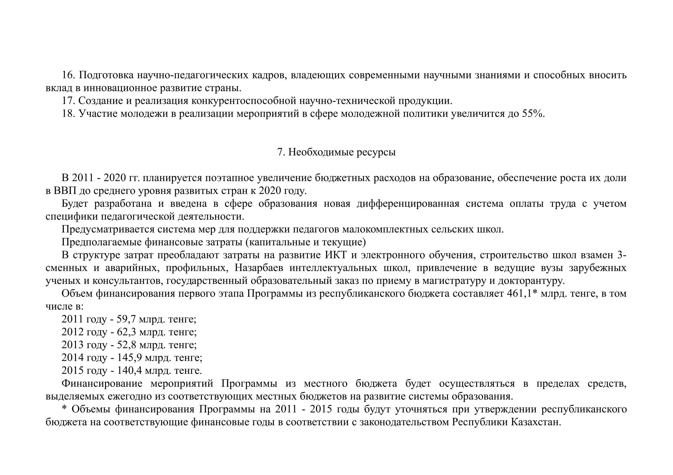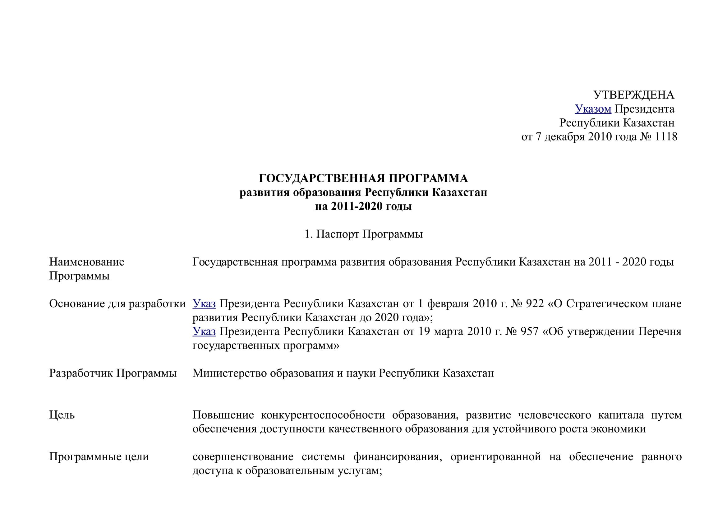 19 октябрь 2019 0 1 2 3 4 5 УКАЗ ПРЕЗИДЕНТА РЕСПУБЛИКИ КАЗАХСТАН Об утверждении Государственной программы развития образования Республики Казахстан на 2011-2020 годы