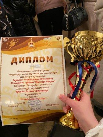 №30 «Ораз Жандосов атындағы жалпы орта мектеп» КММ » Мектеп » Жетістіктеріміз » ҚР Тәуелсіздігінің 30 ж арналған “Тәуелсіздік тұғырым” атты Республикалық байқауға қатысып , “Хореография”номинациясы бойынша өнер көрсетіп 1-орынға ие болған мектебіміздің өнерлі қыздарынан құралған “Ақмаржан” би ансамблі.