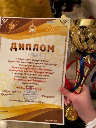 ҚР Тәуелсіздігінің 30 ж арналған “Тәуелсіздік тұғырым” атты Республикалық байқауға қатысып , “Хореография”номинациясы бойынша өнер көрсетіп 1-орынға ие болған мектебіміздің өнерлі қыздарынан құралған “Ақмаржан” би ансамблі.