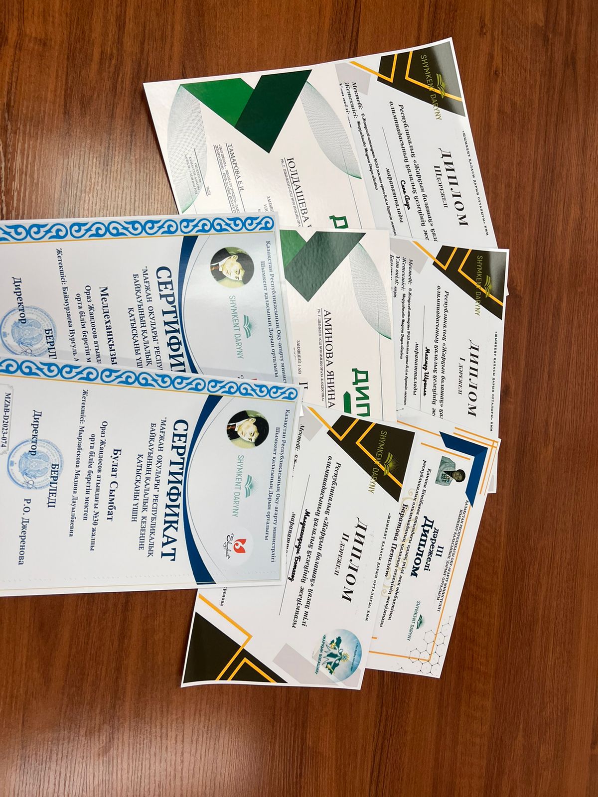 9-10 сыныптың оқушылары Махмұд Шұғыла, Сапи Аида, Баратова Перизат «Дарын» орталығы ұйымдастырған «Жарқын болашақ» және Қ.Бітібаева атындағы қазақ тілі мен әдебиетінен республикалық олимпиадалардың қалалық кезеңінде жүлделі орындарға ие болды. Оқушыларымыз қатарының алды болып, шығар шыңдары биік болсын! Балалардың дарындылығын қолдап жүрген ұстаздарымыздың игілікті еңбегі жемісті болсын! Қаунышты күндеріміз көп болсын!