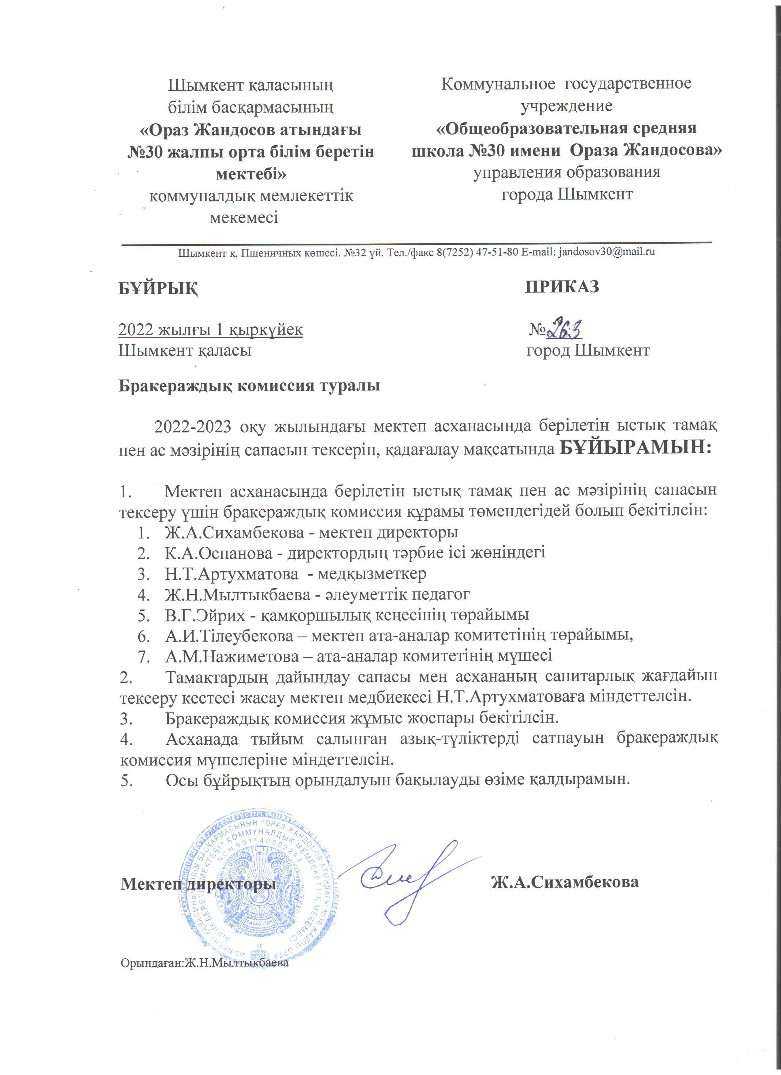 №30 «Ораз Жандосов атындағы жалпы орта мектеп» КММ