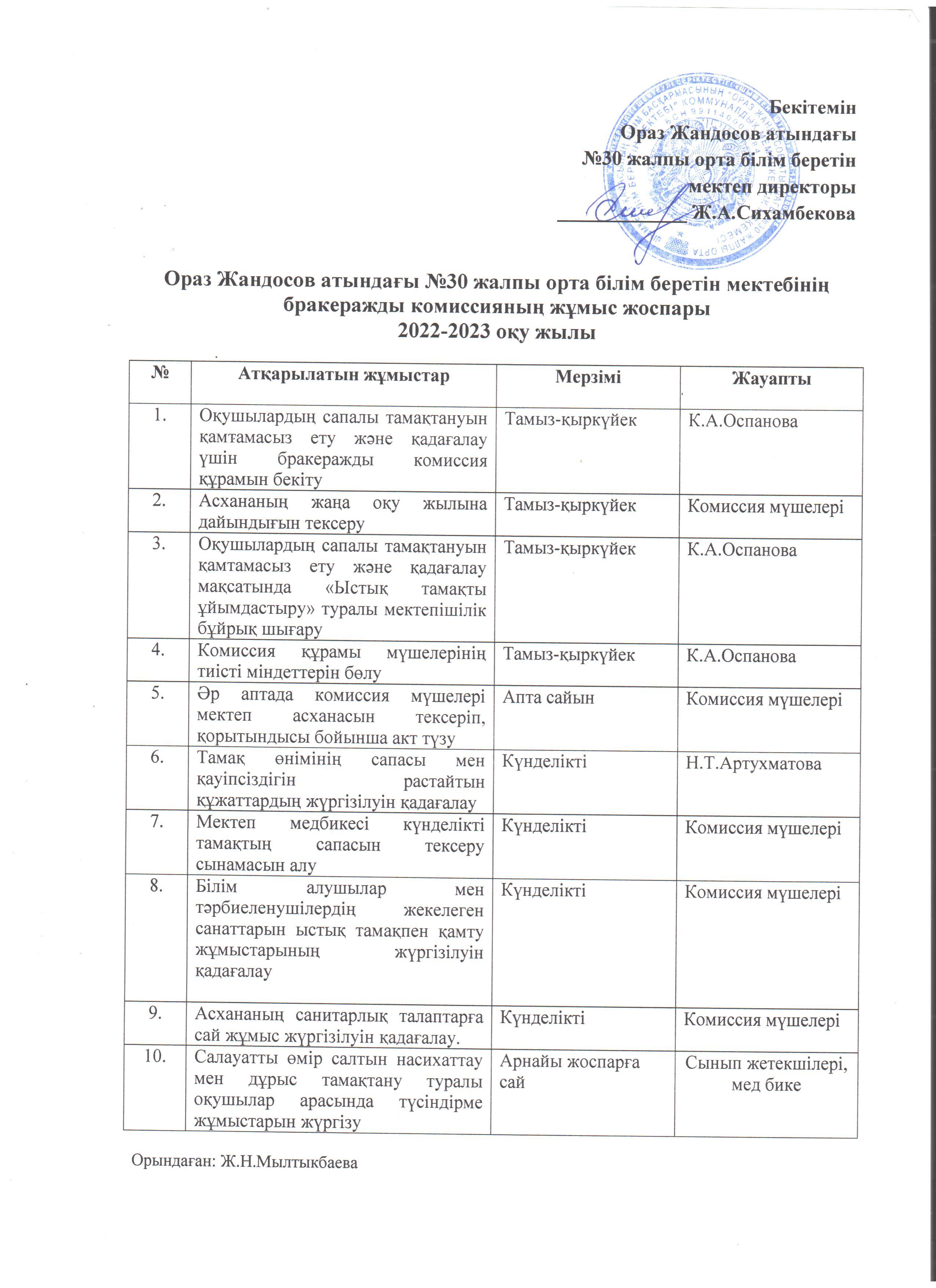 Ораз Жандосов атындағы №30 жалпы орта білім беретін мектептің 2021-2022 оқу жылында атқарылатын әдістемелік жұмыс бағыттары мен жоспарлары