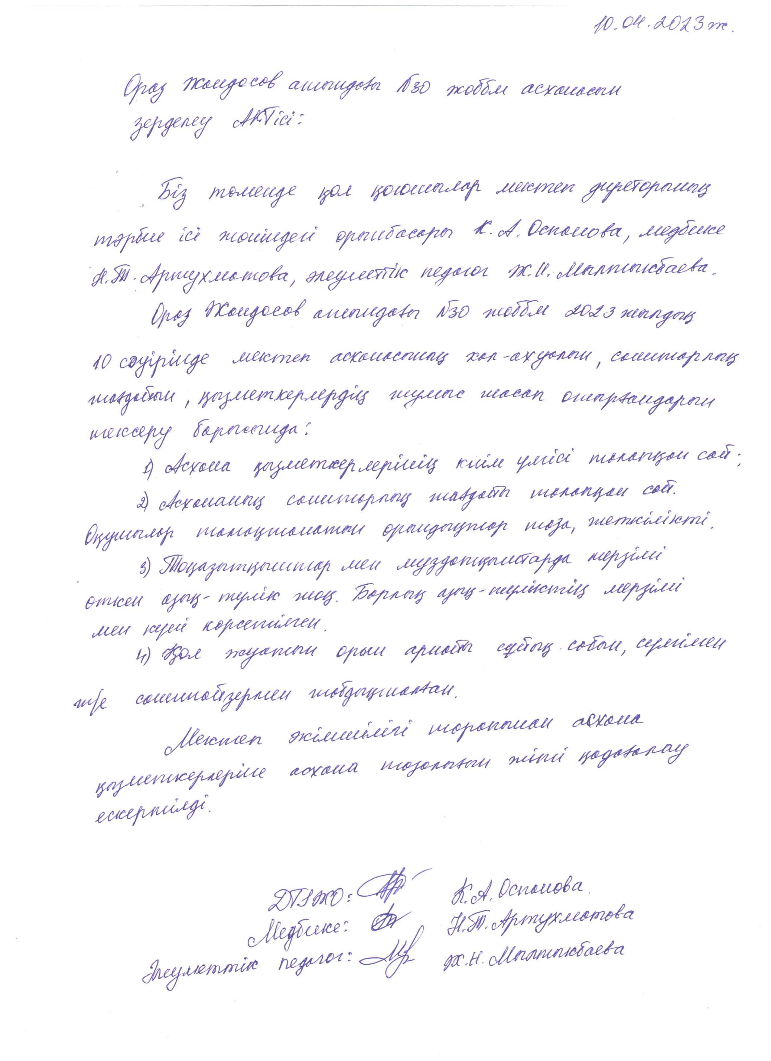 » Бракераждық комиссияның мектеп асханасын тексеру АКТлері - сәуір айы