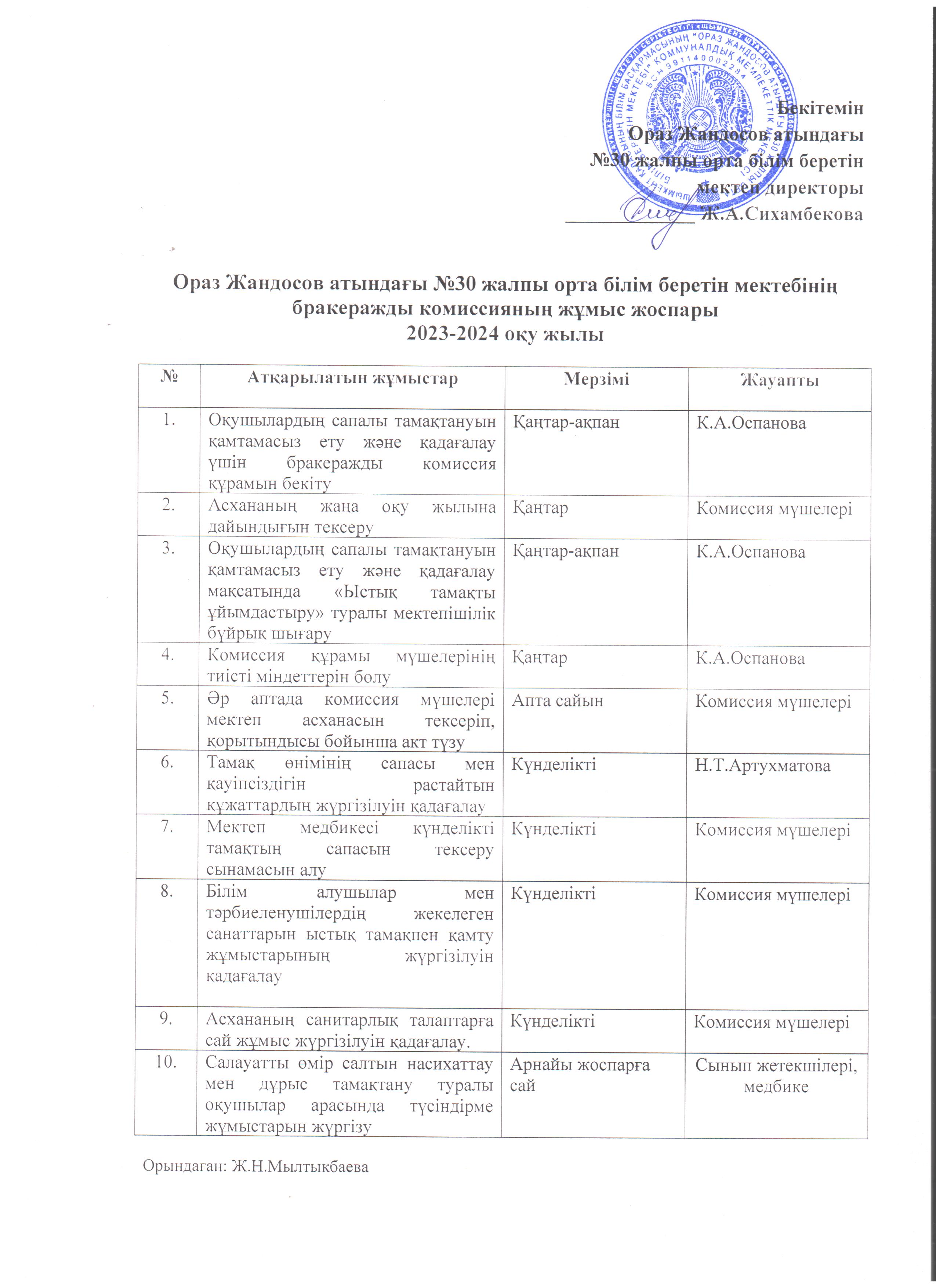 » Бракераждық комиссияның жұмыс жоспары