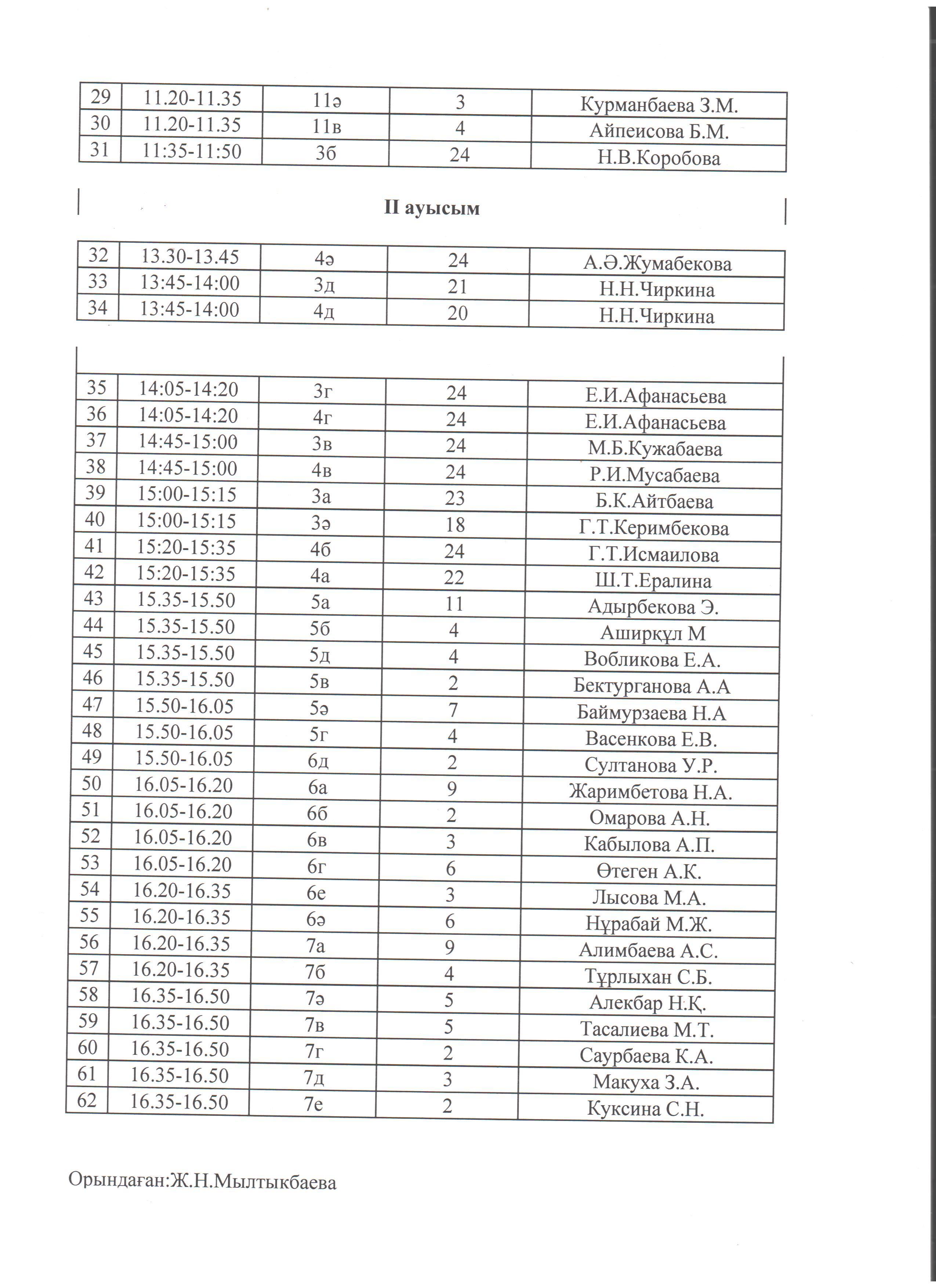 » Мектеп асханасына оқушылардың бару кестесі