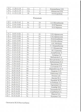 Әкімшілік тарапынан кезекшілік кестесі