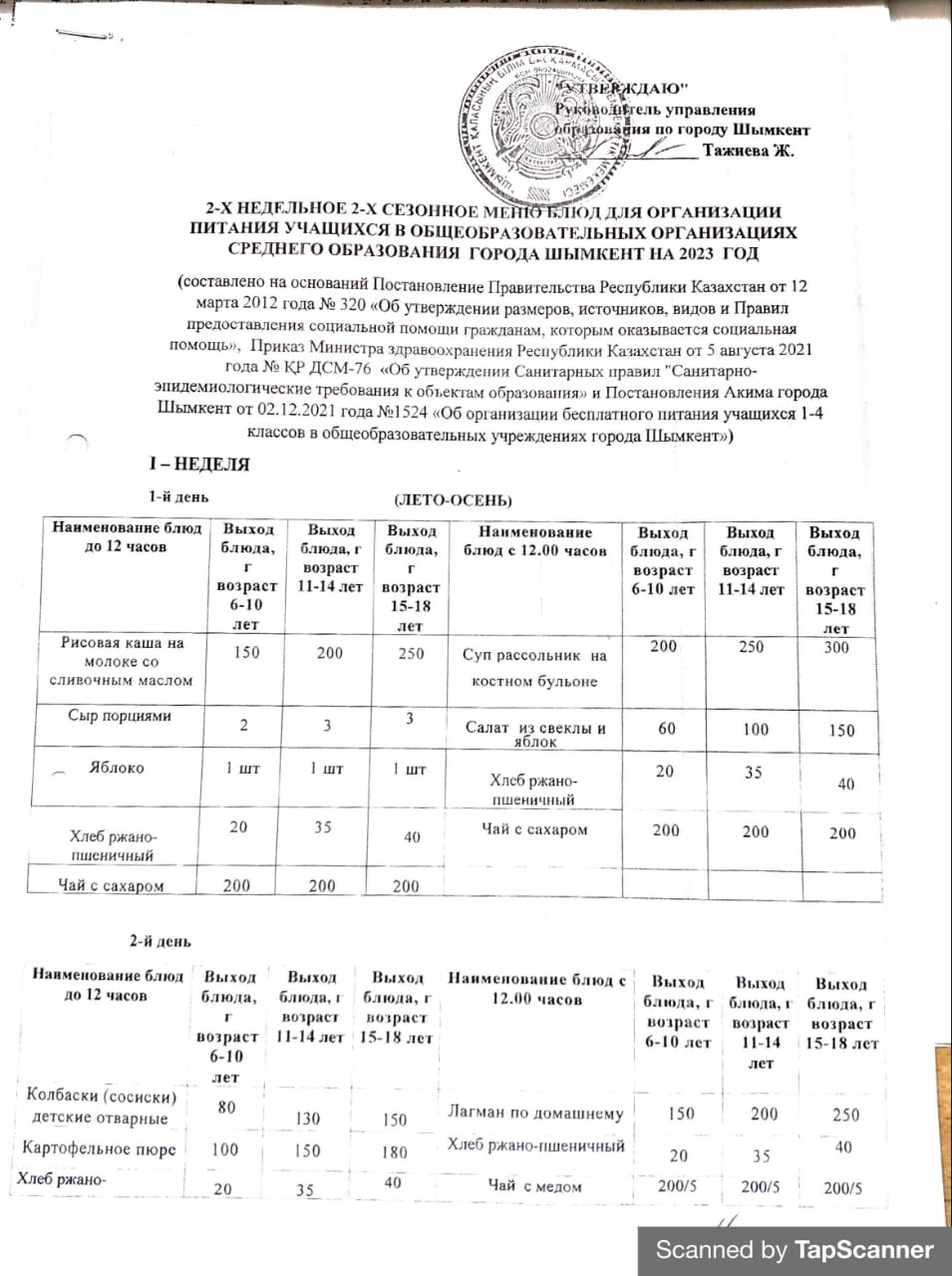 01 сентябрь 2023 0 1 2 3 4 5 Шымкент қаласы білім басқармасының 2023 жылға бекітілген жаңа 2 аусымдық, 2 апталық ас мәзірі