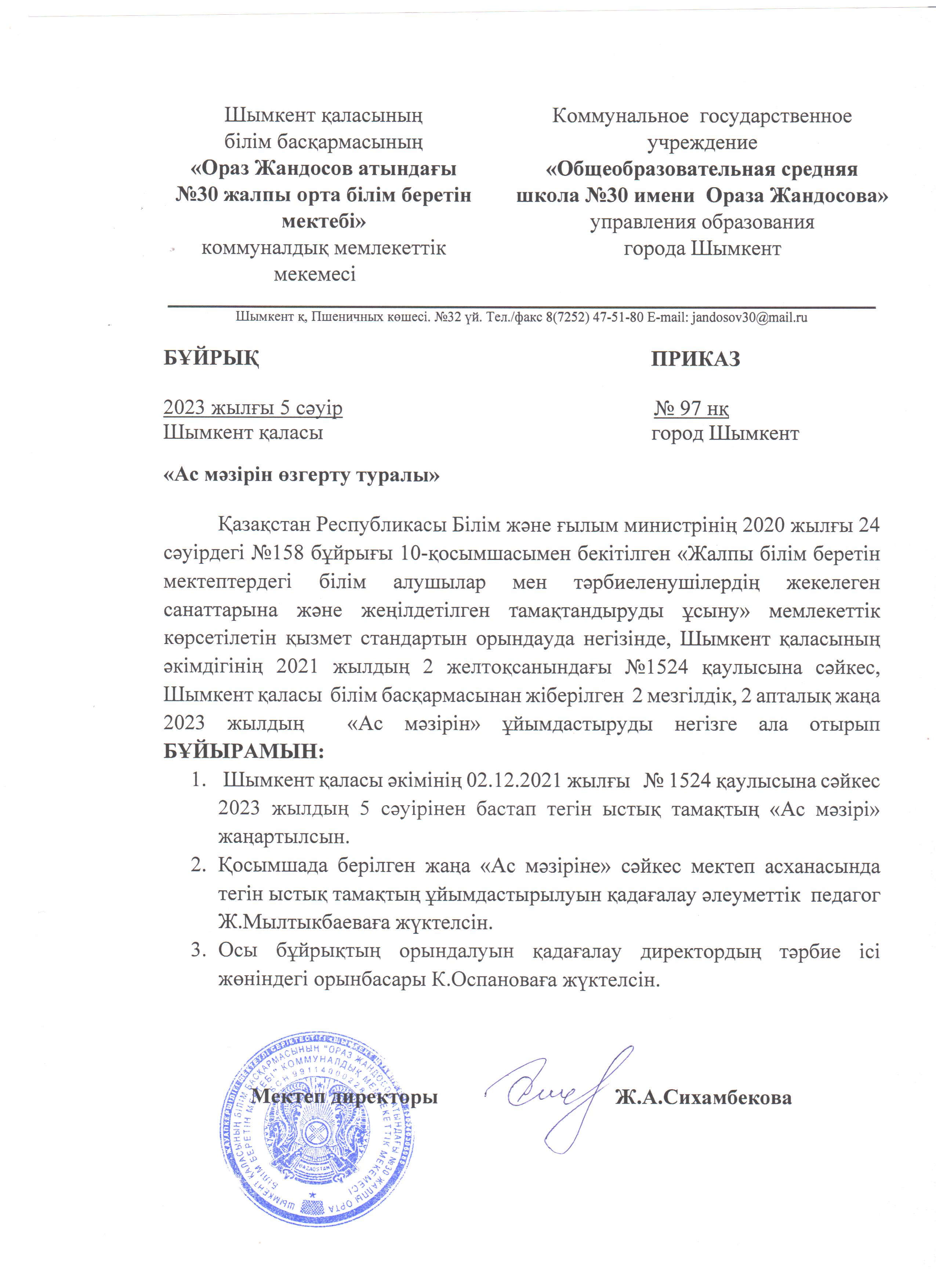 «№30 Ораз Жандосоватындағы жалпы орта мектебі»