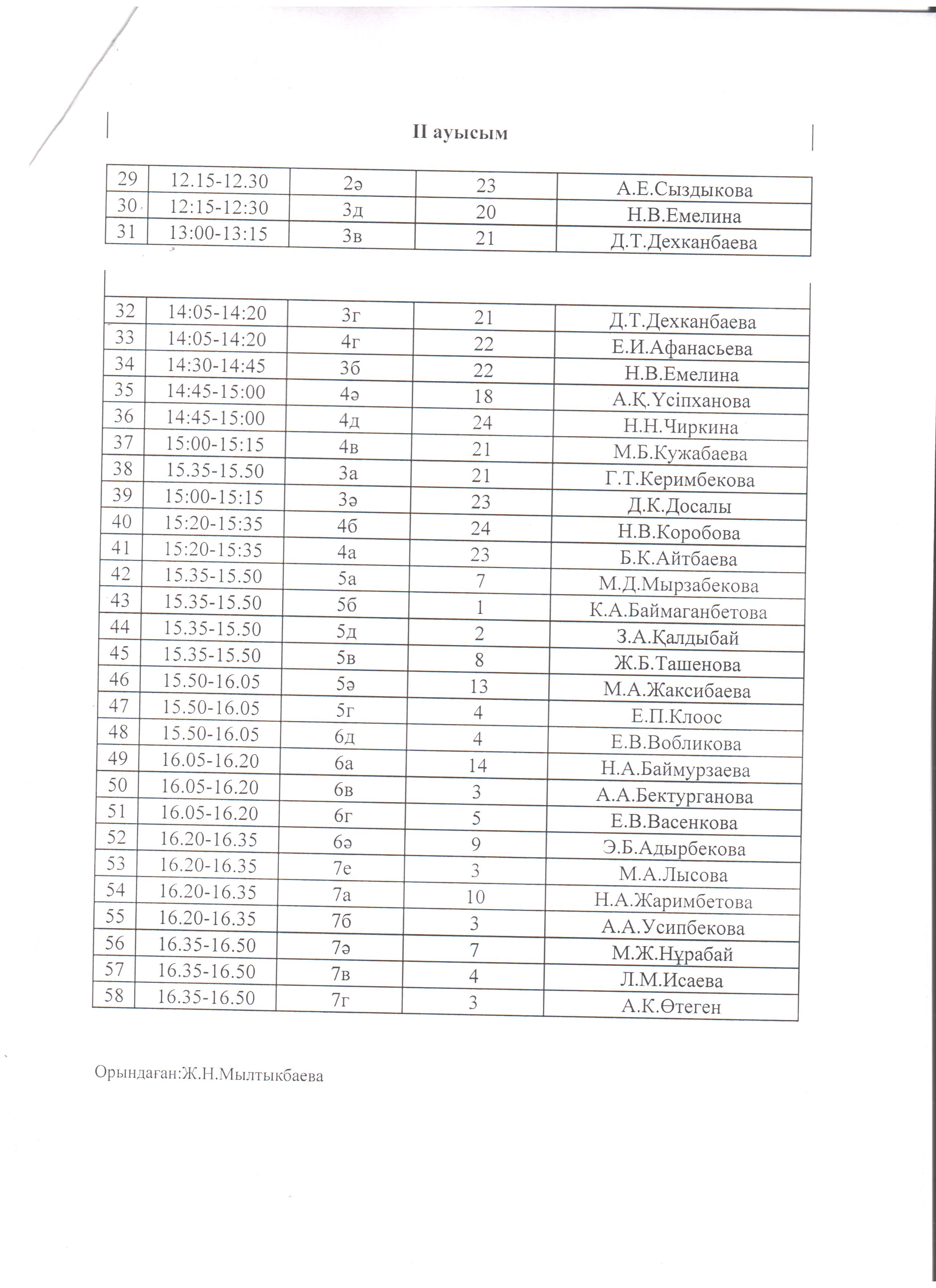 » Мектеп асханасына оқушылардың бару кестесі